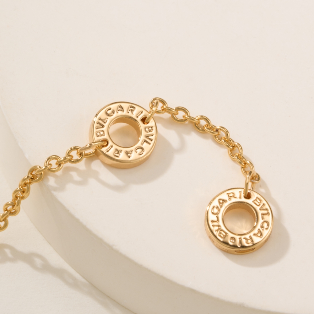 Grown from the Roman roots of the brand into an elegant fusion of culture and modernity, the Bvlgari Bvlgari necklace is an effervescent, contemporary statement of classiness. The trademark double logo was initially inspired by the curved inscriptions on ancient coins, whilst today it has evolved into playful and unexpected interpretations, building a distinctive element of design.