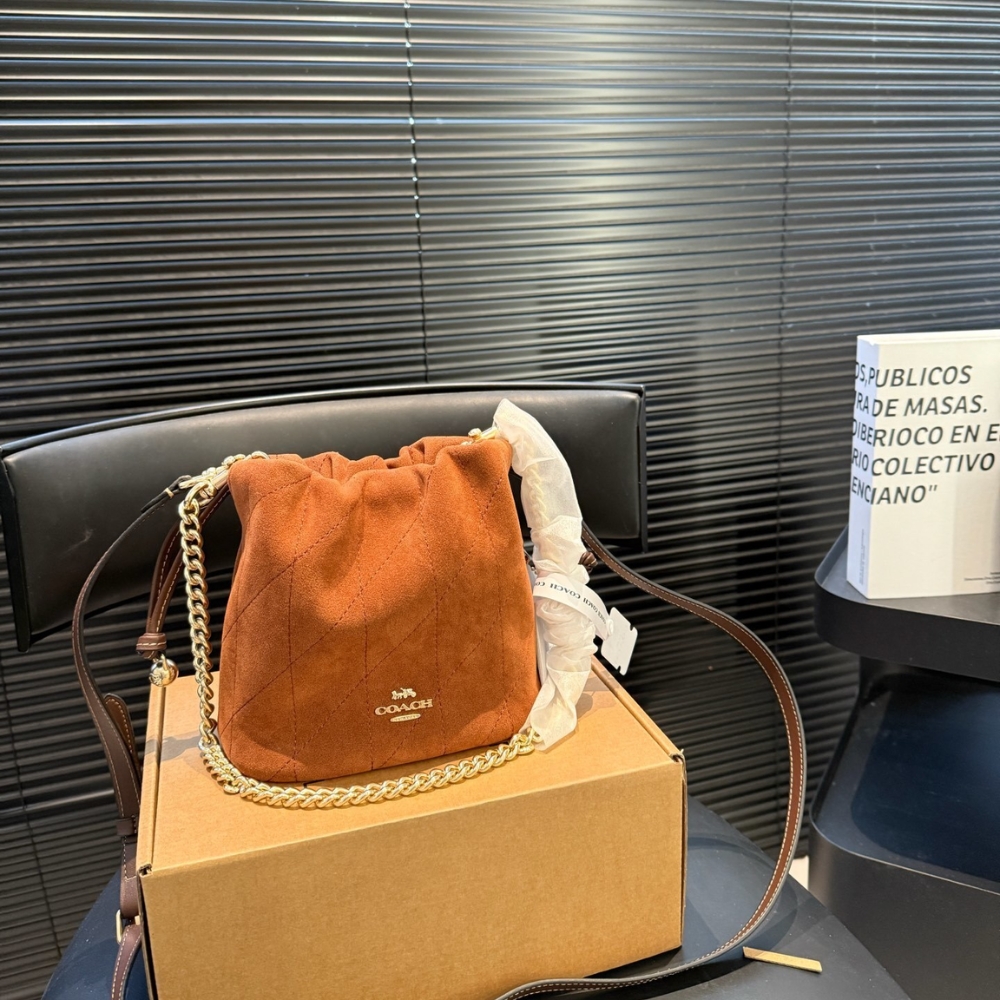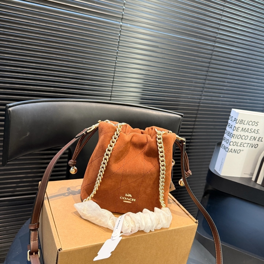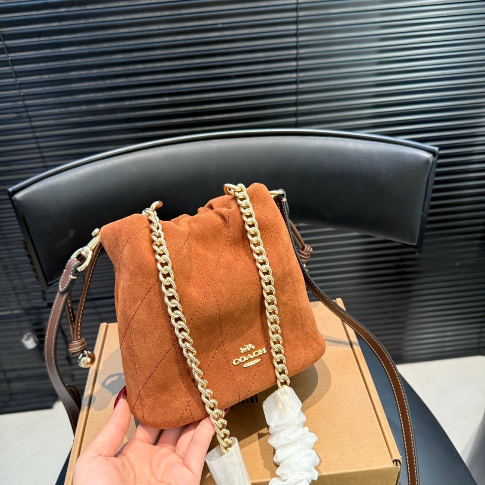 Coach Faye Mini Drawstring Bag With Quilting Brown / Shoulder Bag / 7.1 x 6.3 inches / Fit essential things / Chic Style / Daily Bags