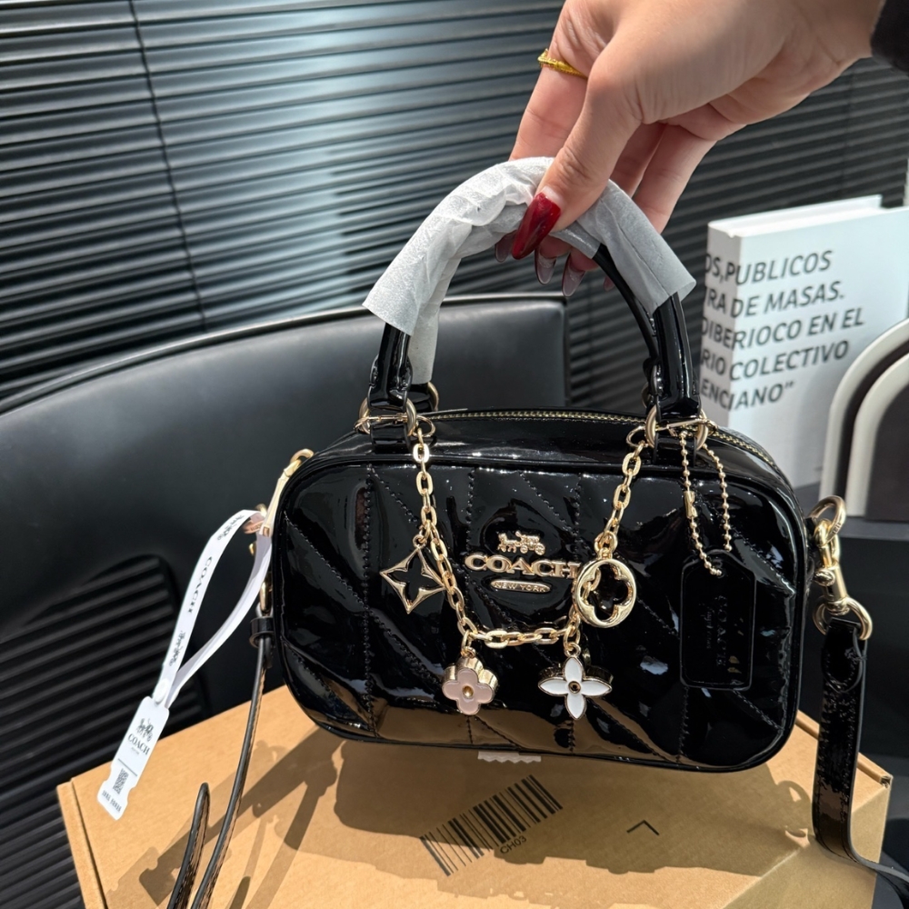 COACH SATCHEL CROSSBODY BAG WITH QUILTING BLACK 20CM CCE17 IMBLK