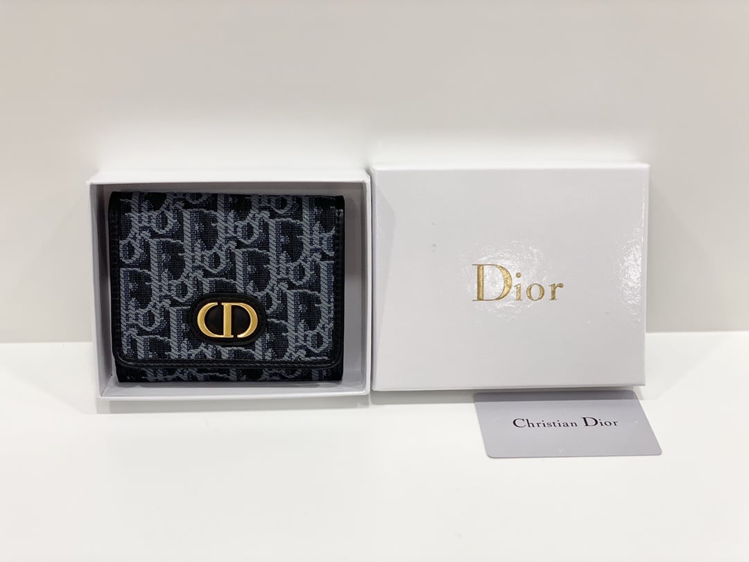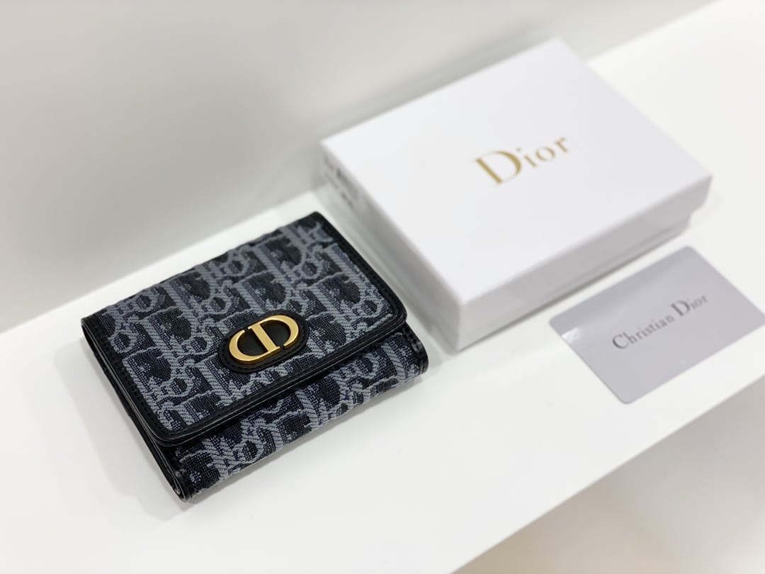 Dior 30 Montaigne Lotus/11cm Wallet Oblique Canvas Compact Black And Dark Blue