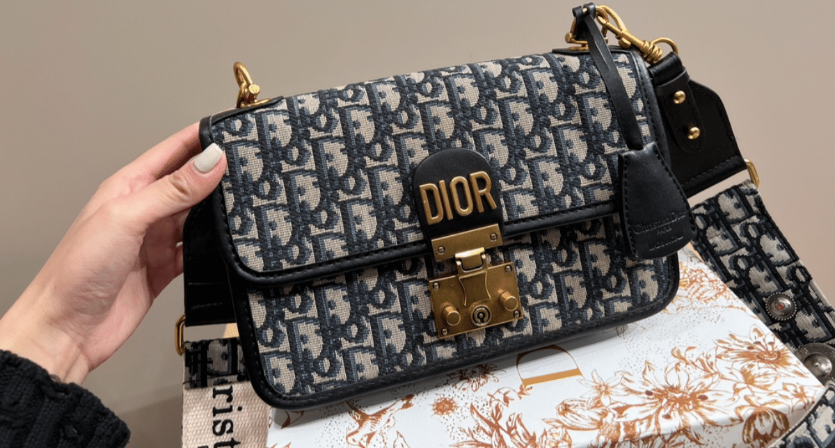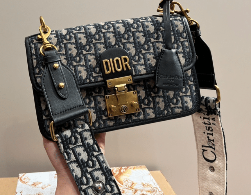Dior Addict Flap Bag Oblique/24cm Canvas Medium Black