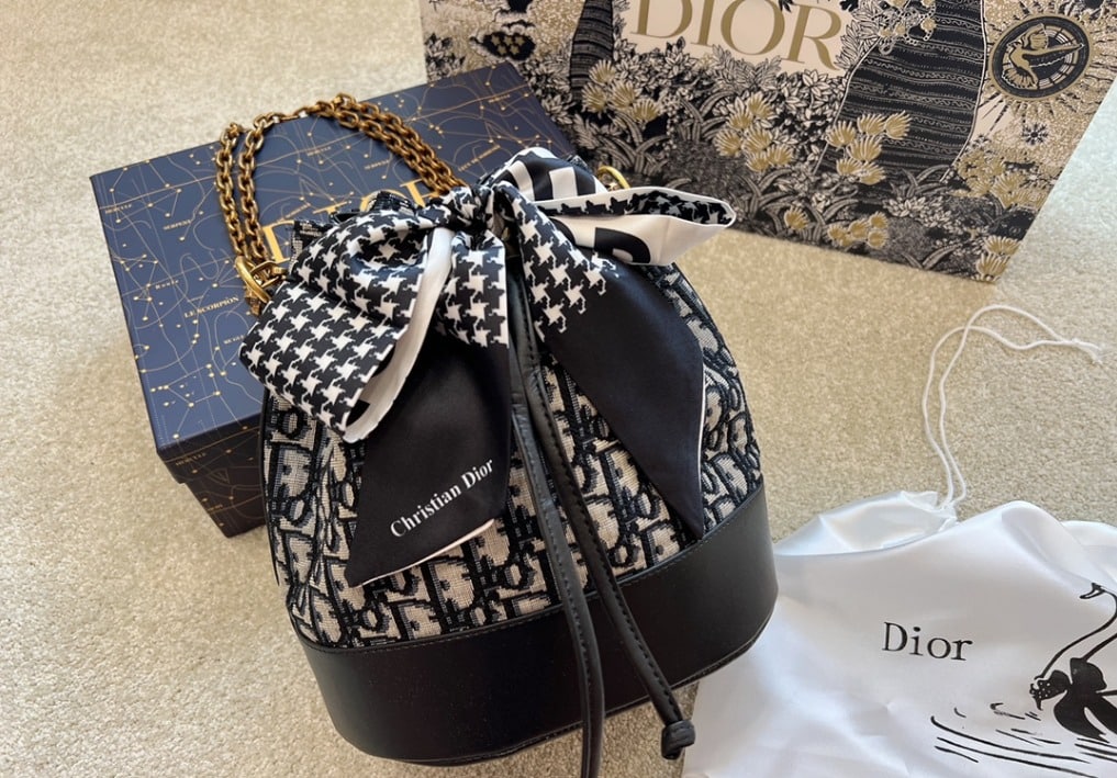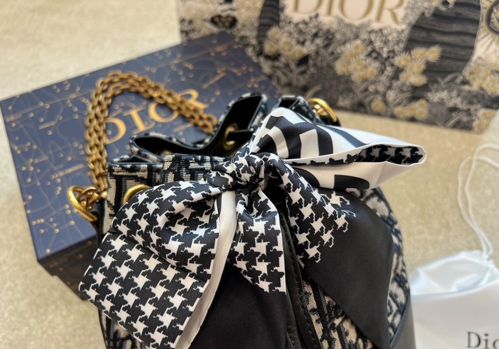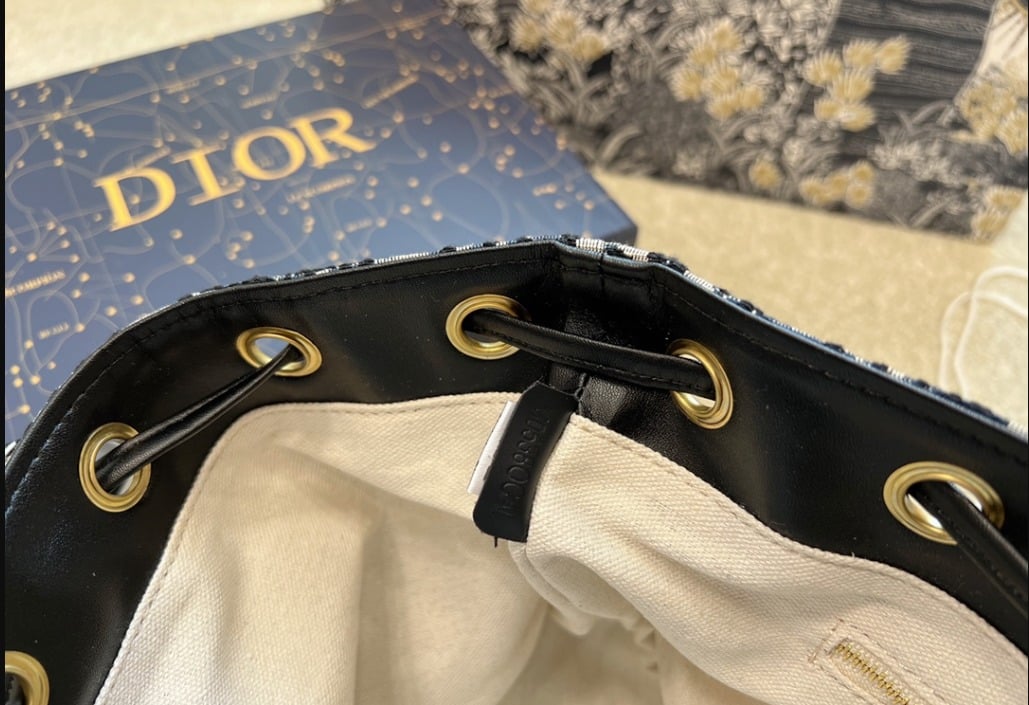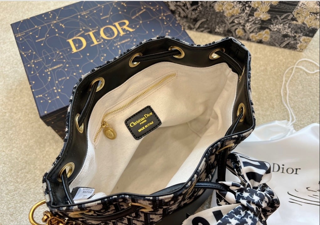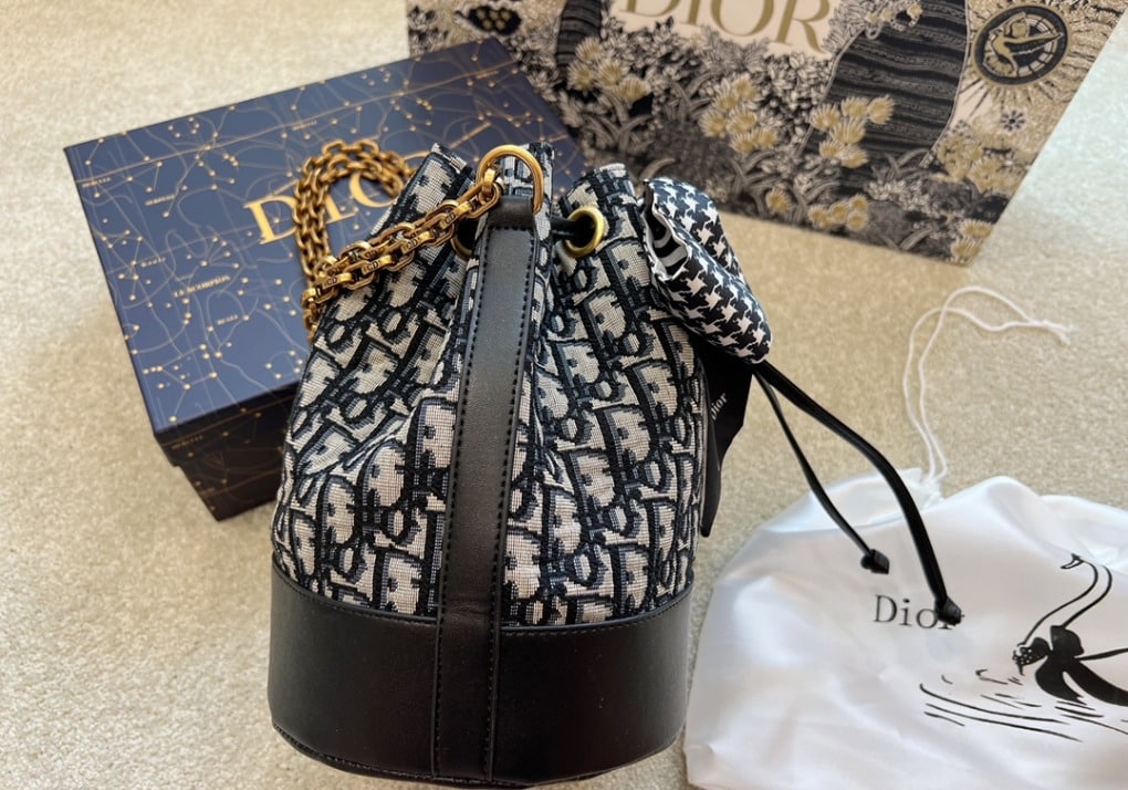 DIOR DRAW STRING BUCKET BAG OBLIQUE BLACK / 22CM LU84214014002