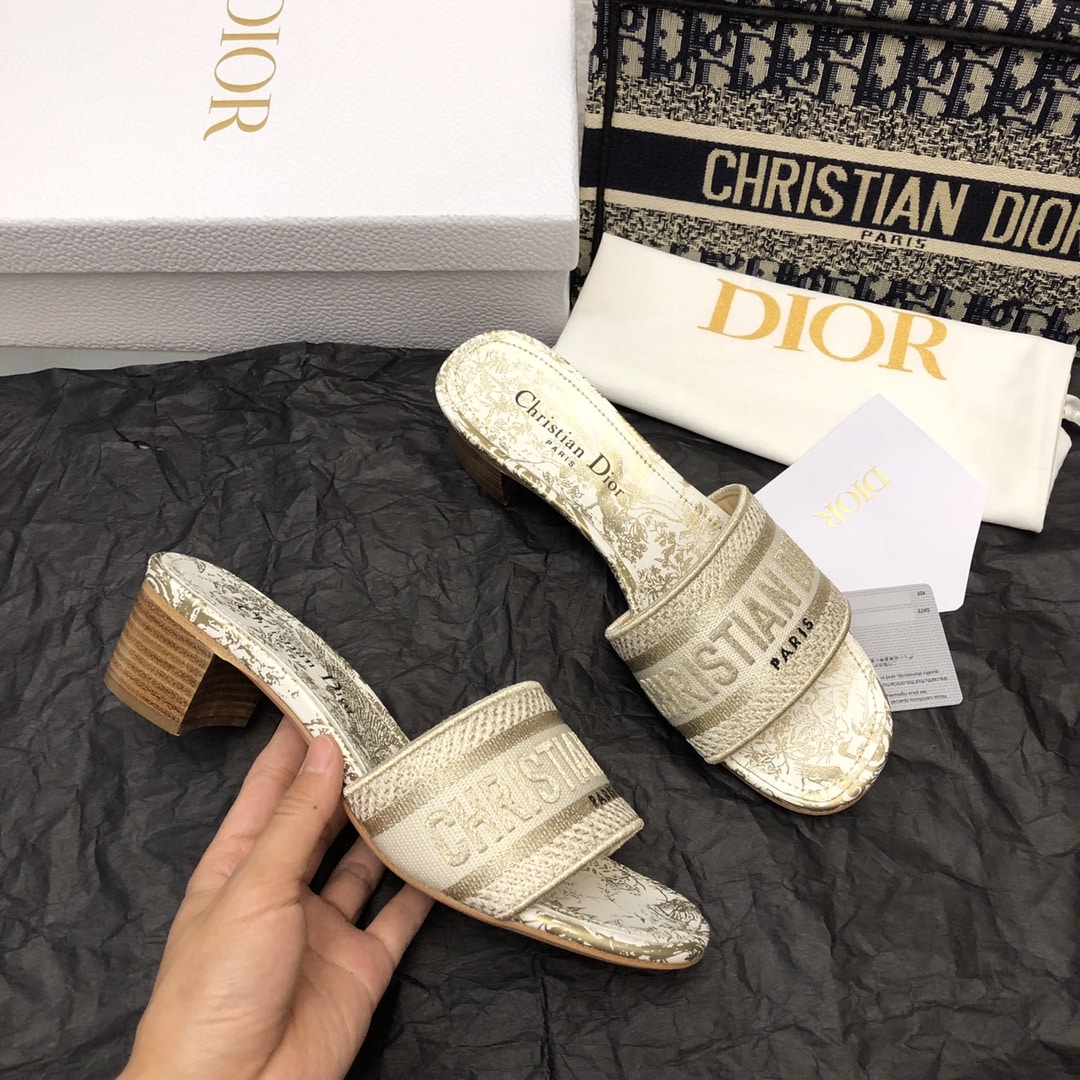 Be the first to review “DIOR DWAY HEELED SLIDE WHITE AND GOLD-TONE COTTON EMBROIDERED WITH DIOR JARDIN D’HIVER MOTIF” Cancel reply