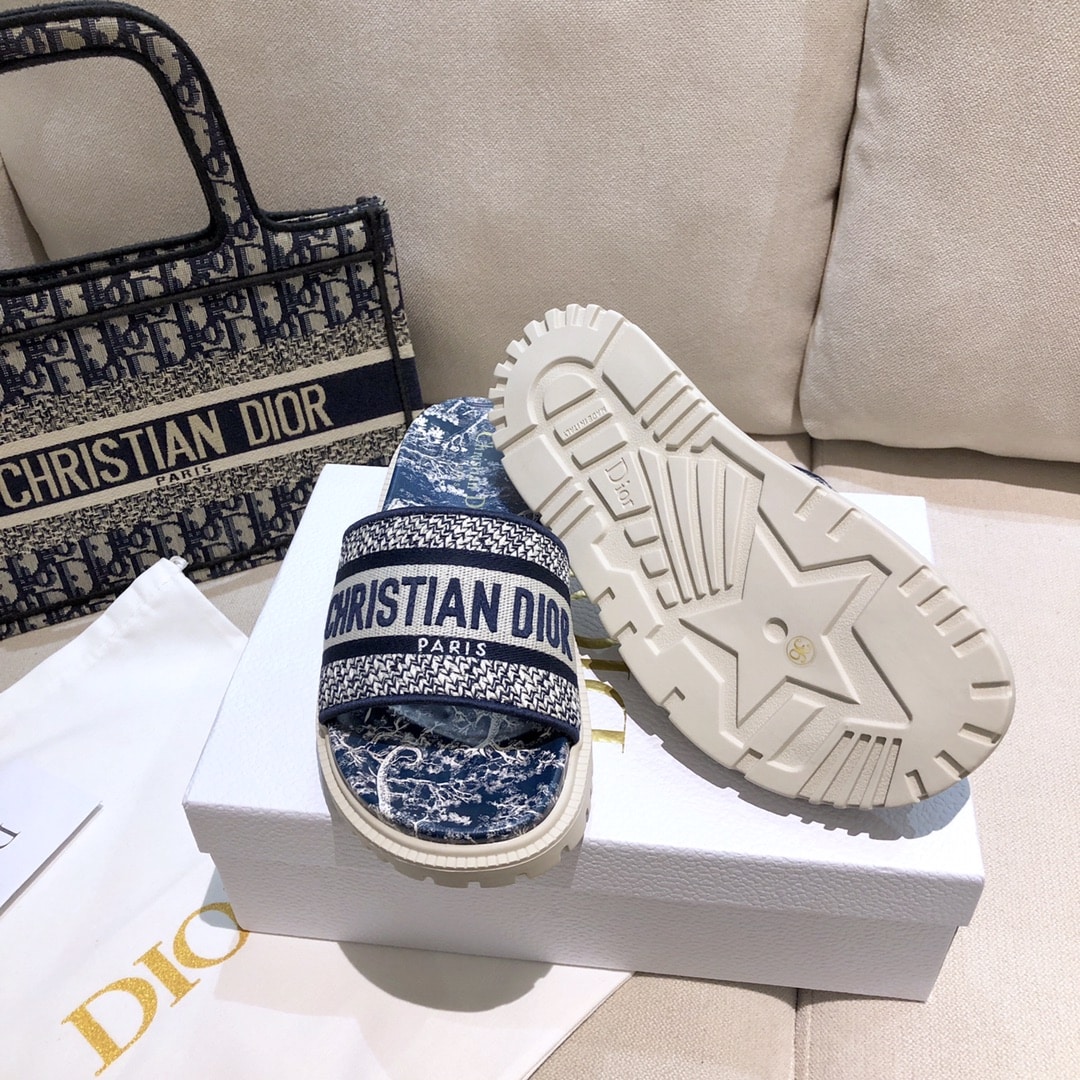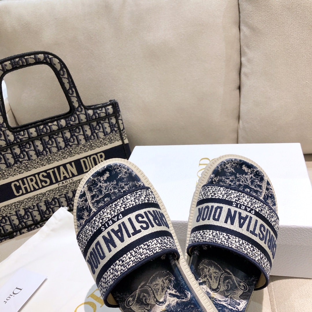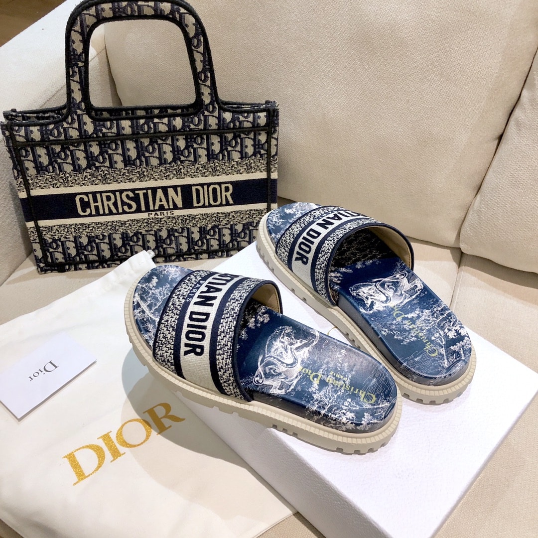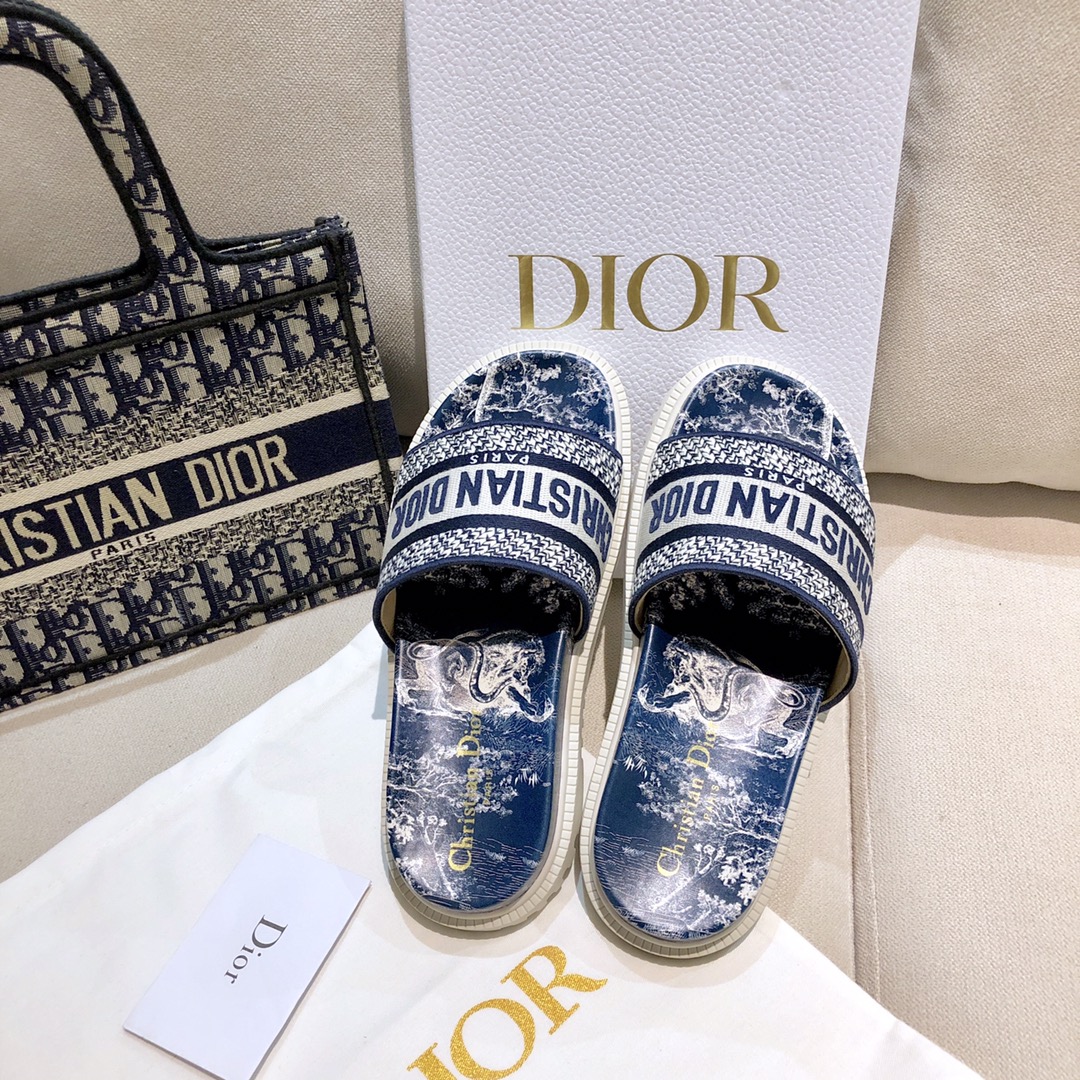DIOR DWAY SLIPPER DEEP BLUE TOILE DE JOUY REVERSE