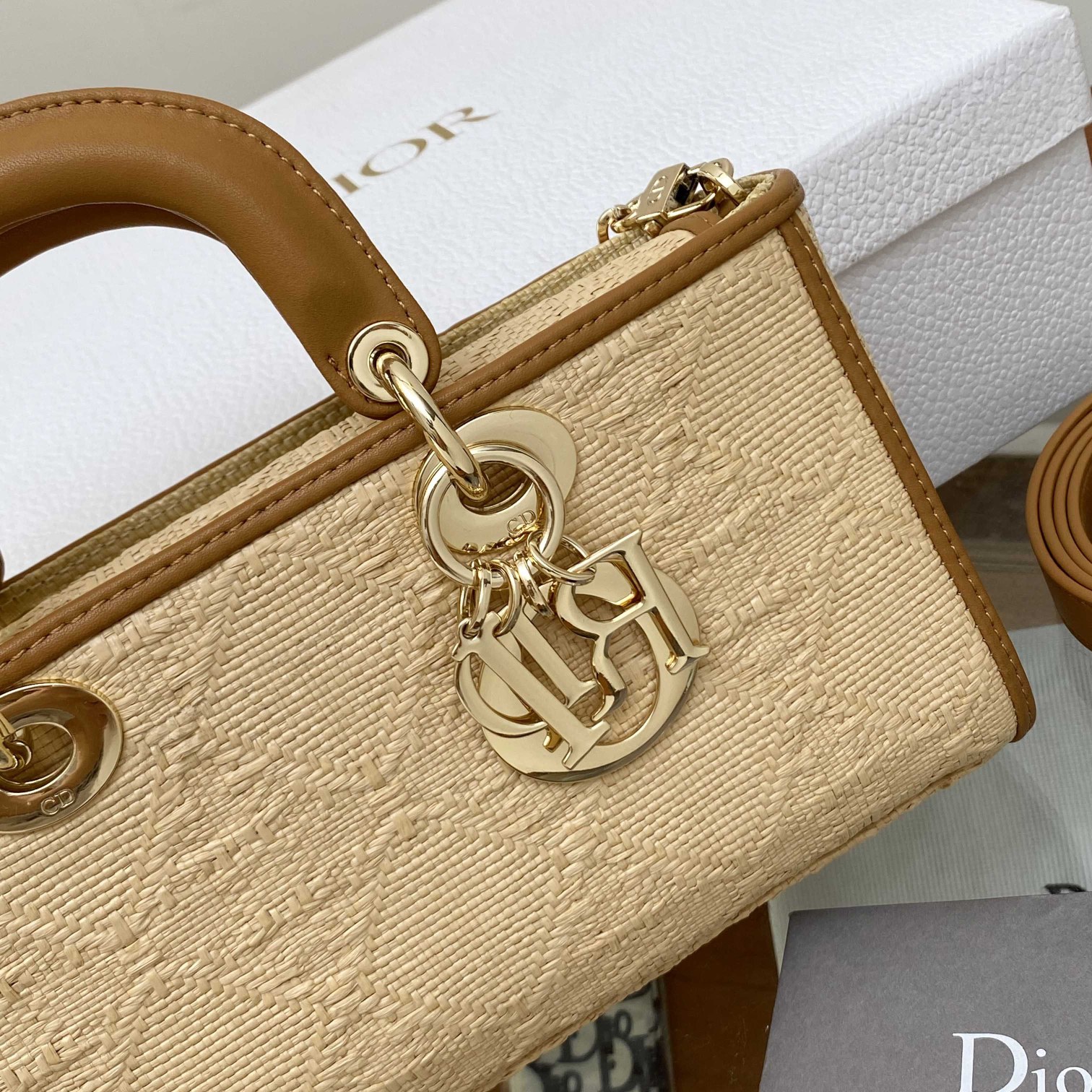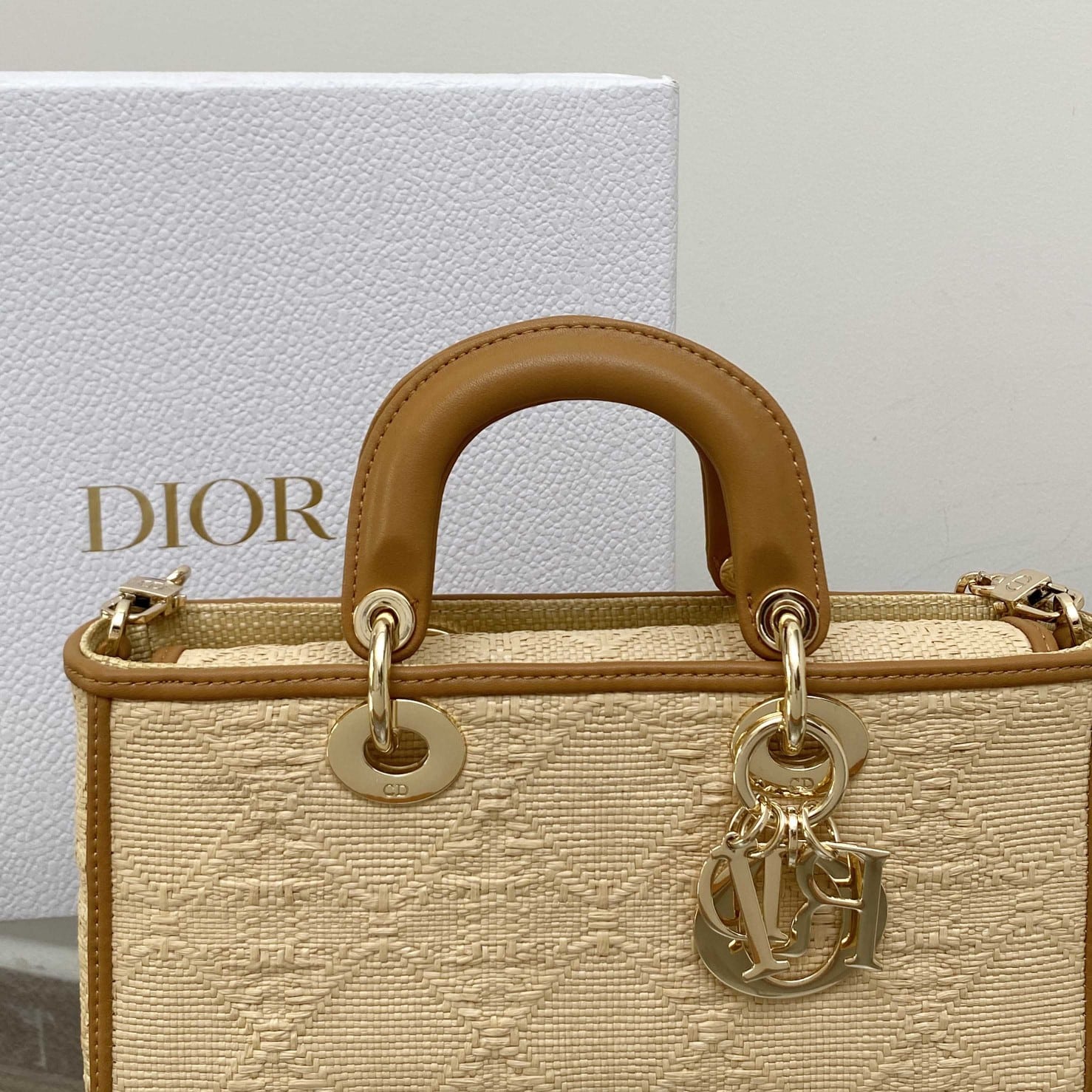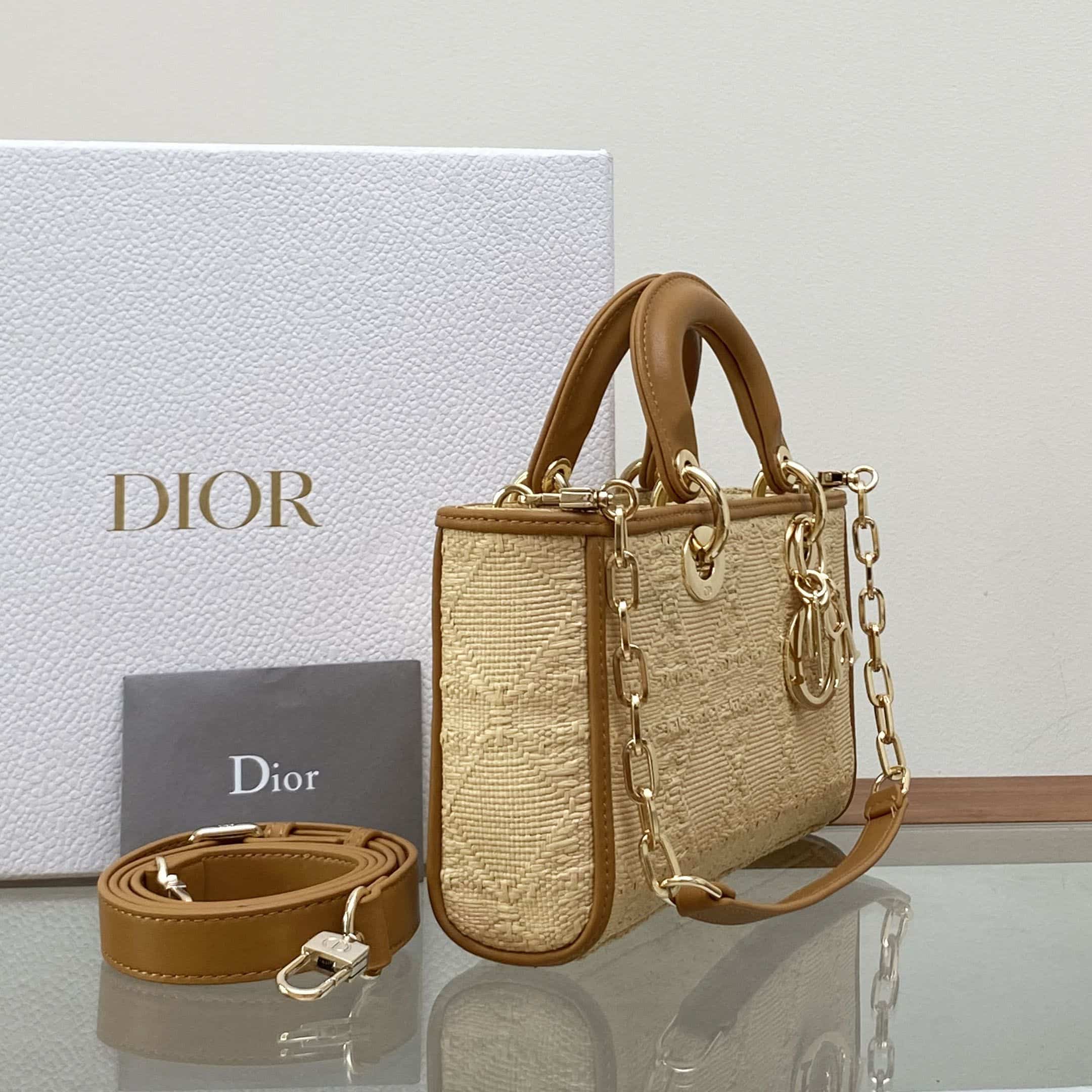 / DIOR LADY D-JOY BAGNATURAL RAFFIA WITH CANNAGE MOTIF M0540OMBD_M925