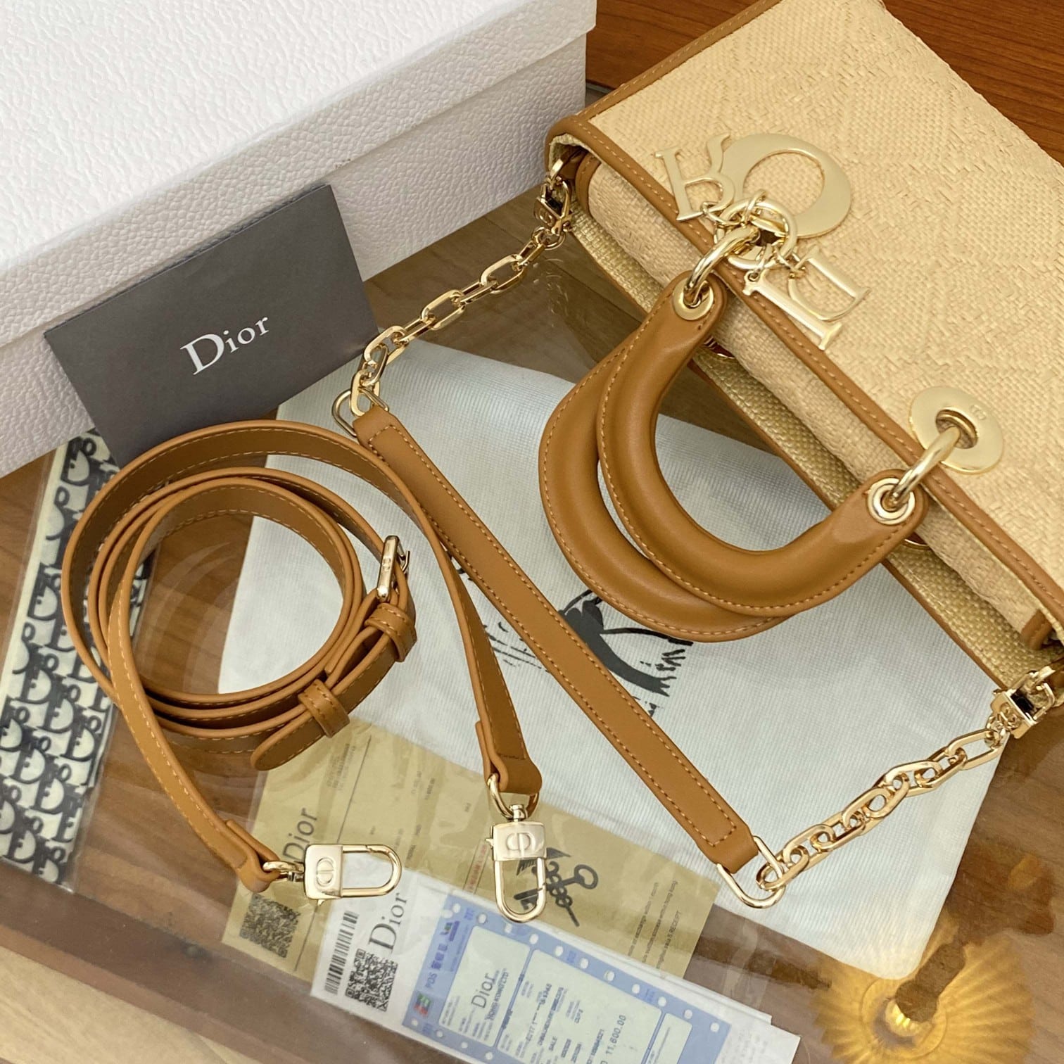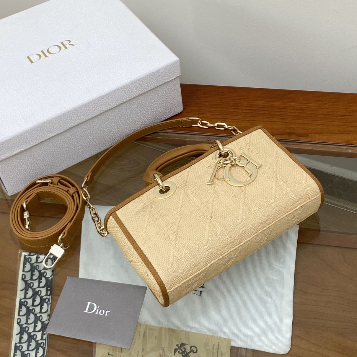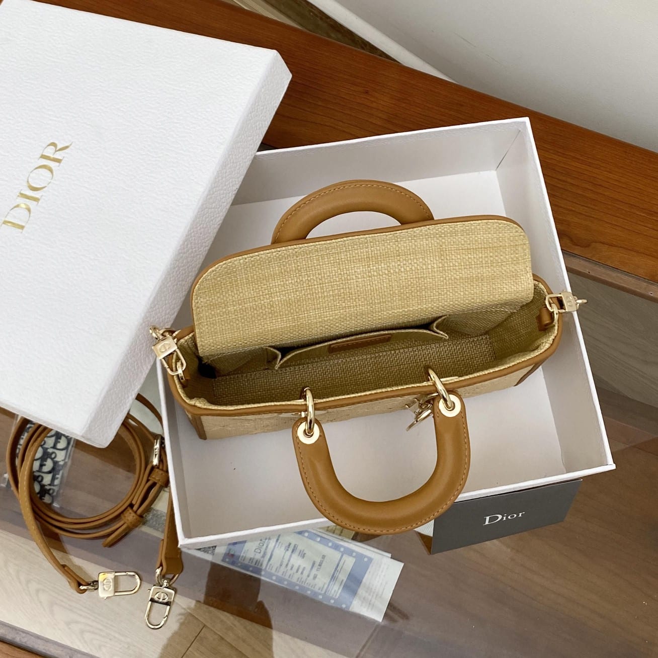 / DIOR LADY D-JOY BAGNATURAL RAFFIA WITH CANNAGE MOTIF M0540OMBD_M925