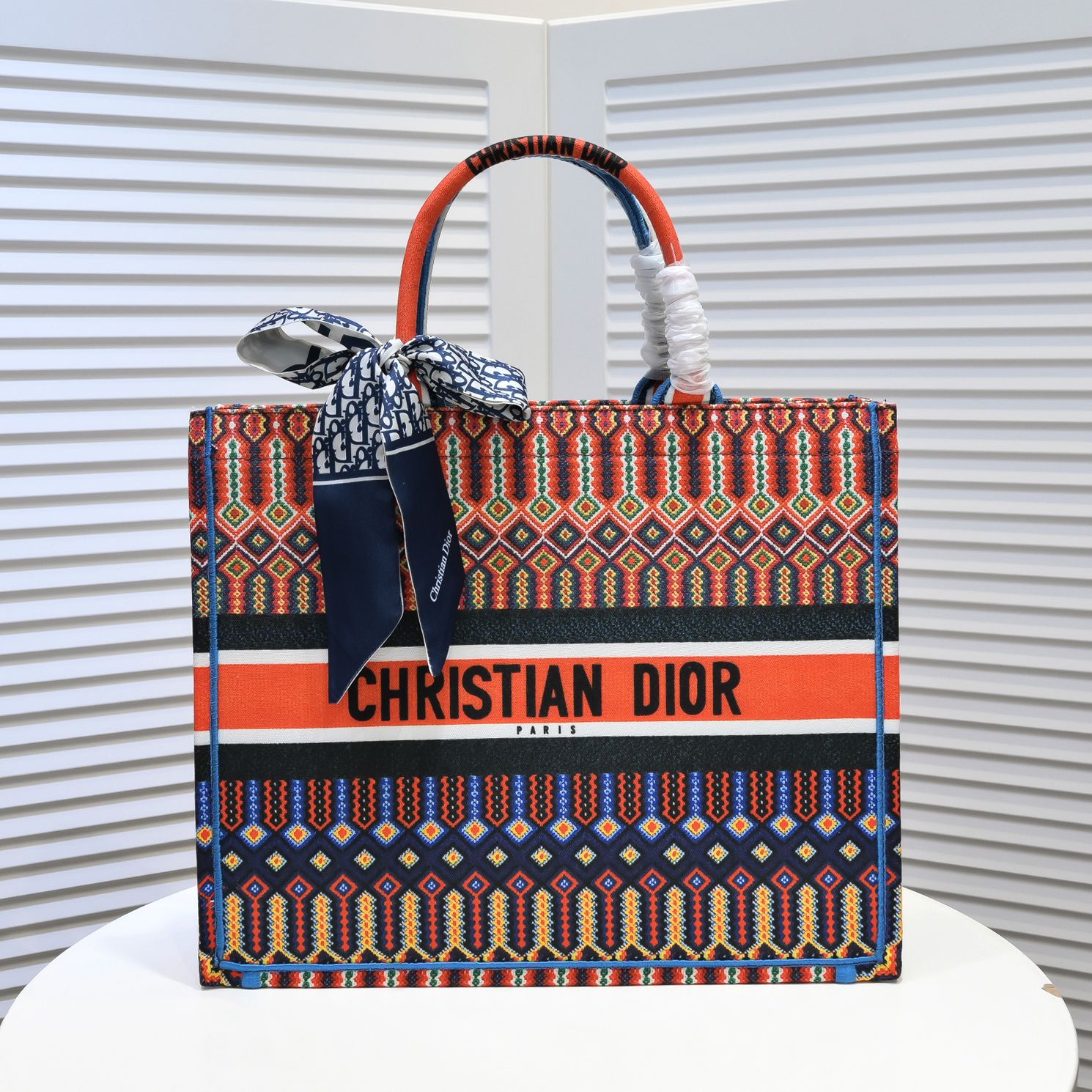 DIOR LARGE BOOK TOTE CANVAS EMBROIDERY DARK MULTICOLOR SIZE 41CM