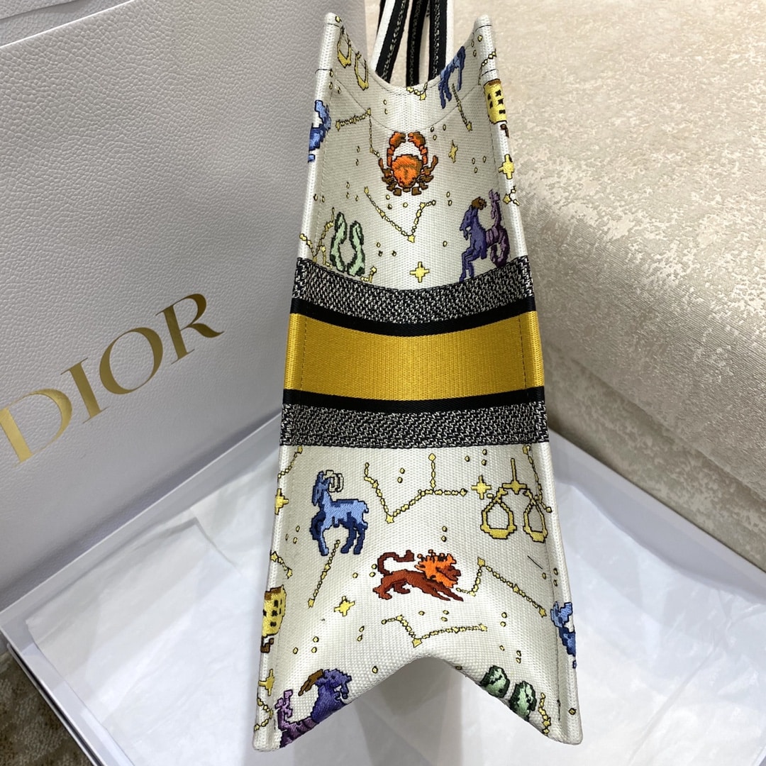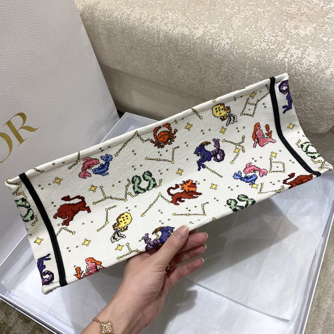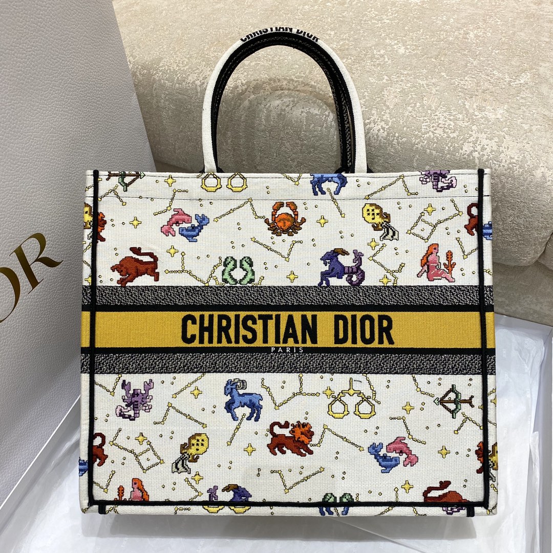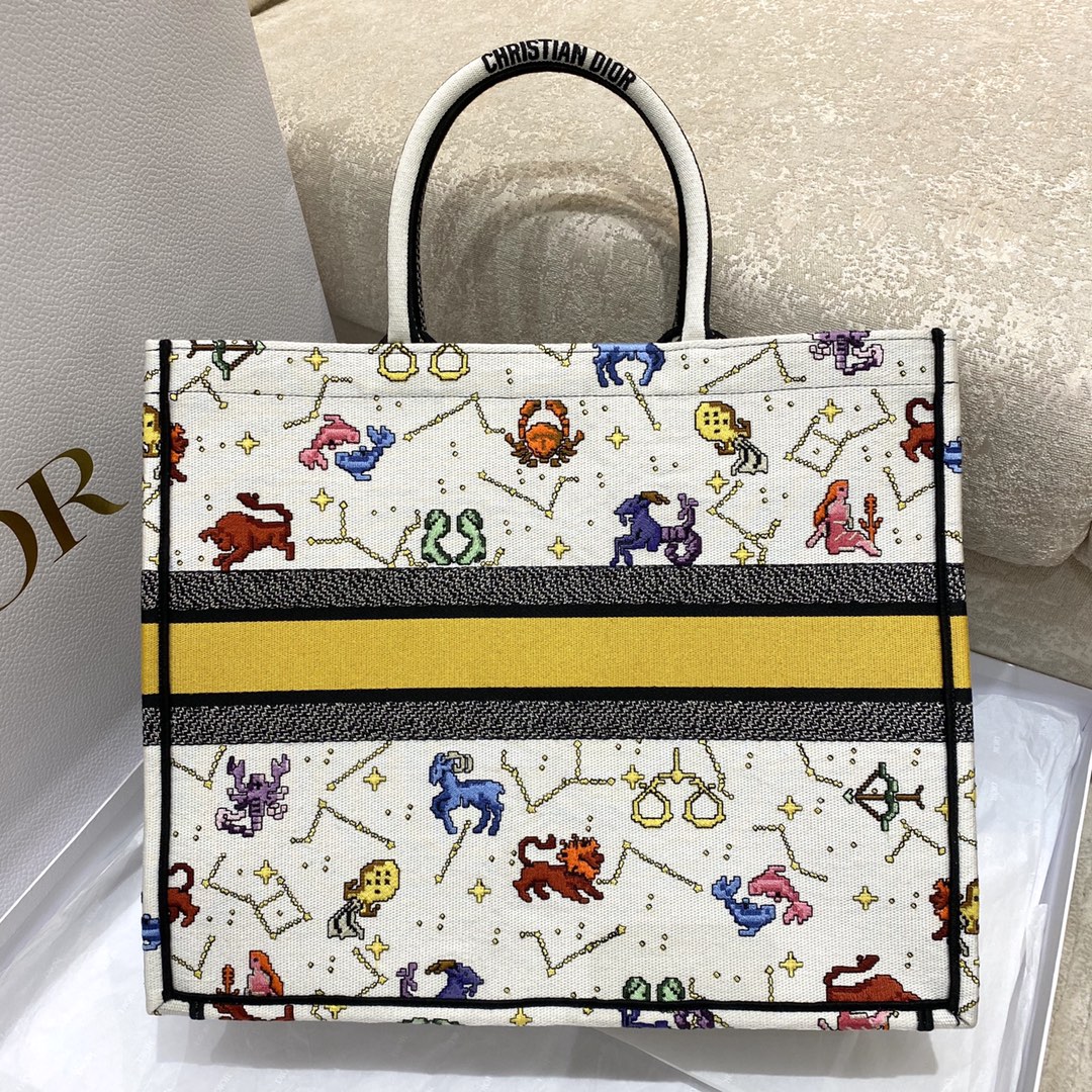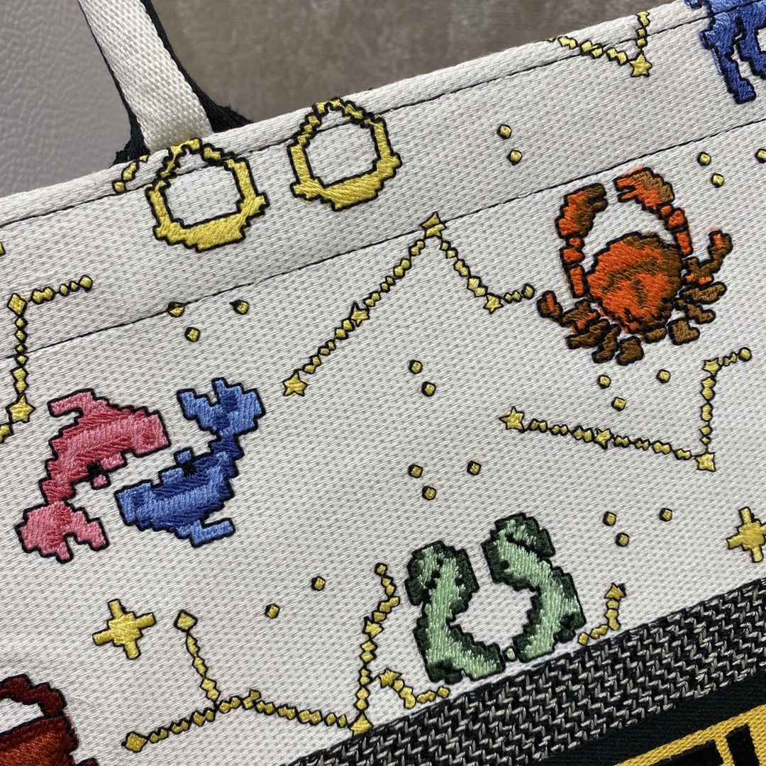 DIOR LARGE BOOK TOTE LATTE MULTICOLOR PIXEL ZODIAC EMBROIDERY 42CM M1286ZRTY_M941