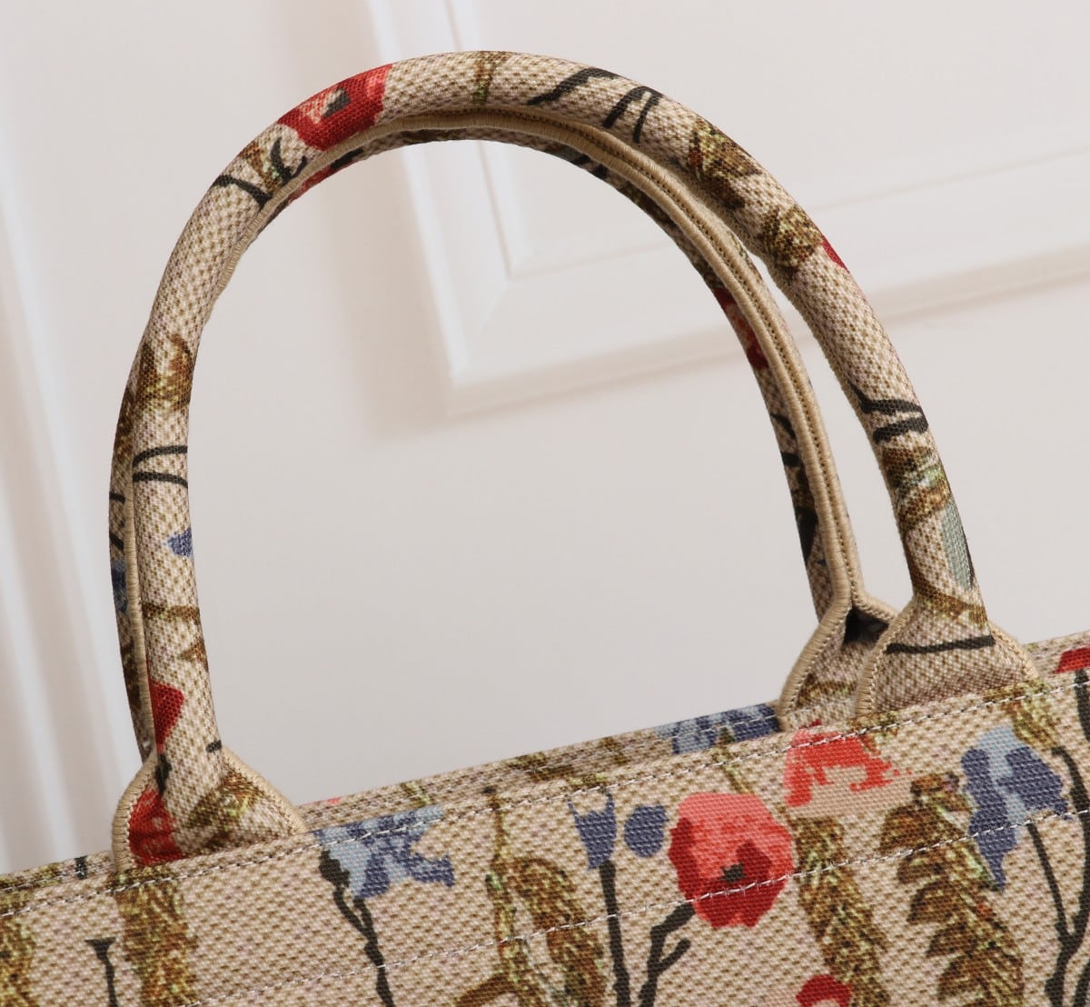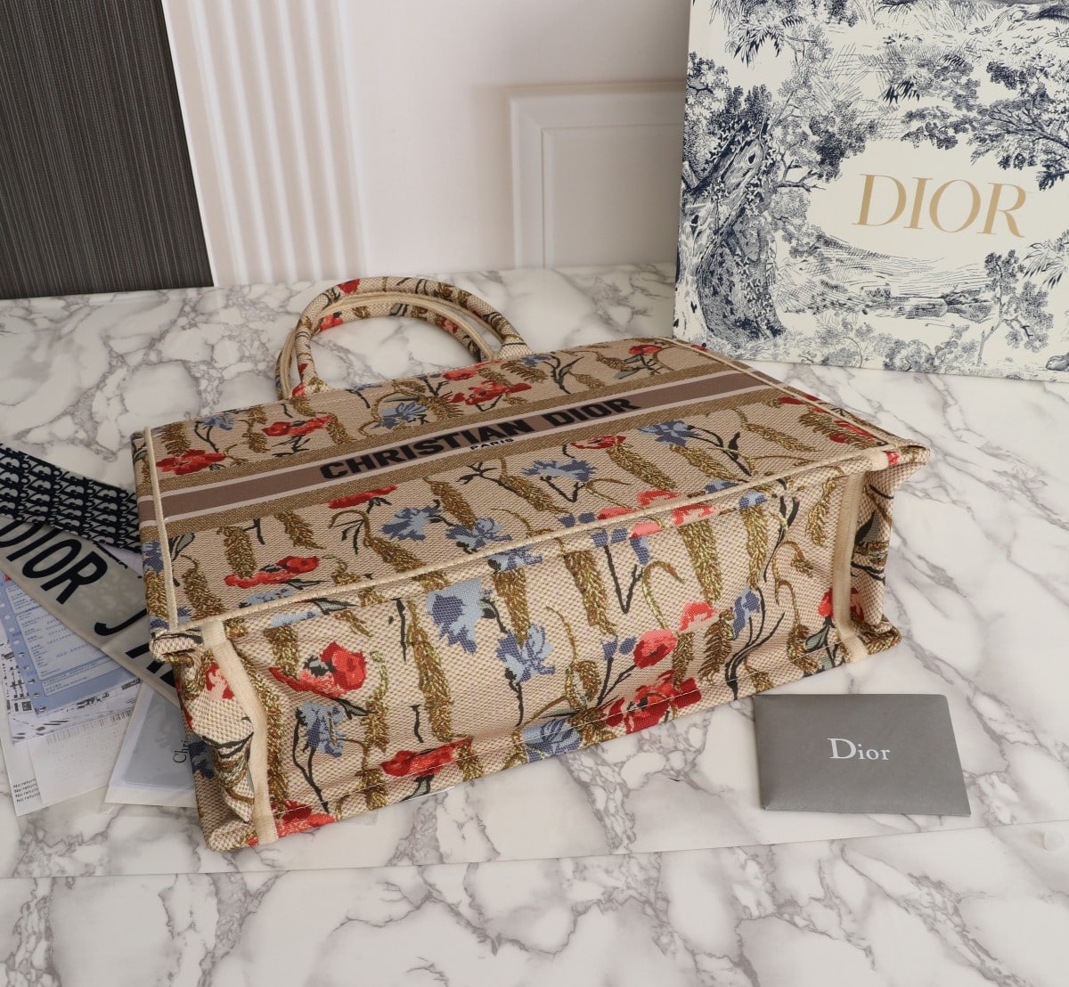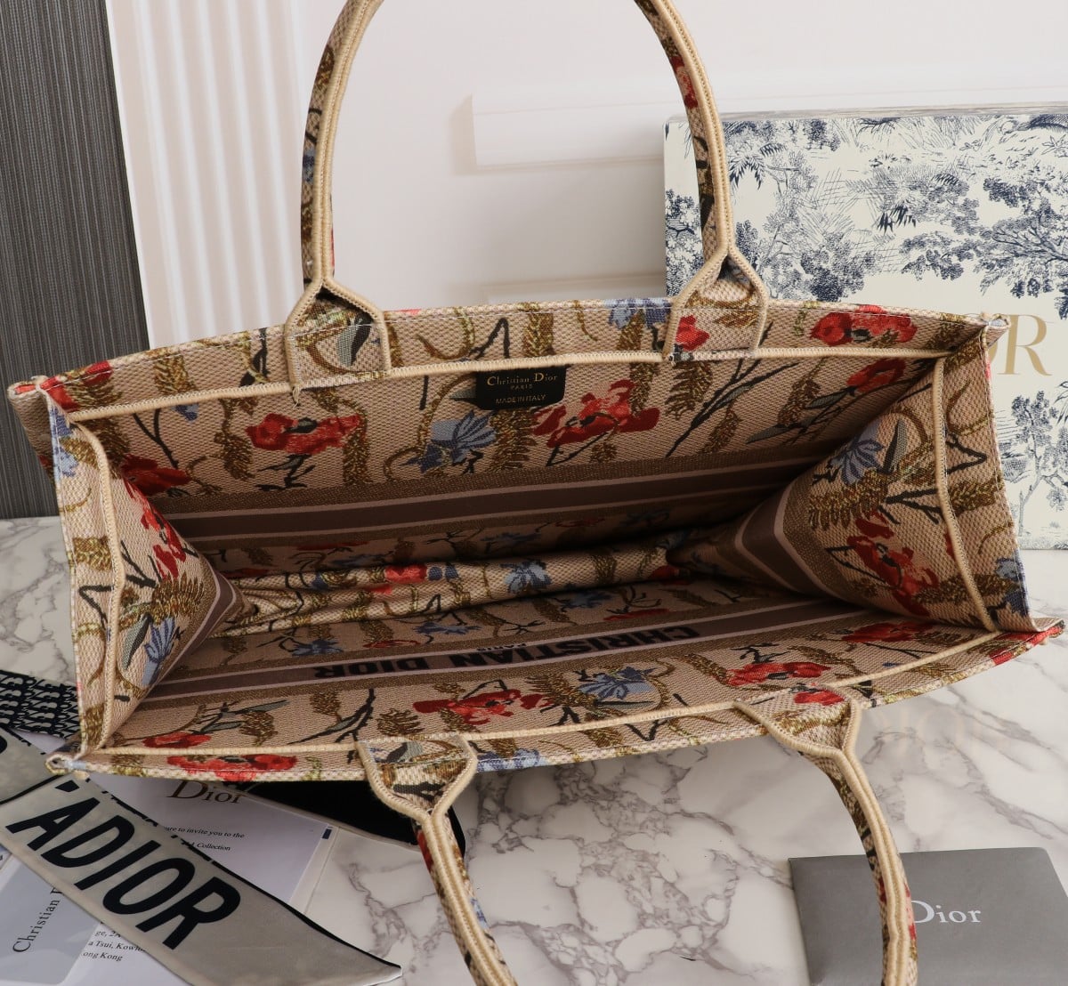 DIOR LARGE TOTE BOOK HIBISCUS EMBROIDERY BEIGE SIZE 42CM