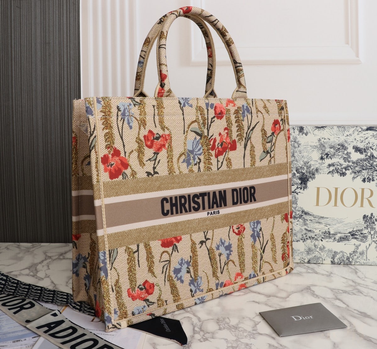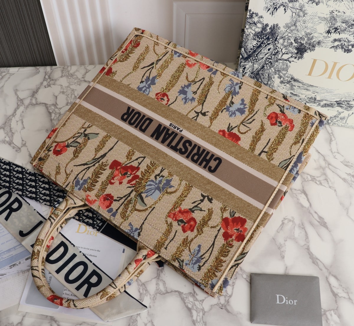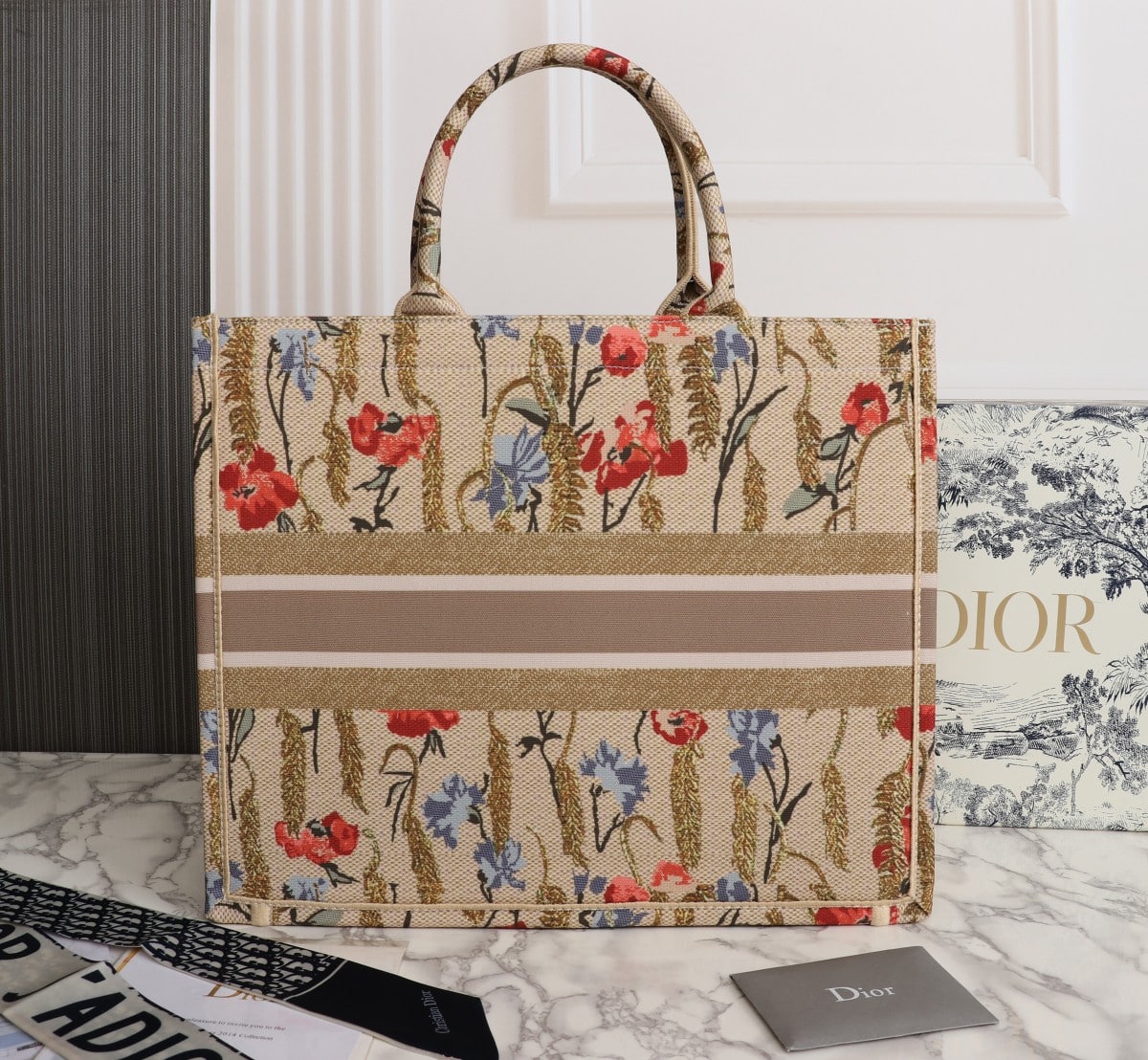 DIOR LARGE TOTE BOOK HIBISCUS EMBROIDERY BEIGE SIZE 42CM
