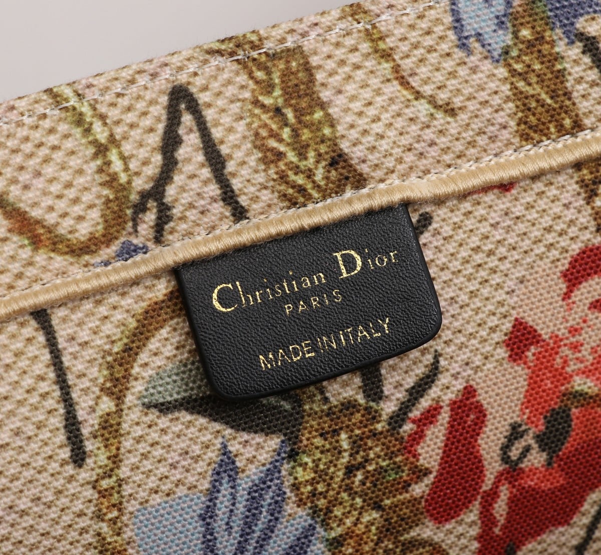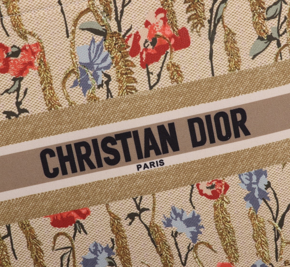 DIOR LARGE TOTE BOOK HIBISCUS EMBROIDERY BEIGE 42CM