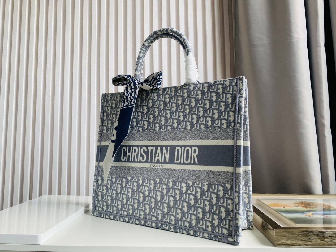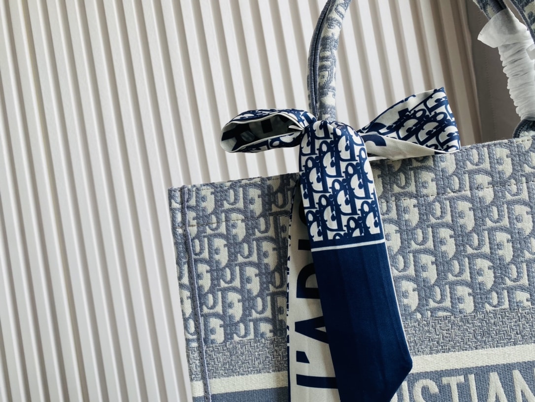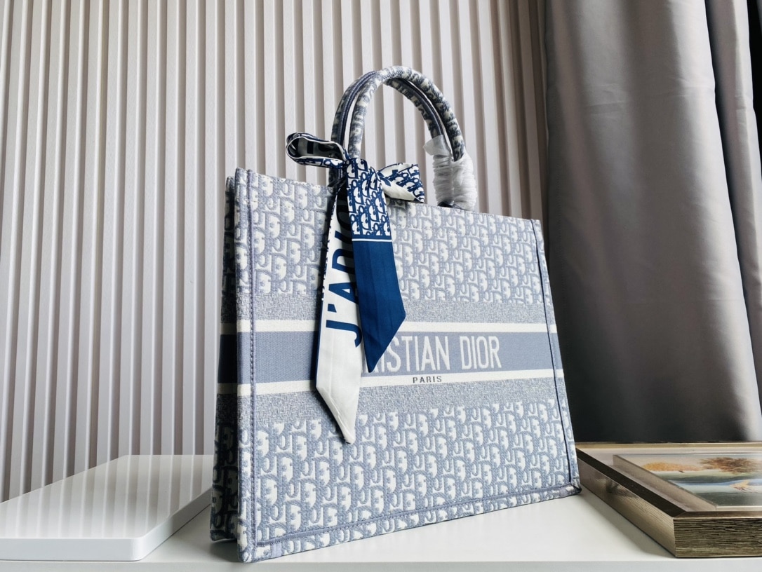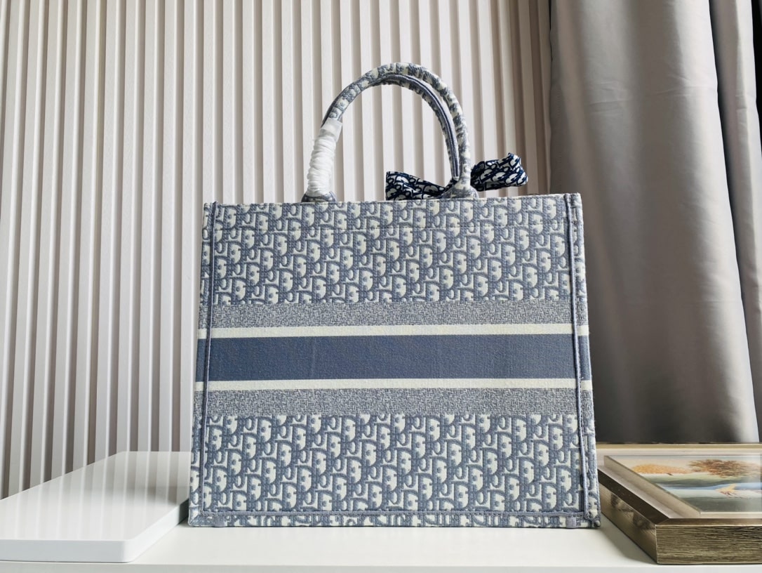DIOR LARGE TOTE TOILE DE JOUY EMBROIDERY LIGHT BLUE SIZE 42CM