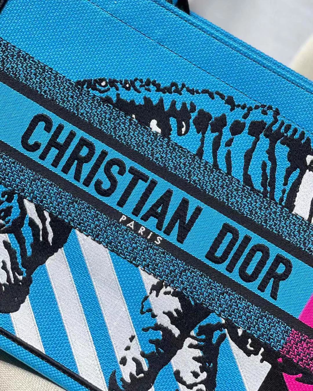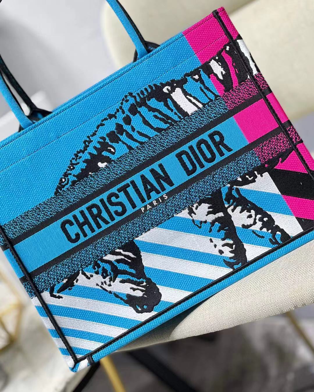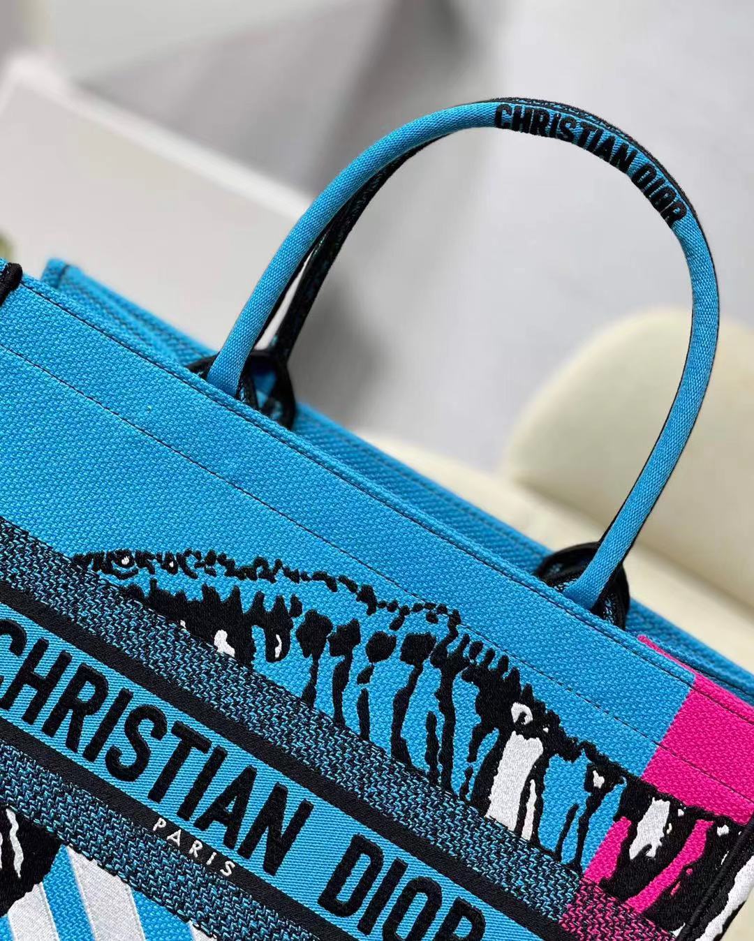 Dior Medium Book Tote Bright Blue and Bright Pink D-Jungle Pop Embroidery /36cm M1296ZRON_M888