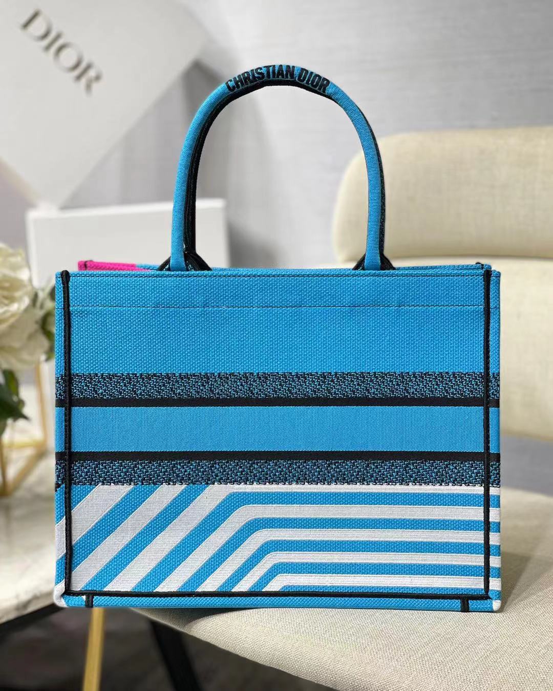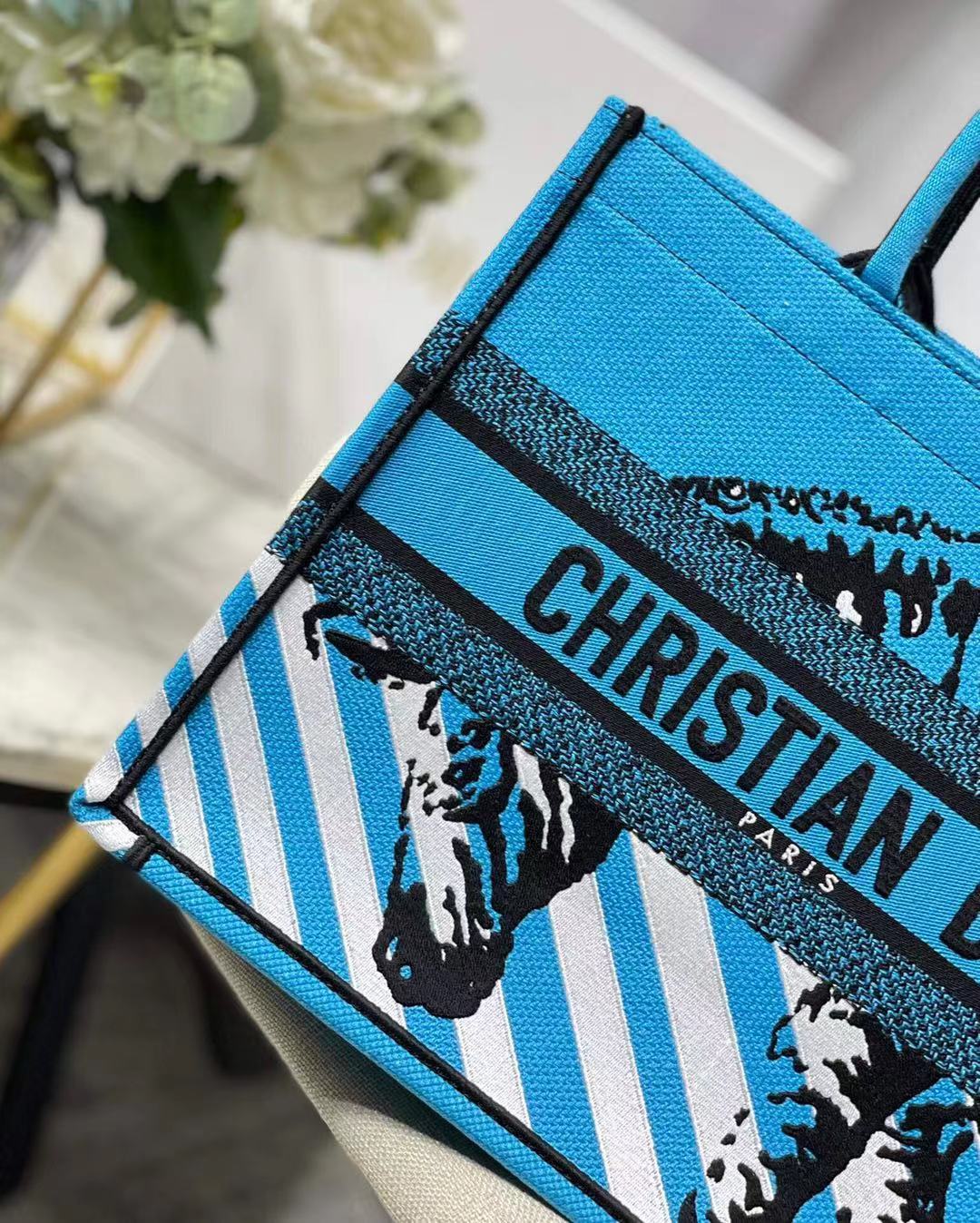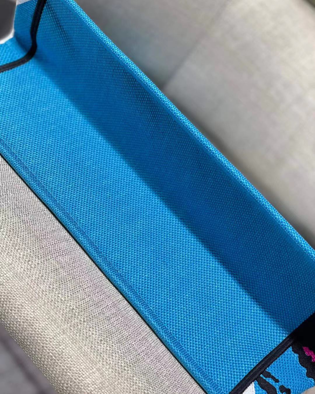 Dior Medium Book Tote Bright Blue and Bright Pink D-Jungle Pop Embroidery /36cm M1296ZRON_M888