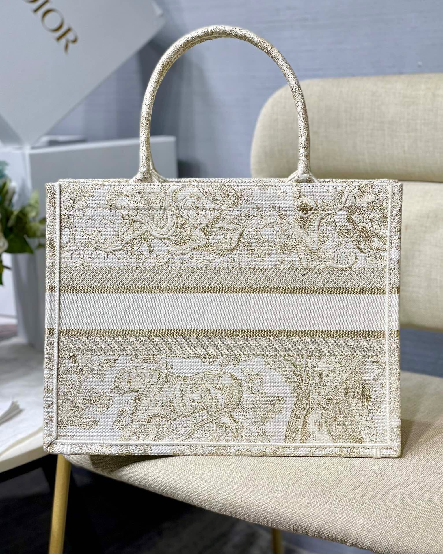 Dior Medium Book Tote Gold-Tone Toile de Jouy Embroidery / 36cm M1296ZTQO_M01E