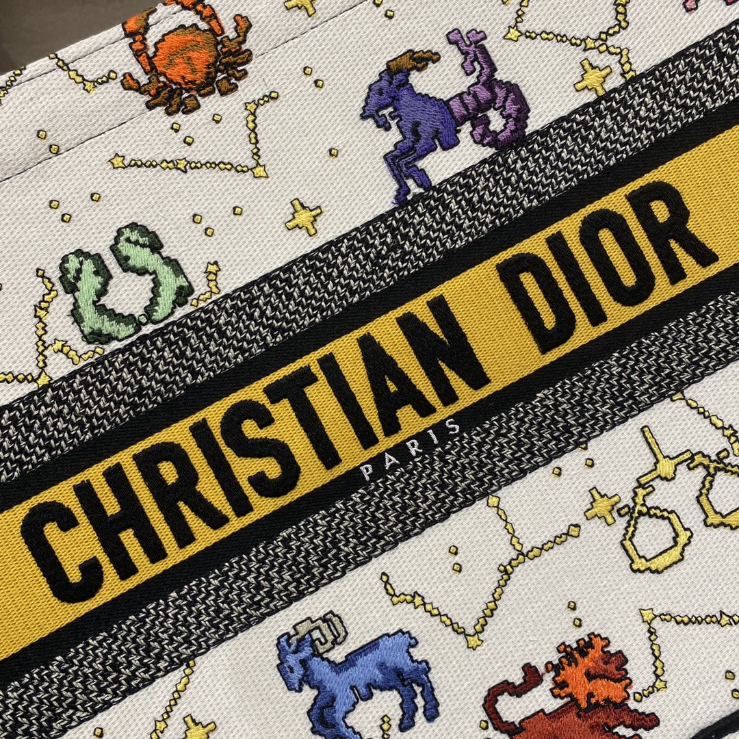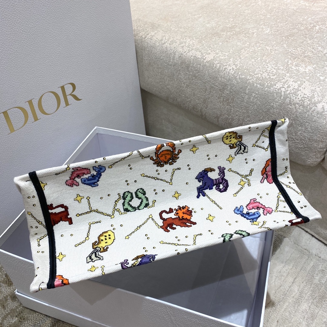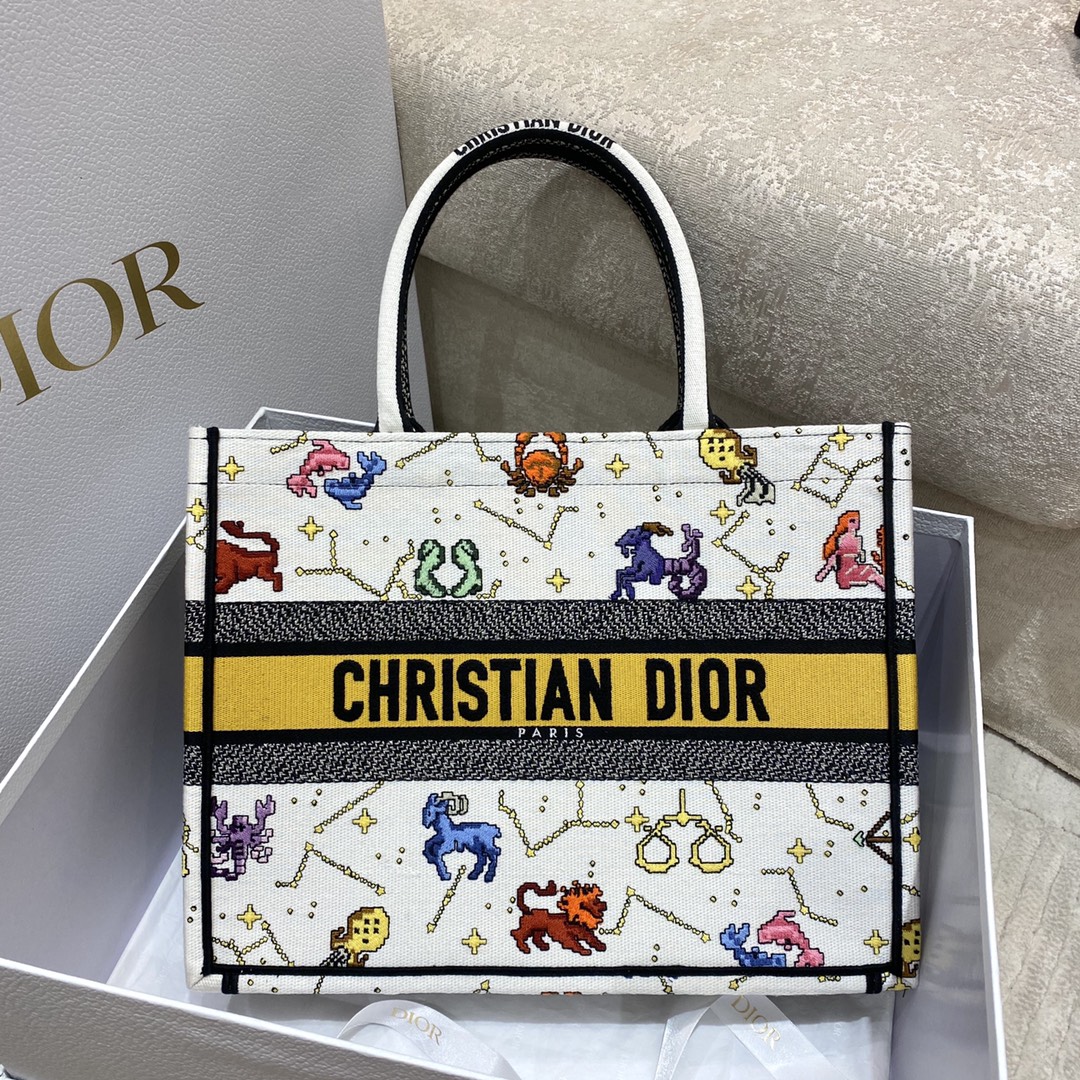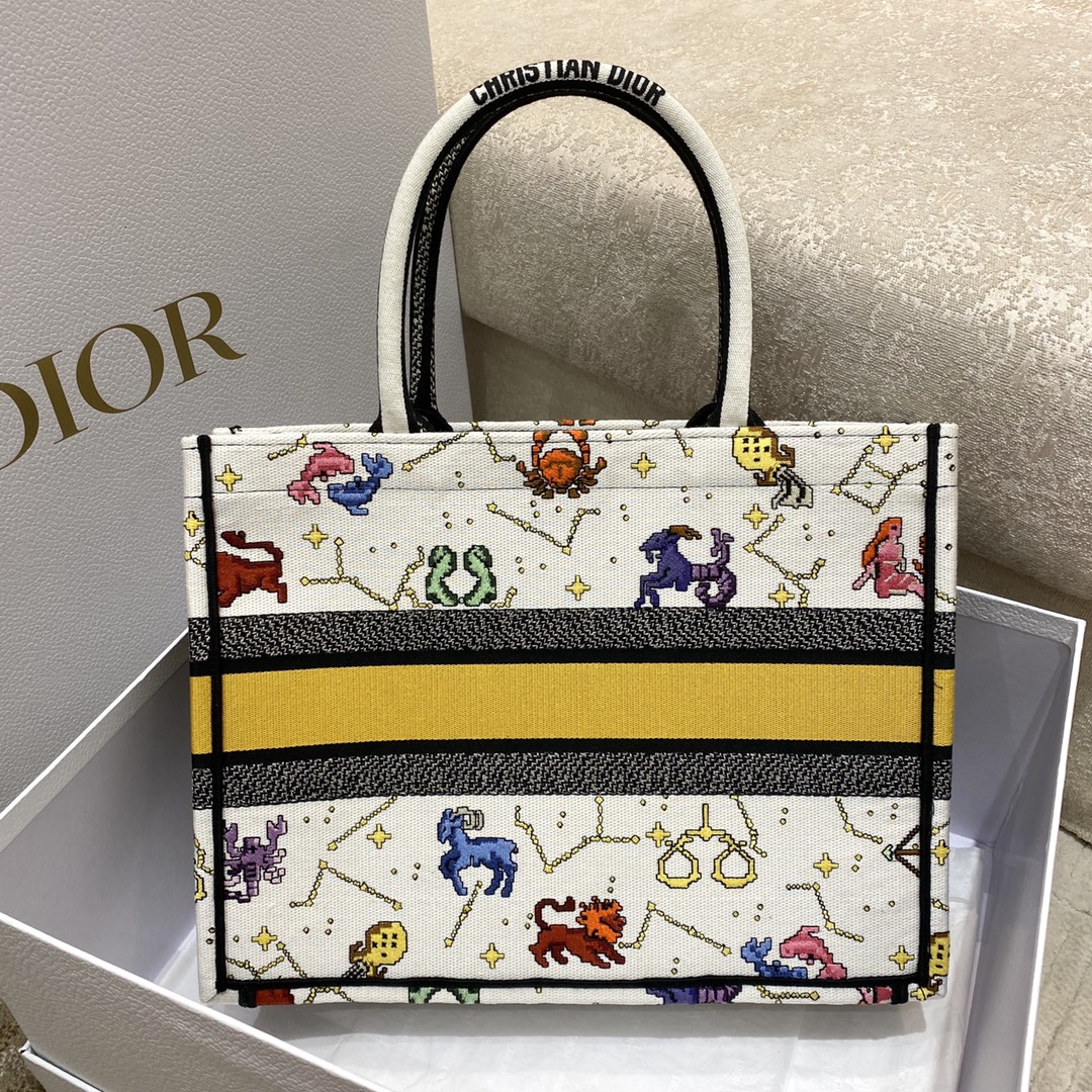 DIOR MEDIUM BOOK TOTE LATTE MULTICOLOR PIXEL ZODIAC EMBROIDERY 36CM M1286ZRLE_M886
