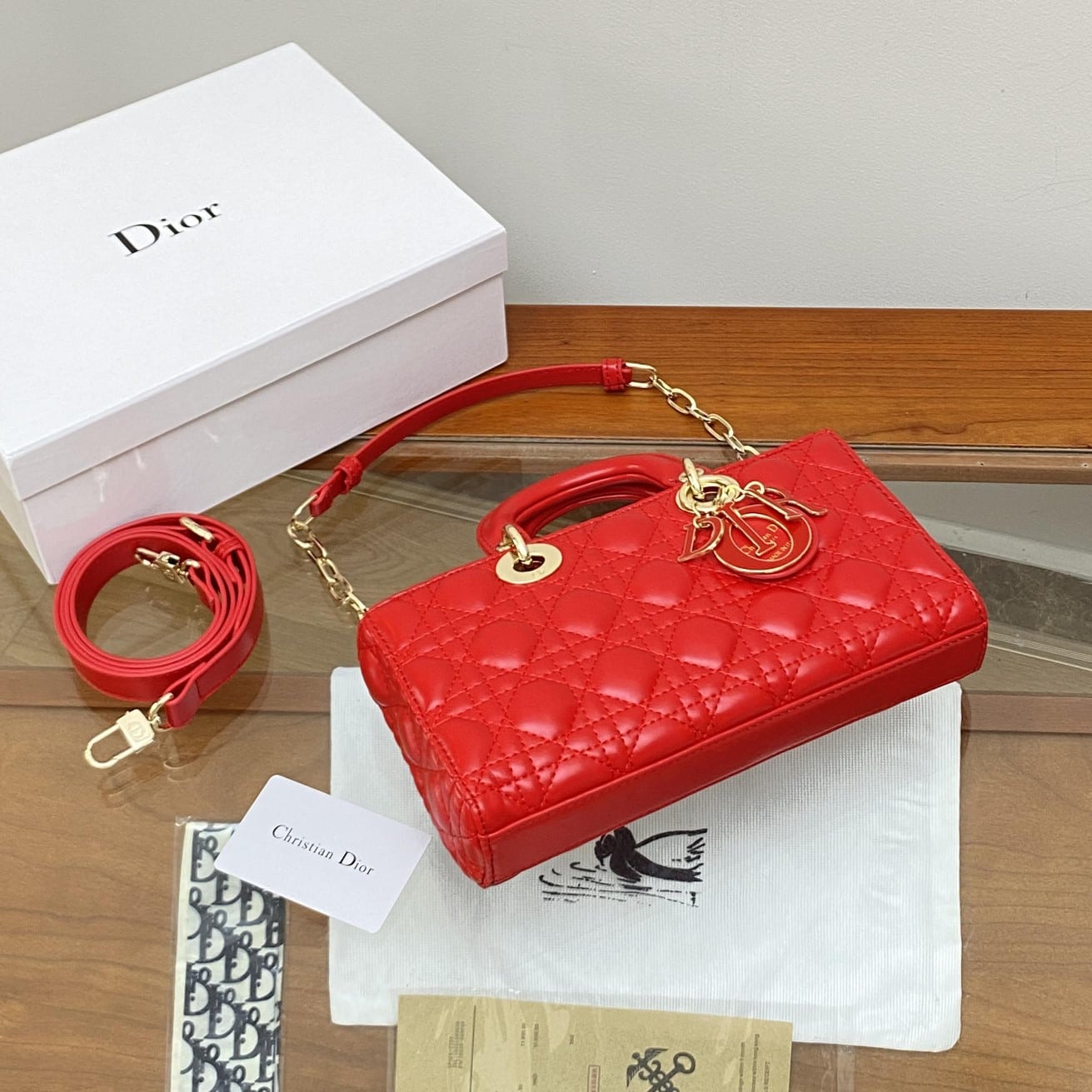 / DIOR MEDIUM LADY D-JOY BAGROYAL CANNAGE RED