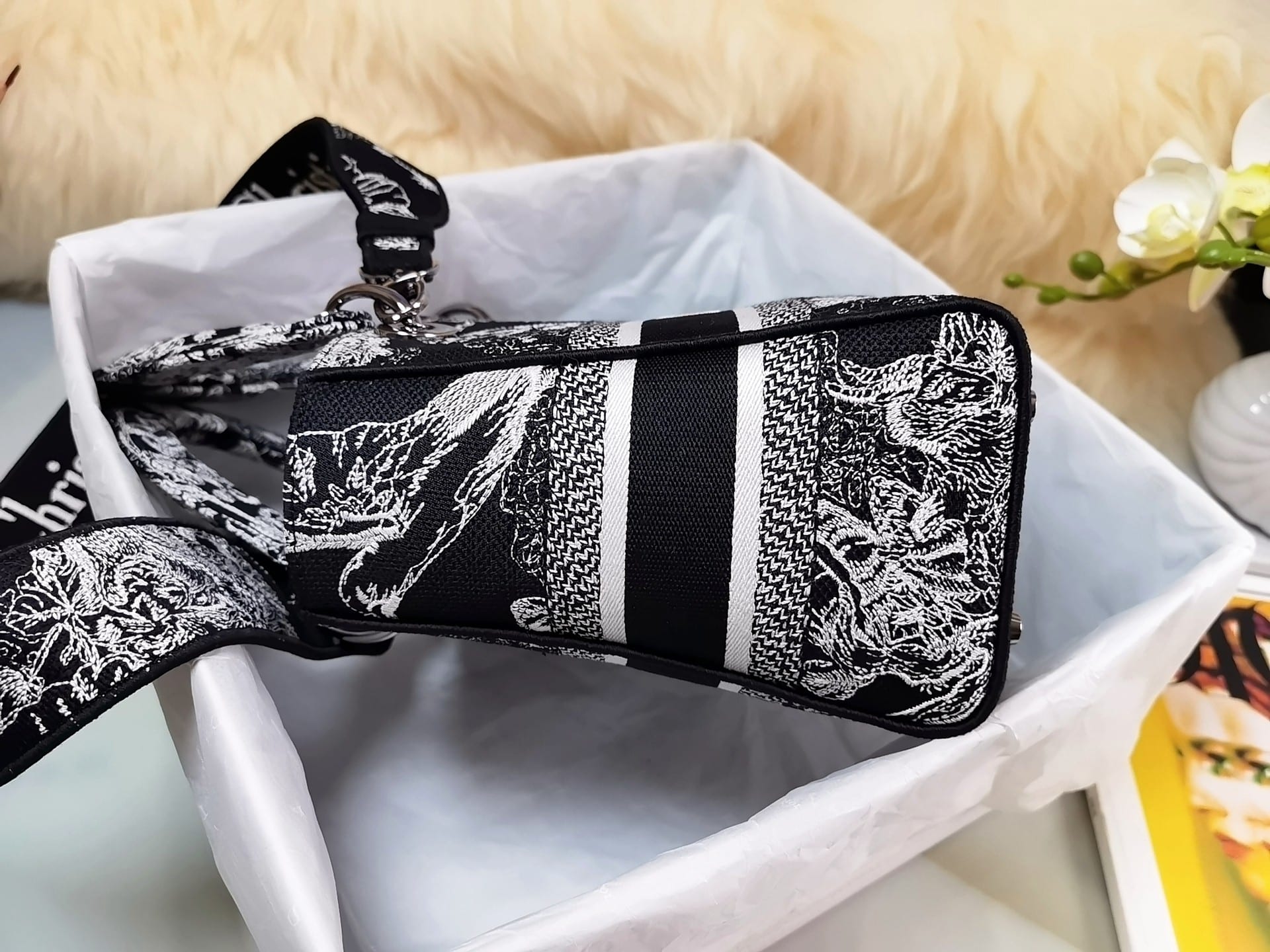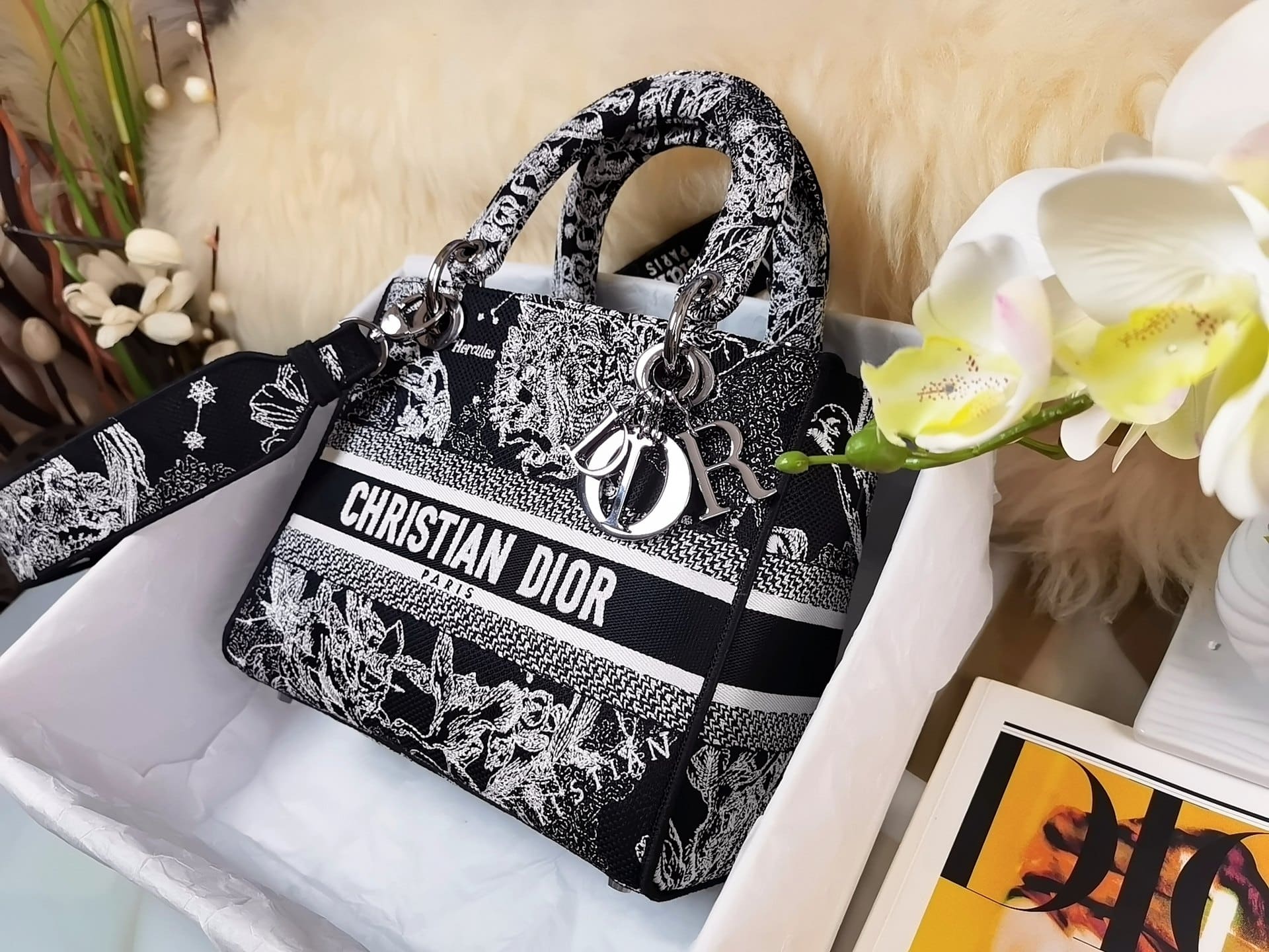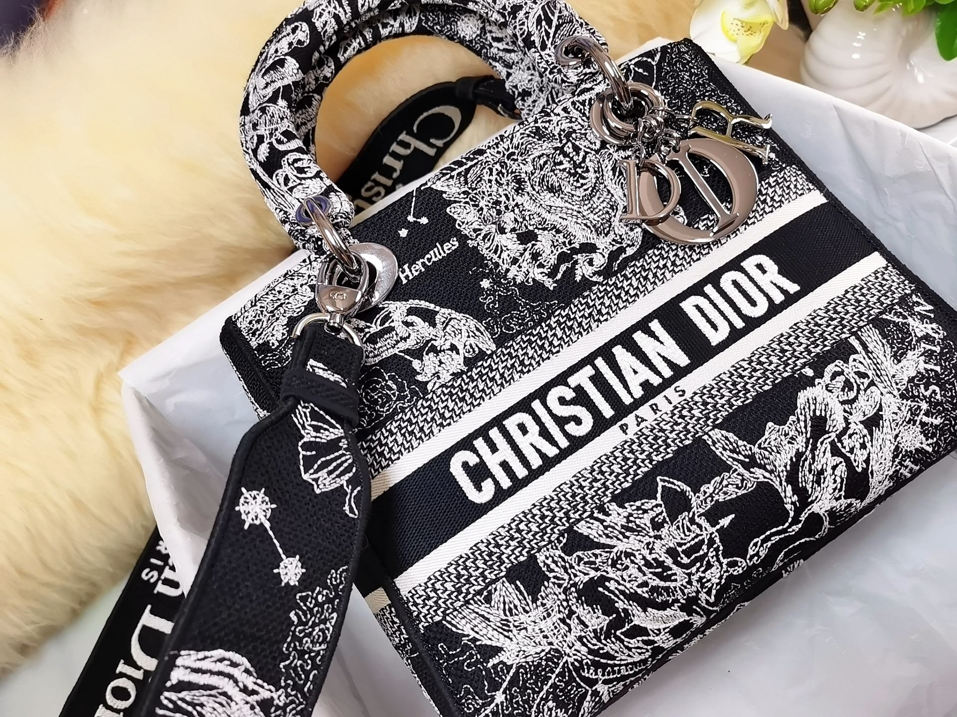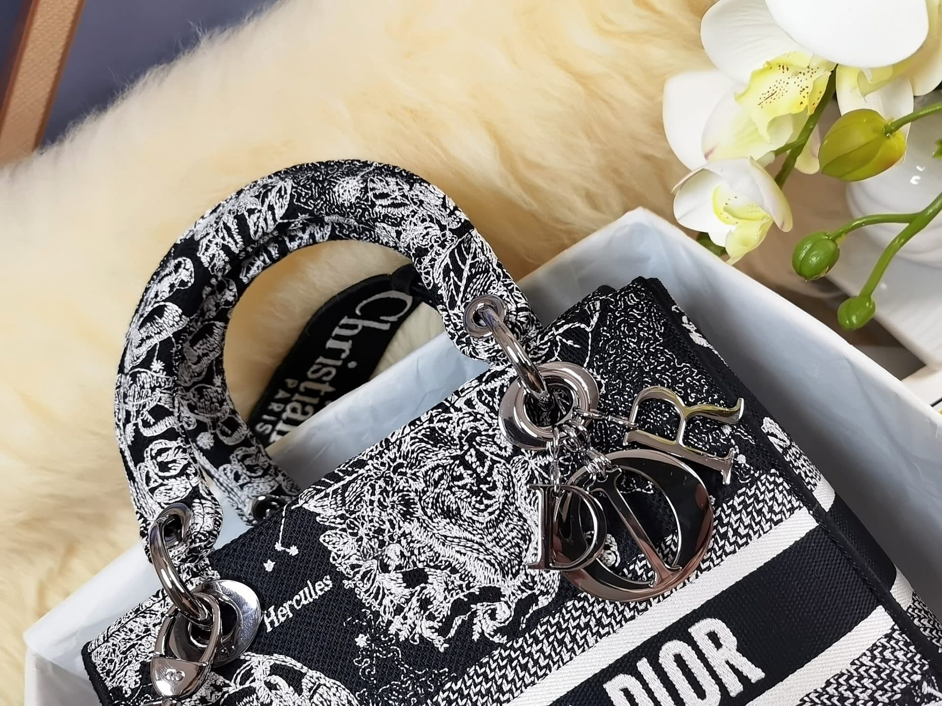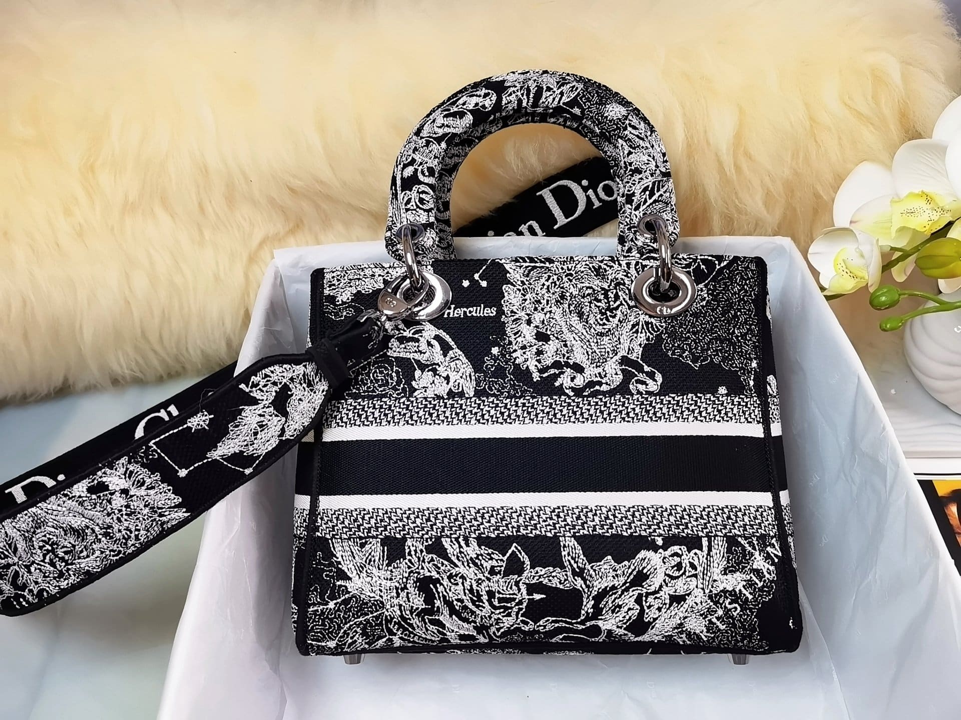 Dior Medium Lady D-Lite Bag Black Toile de Jouy Zodiac Embroidery 24cm M0565BRHZ_M911