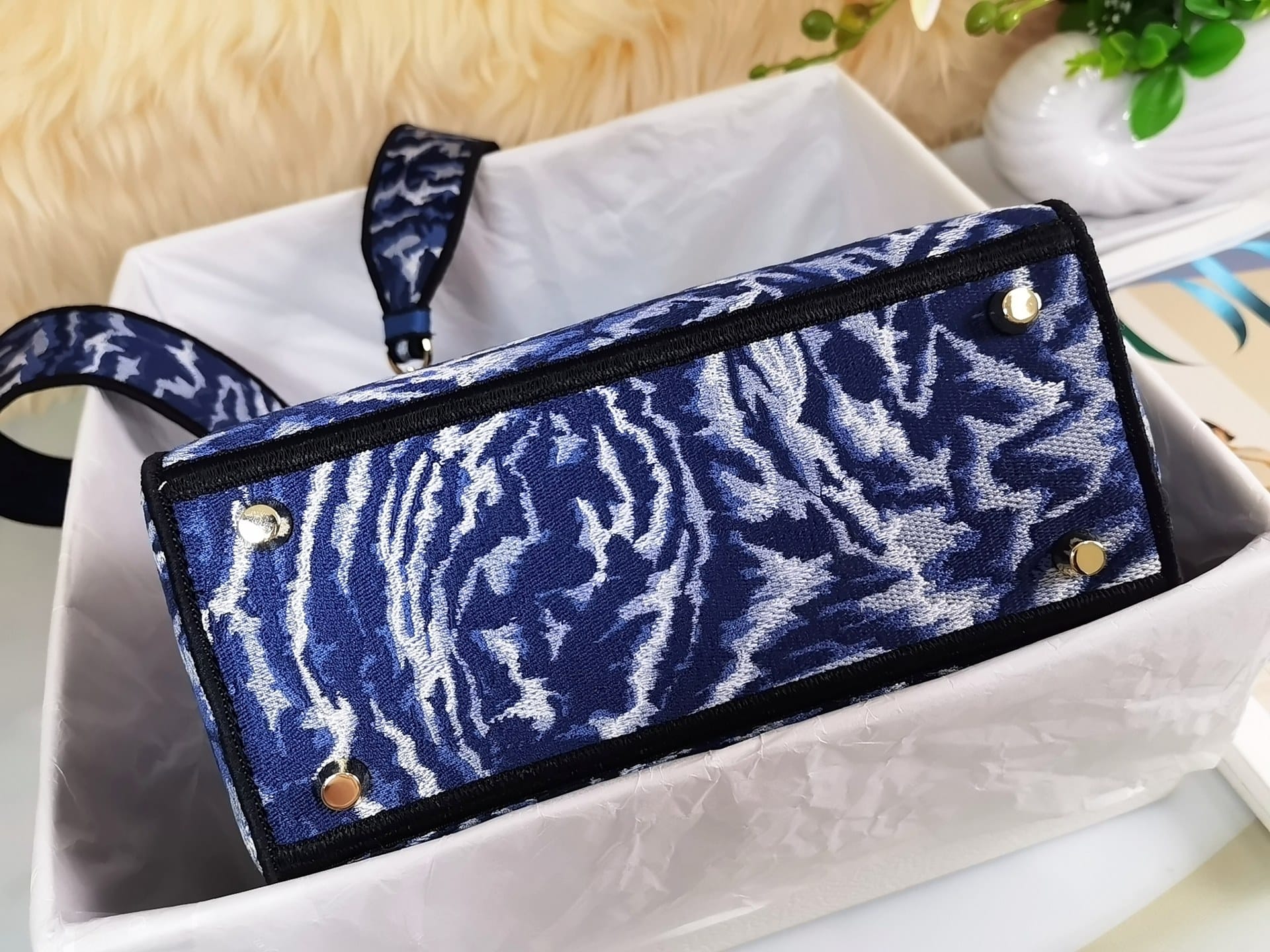 DIOR SADDLE OBLIQUE EMBOSSED BLUE AND GOLD