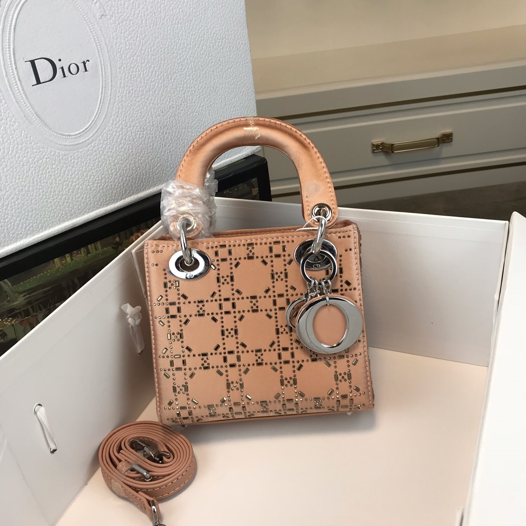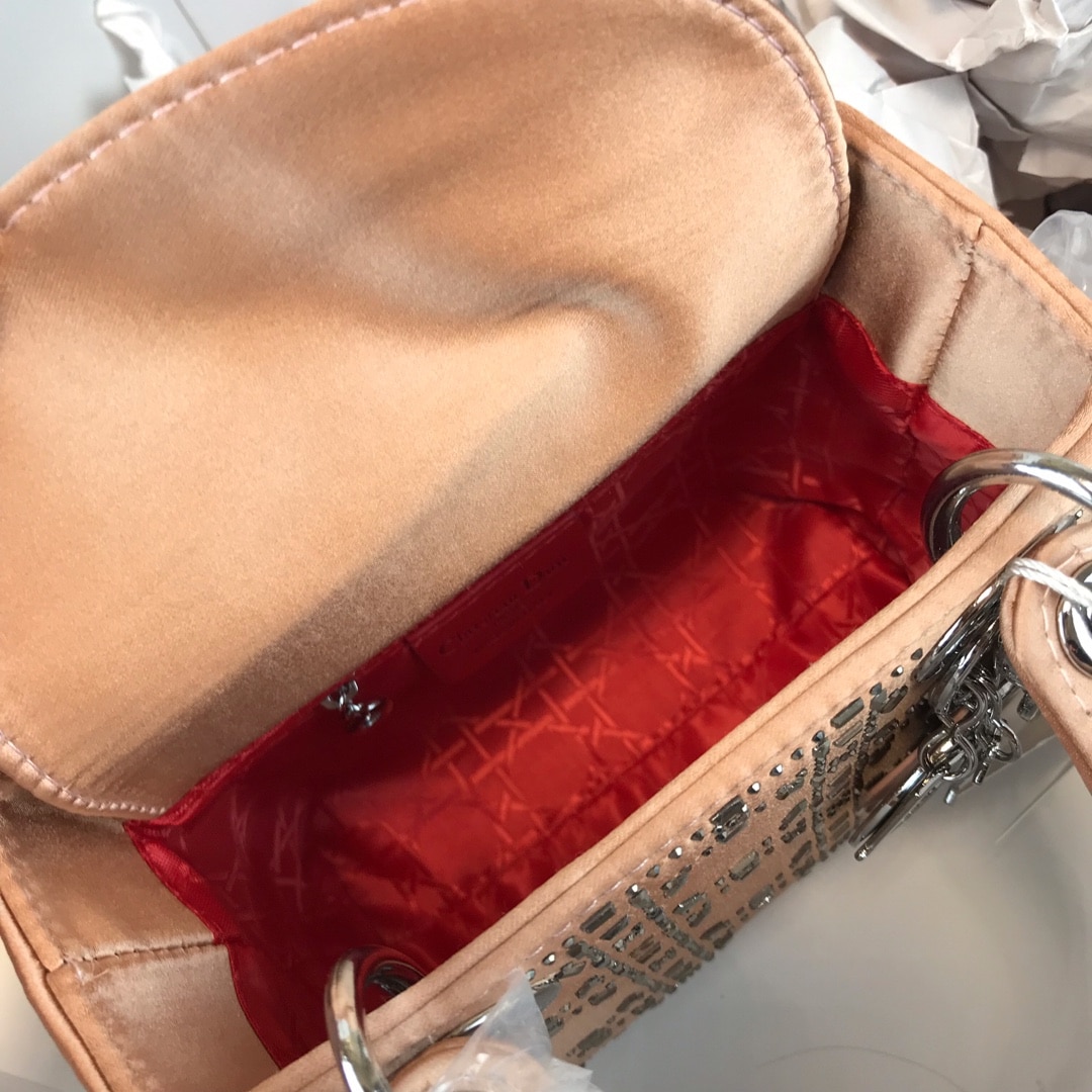 DIOR MINI LADY BAG STRASS CANNAGE SATIN BEIGE SIZE 17CM