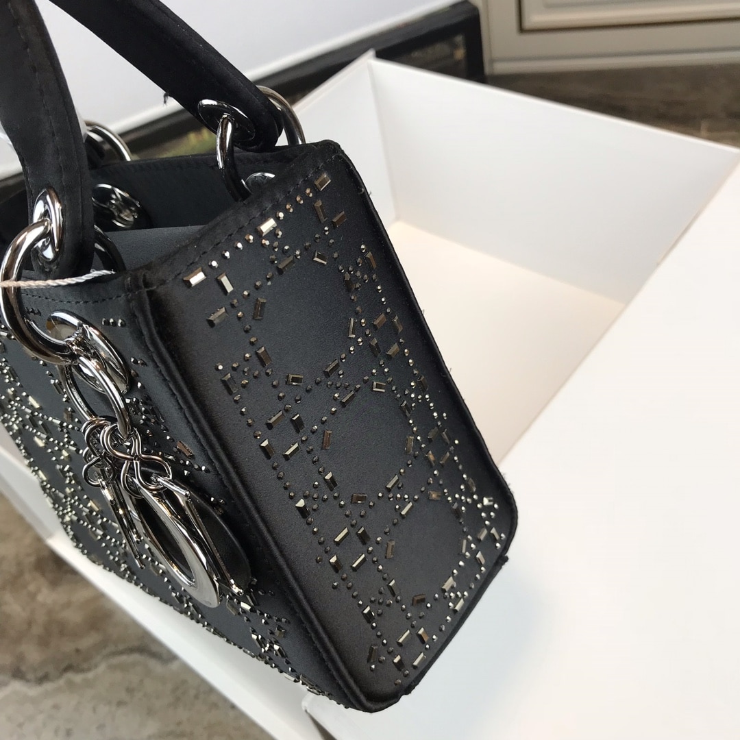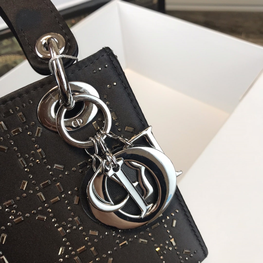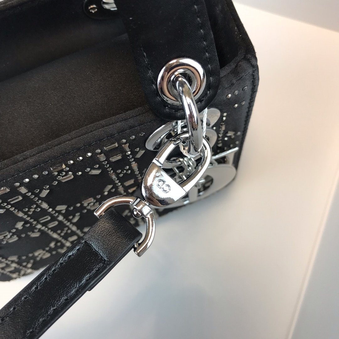DIOR MINI LADY BAG STRASS CANNAGE SATIN BLACK / 17CM M0500PRTC_M911