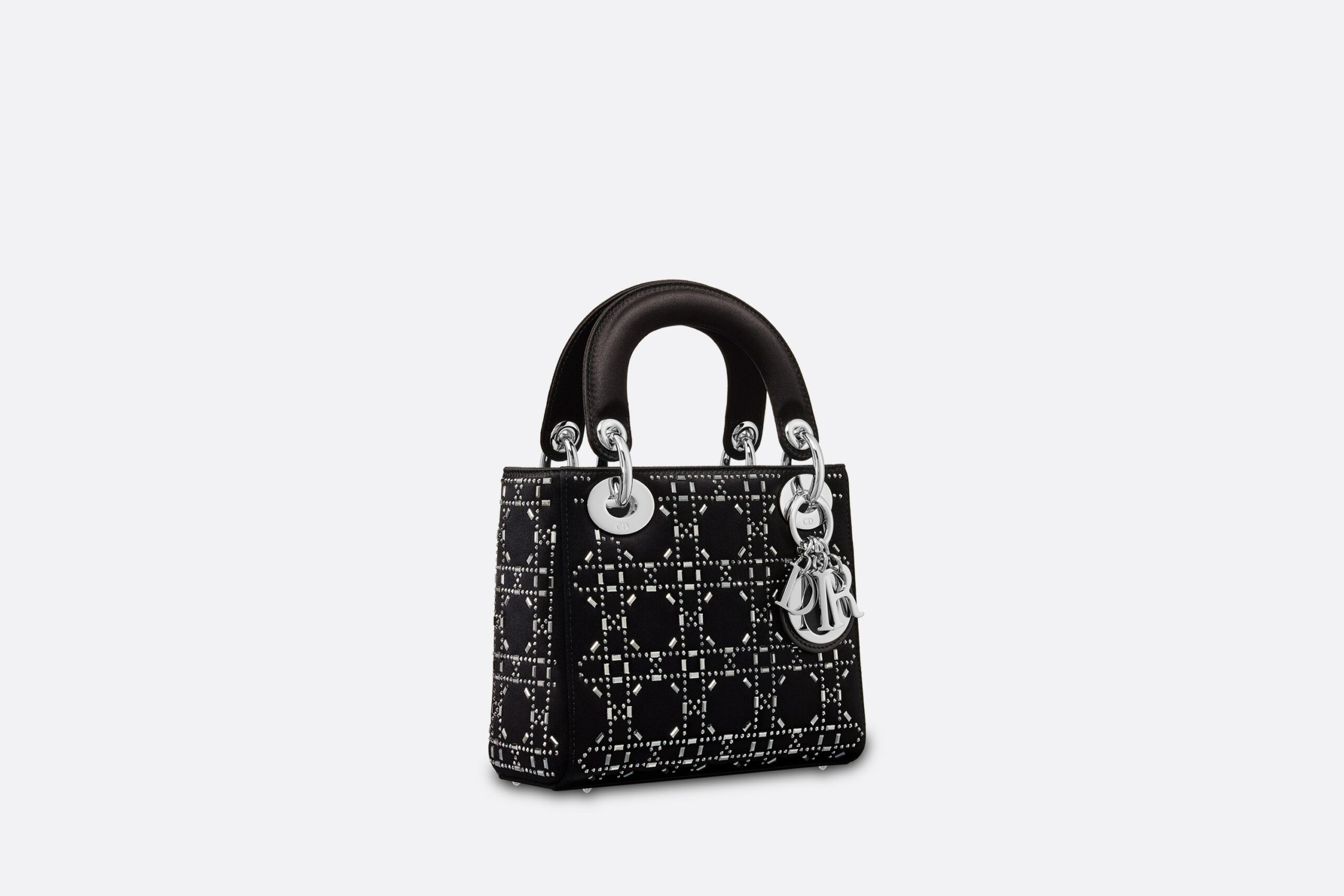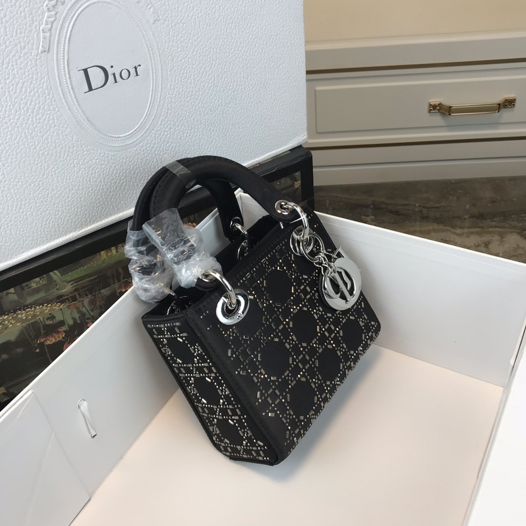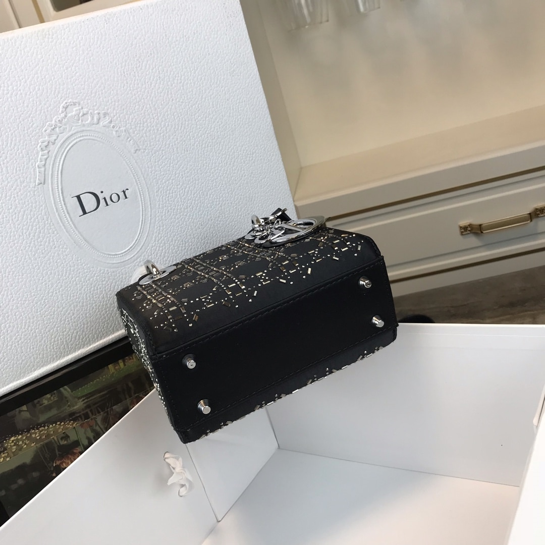 DIOR MINI LADY BAG STRASS CANNAGE SATIN BLACK / 17CM M0500PRTC_M911