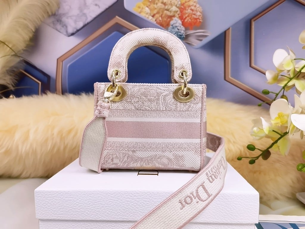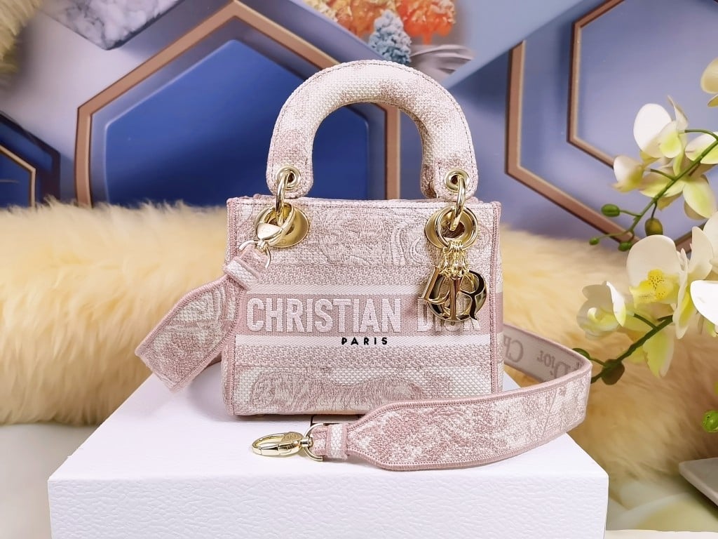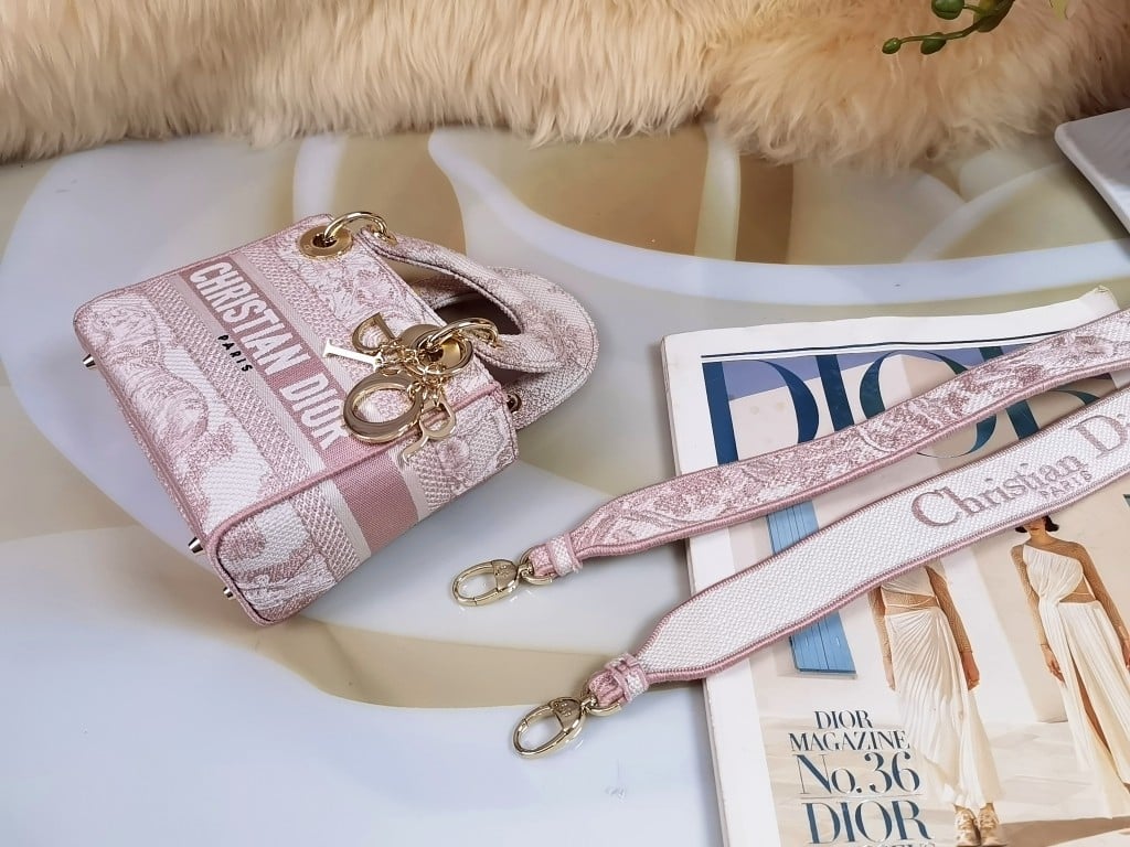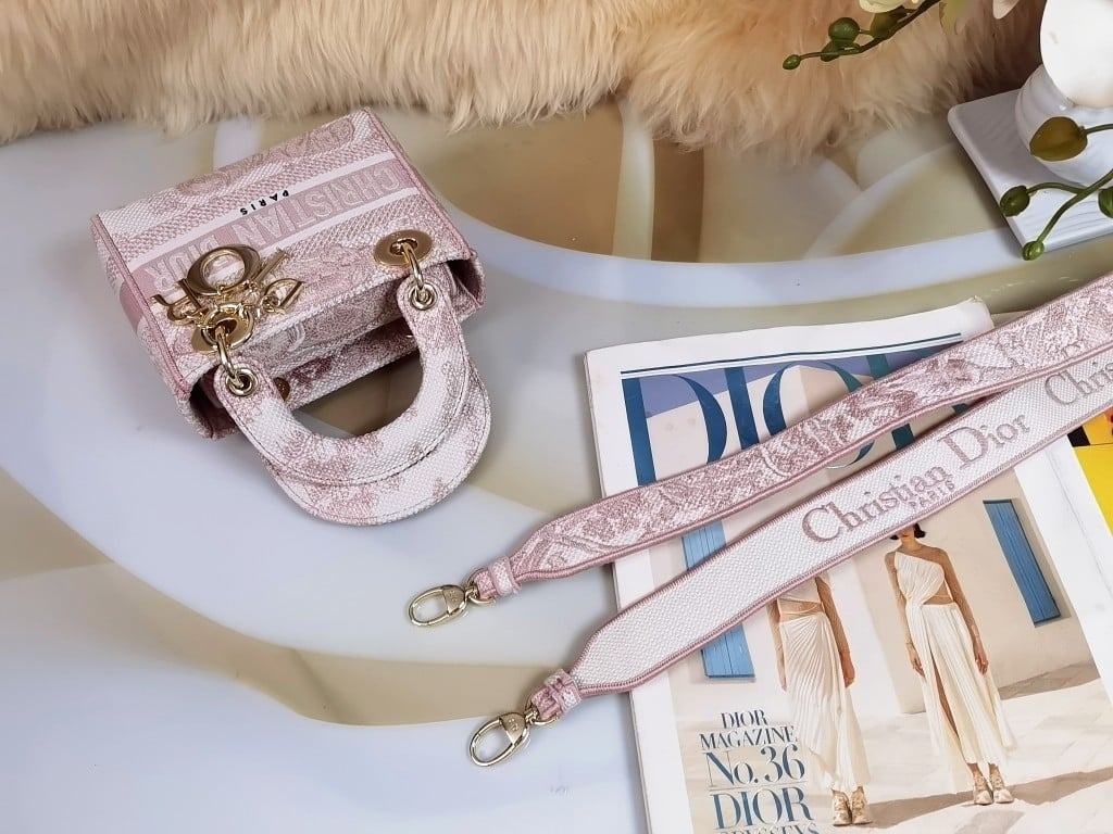 DIOR MINI LADY D-LITE BAG TOILE DE JOUY EMBROIDERY PINK / 17CM M0565OTDT