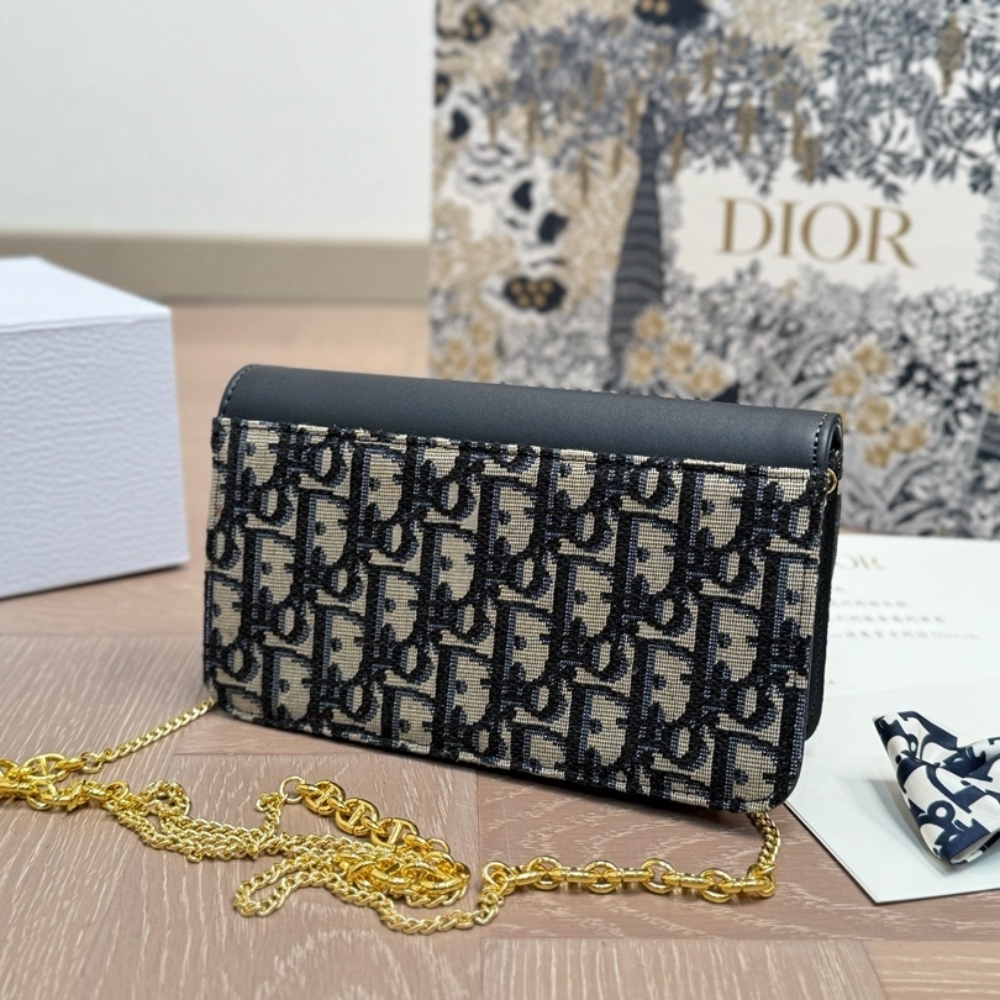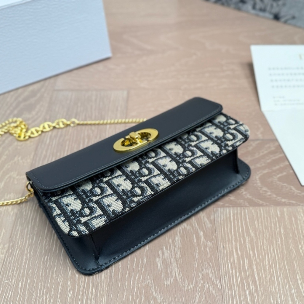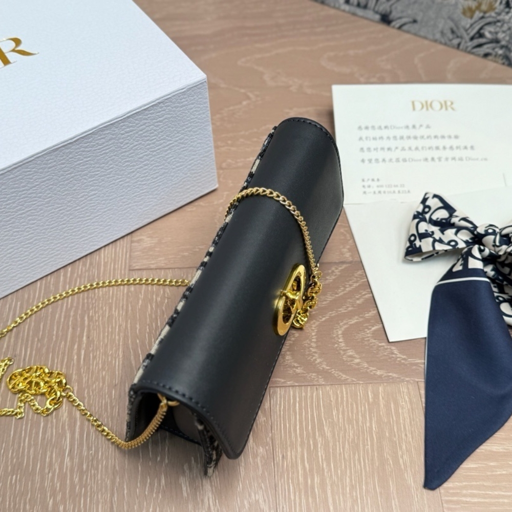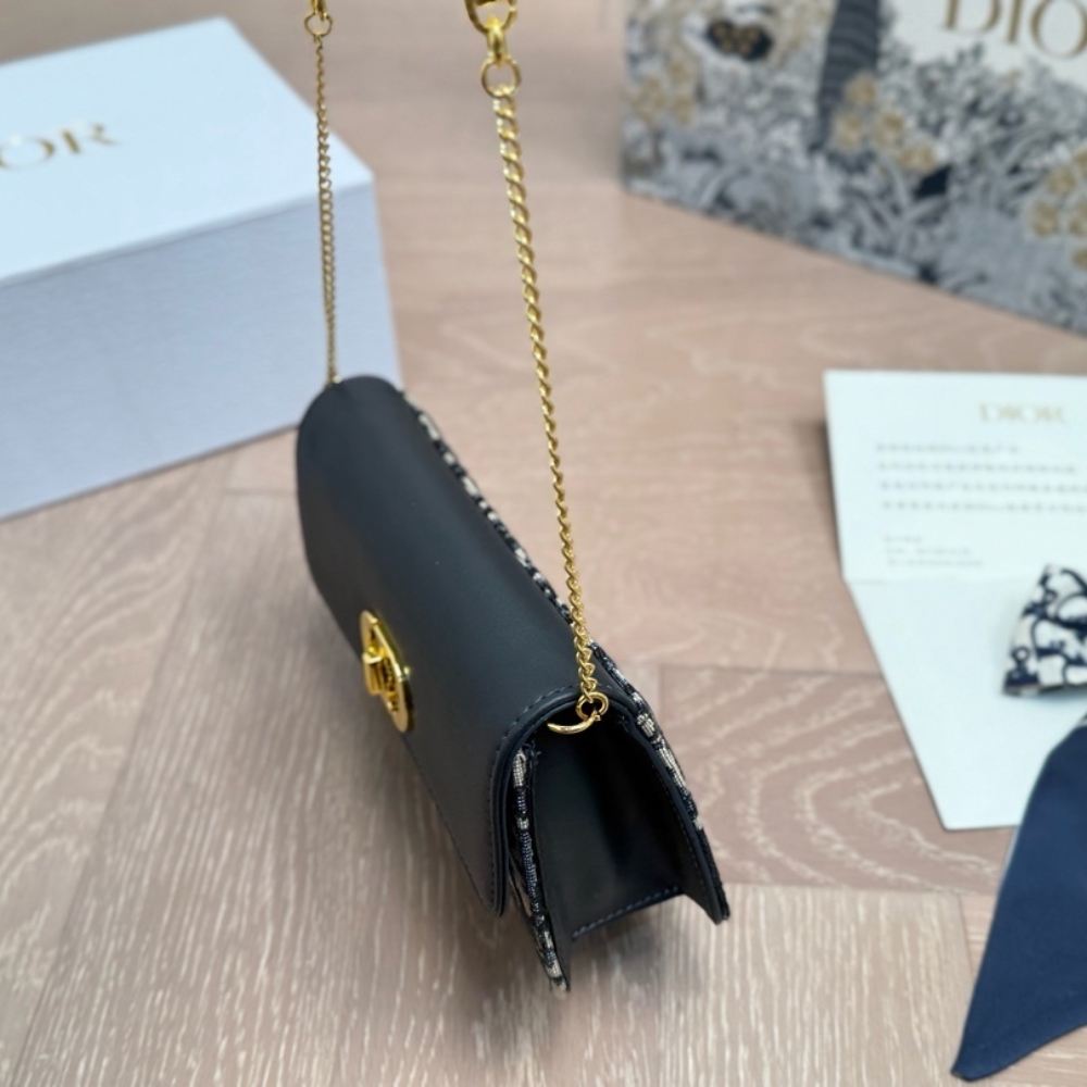 Dior Miss Caro Pouch With Chain In Black Leather / 7.5 x 4.3 inches / Gold Tone Metal / Chic Style / Daily Bags