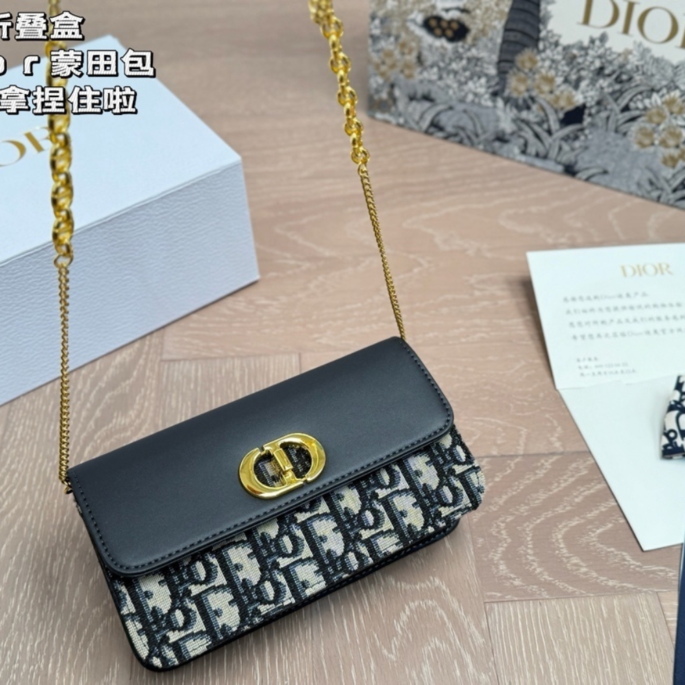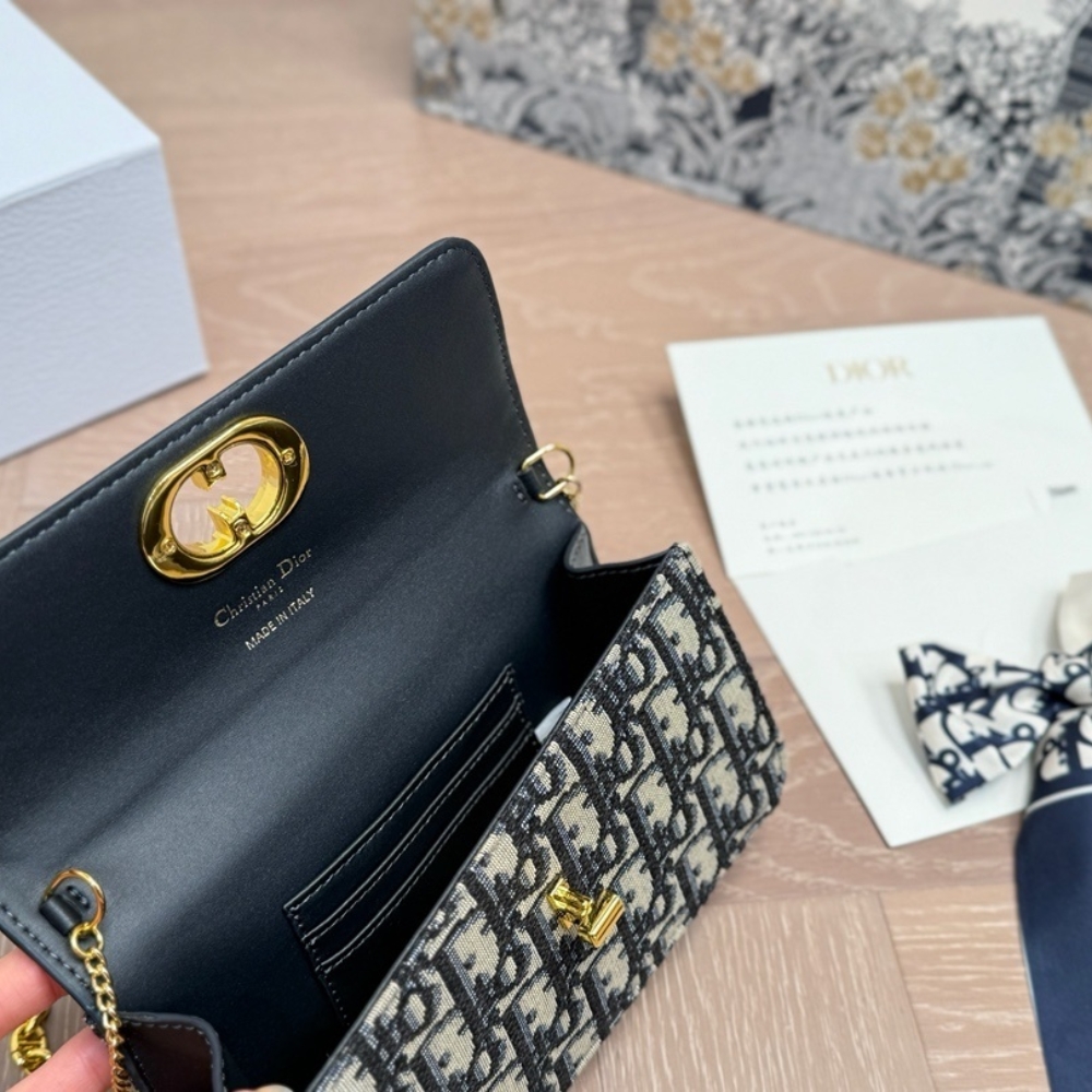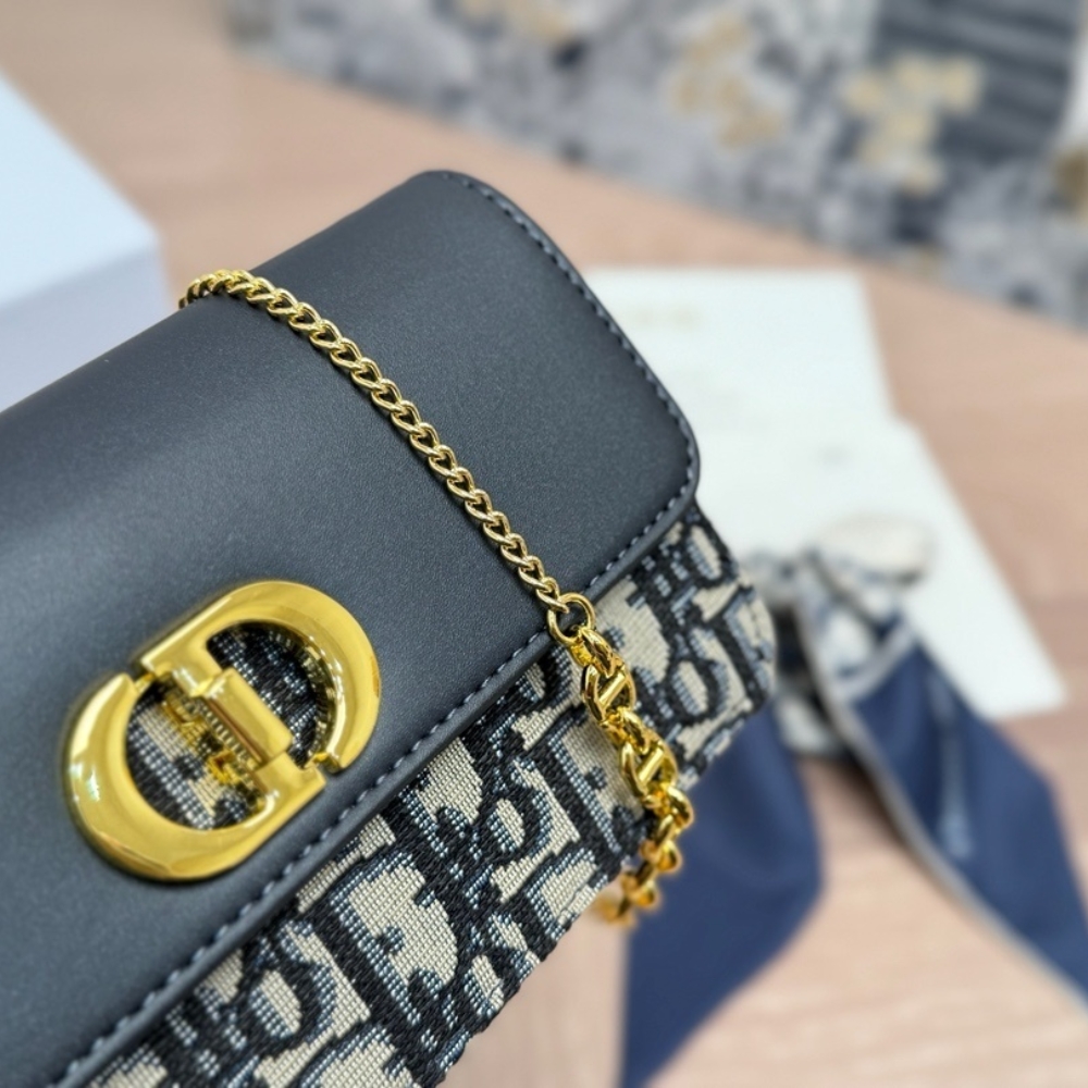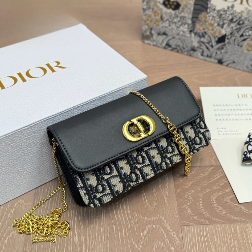 Dior Miss Caro Pouch With Chain In Black Leather / 7.5 x 4.3 inches / Gold Tone Metal / Chic Style / Daily Bags