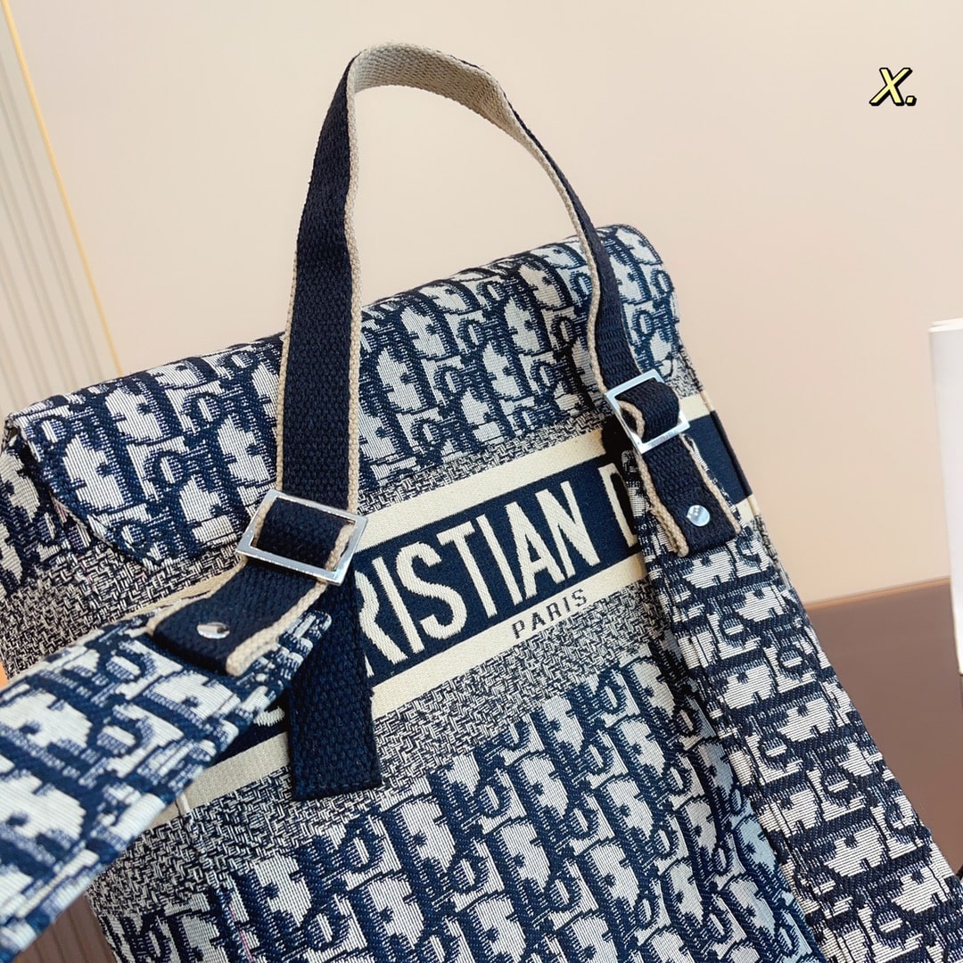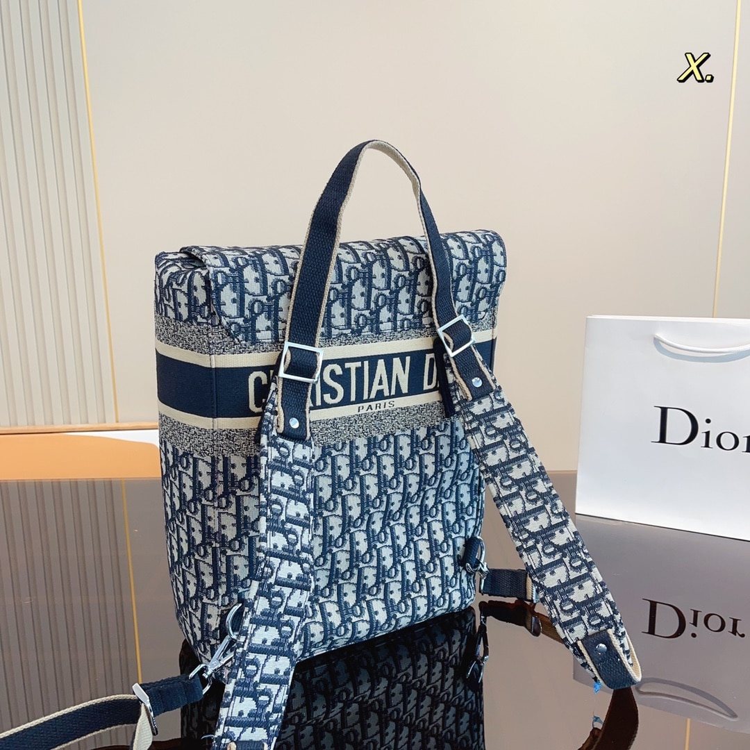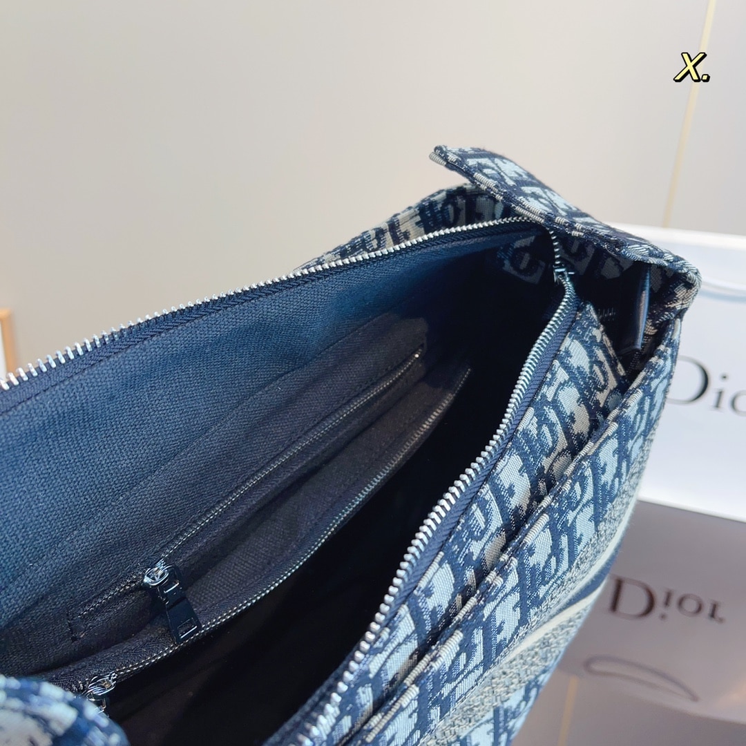 DIOR OBLIQUE EMBROIDERED CANVAS BLUE SIZE 37CM