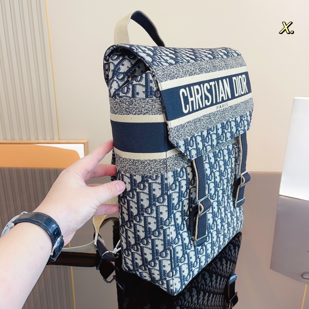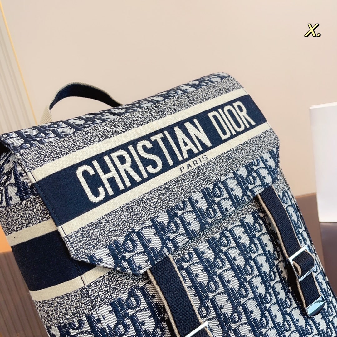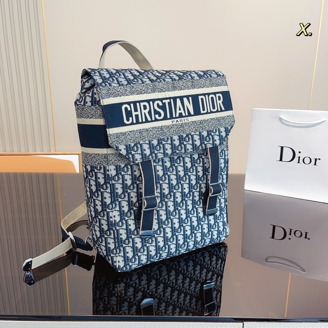 DIOR OBLIQUE EMBROIDERED CANVAS BLUE SIZE 37CM