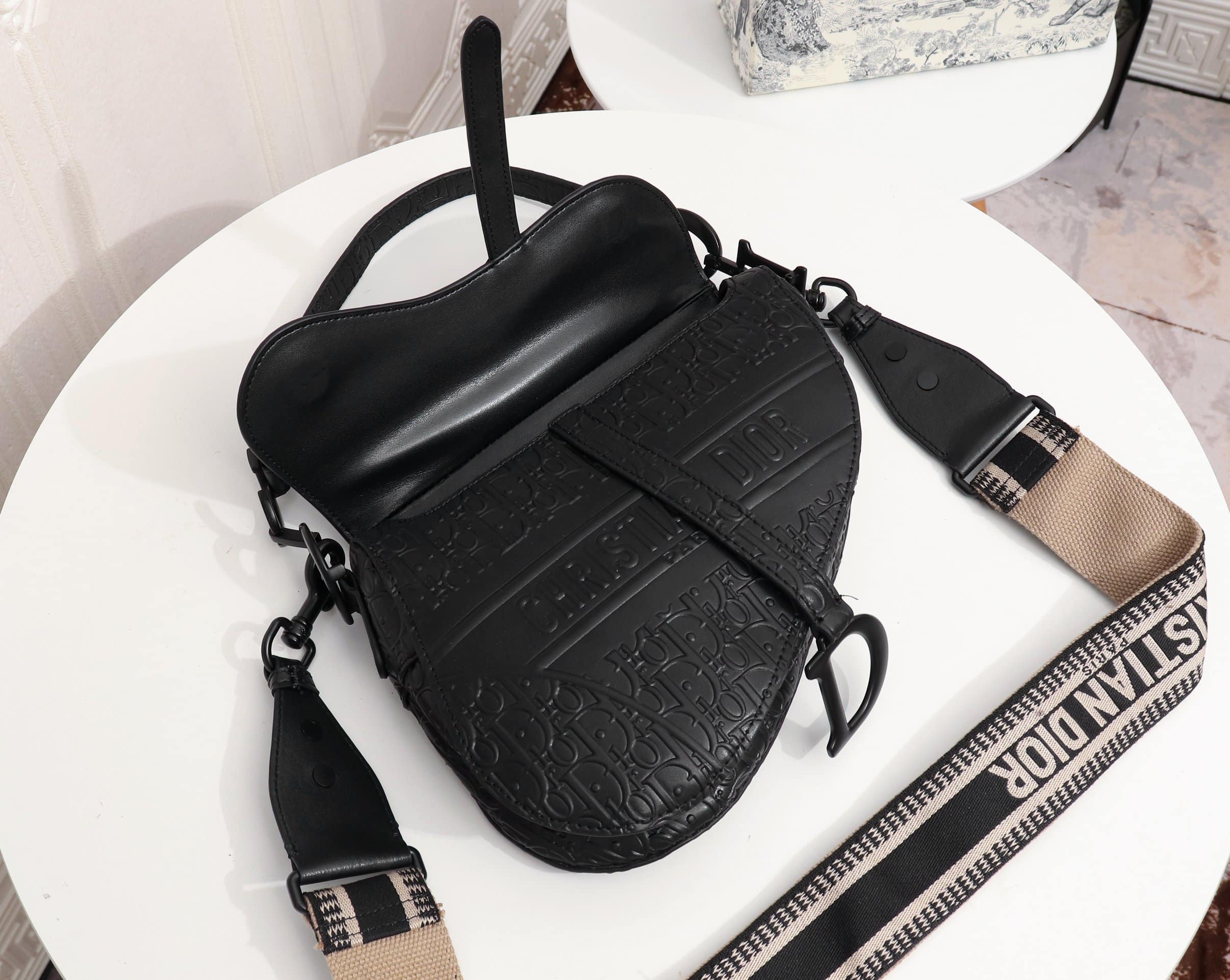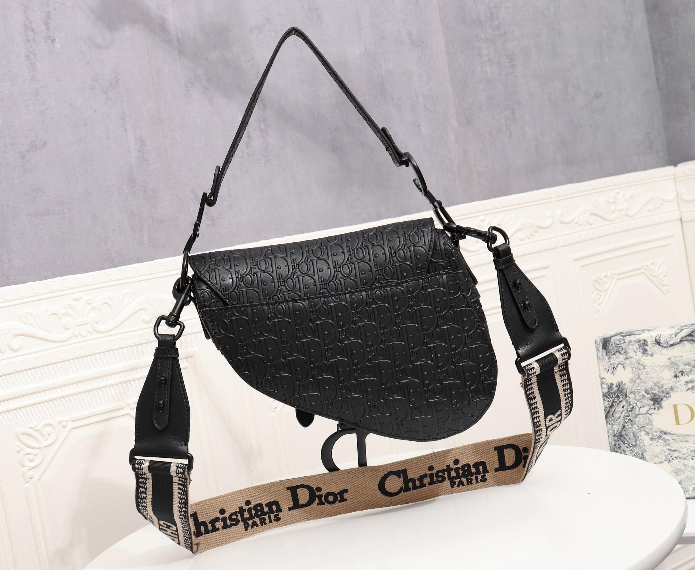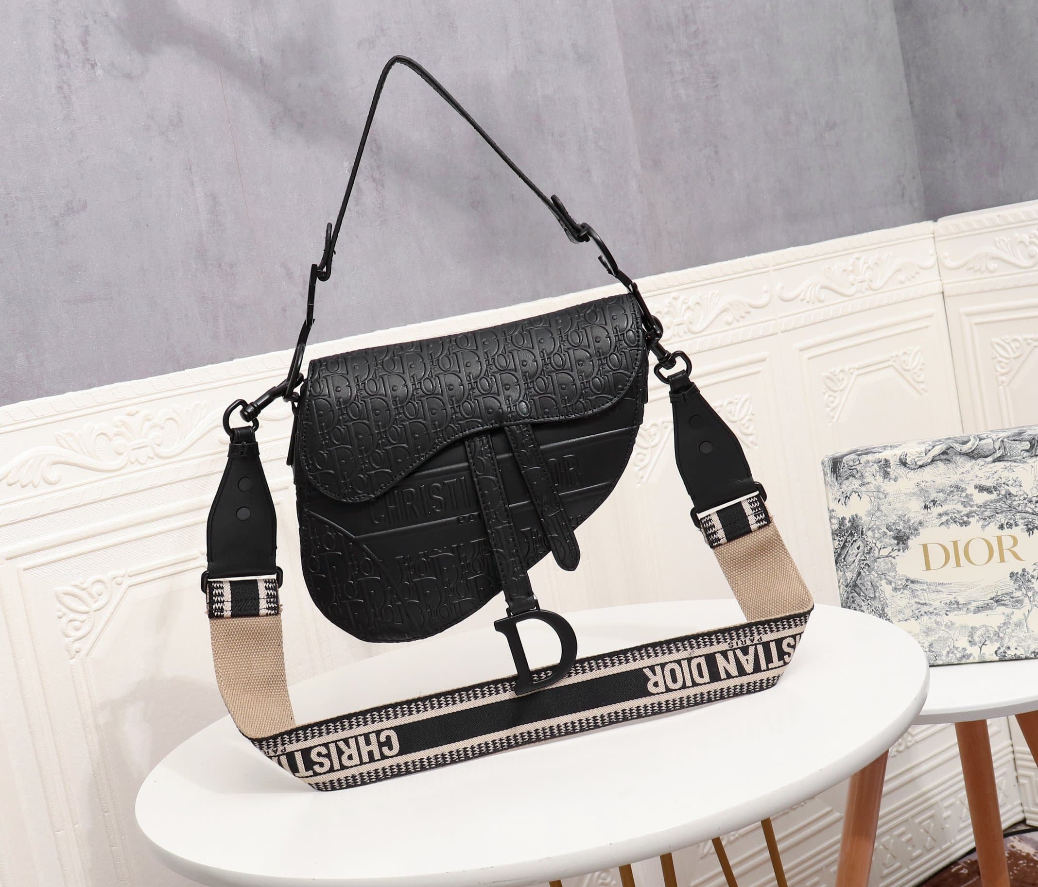 Dior Saddle Bag Black Oblique Embossed 25cm 1ADPO093YKY