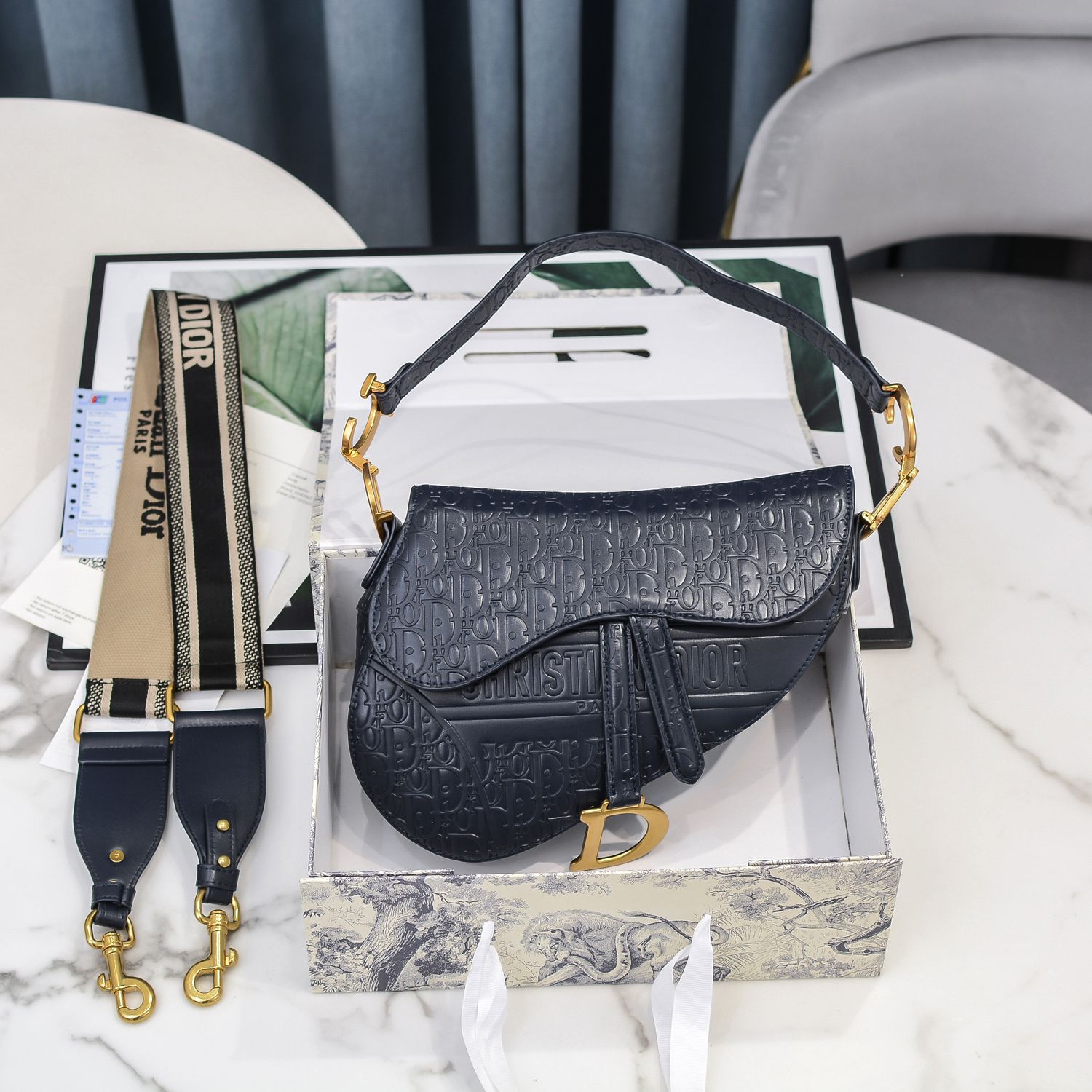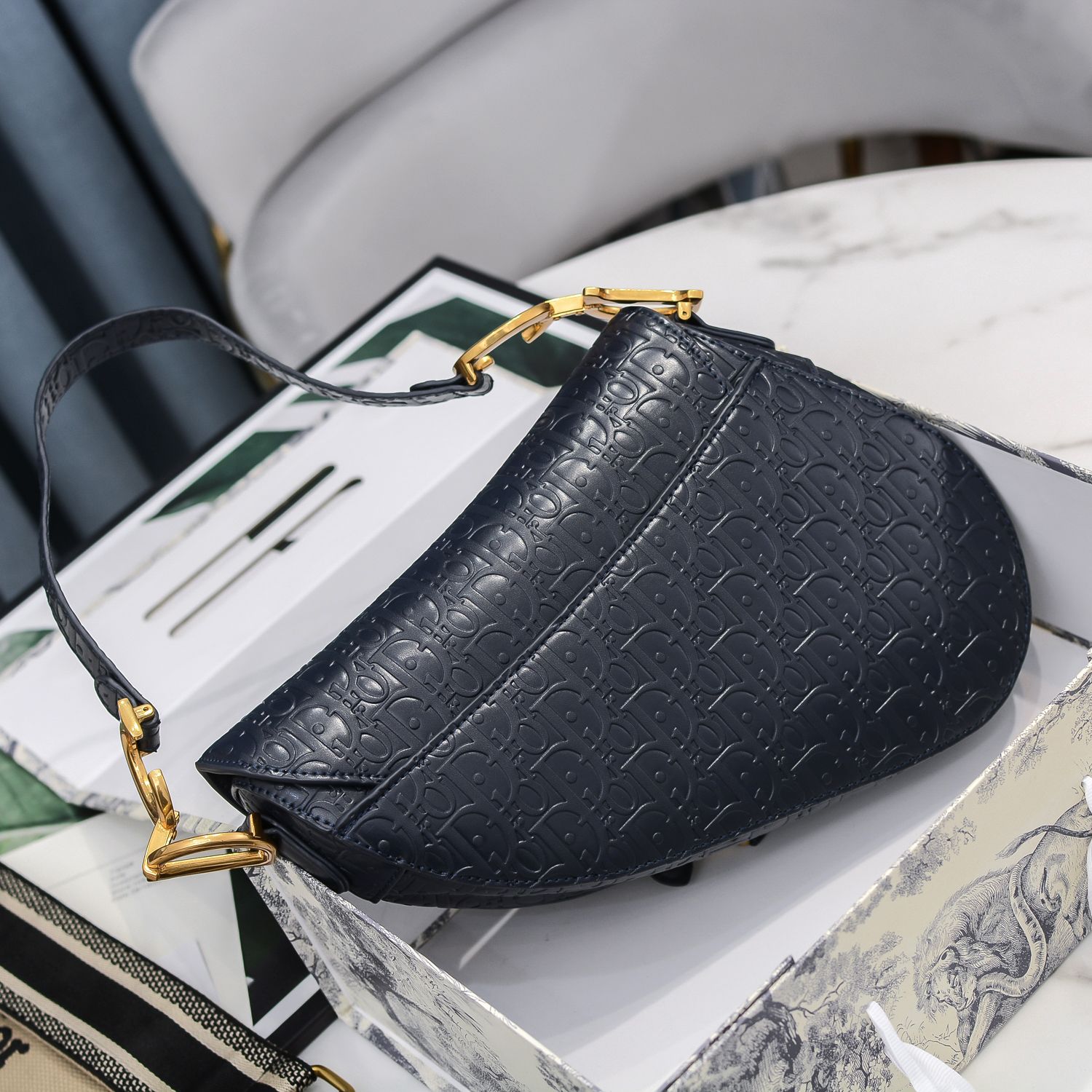 DIOR SADDLE OBLIQUE EMBOSSED BLUE AND GOLD
