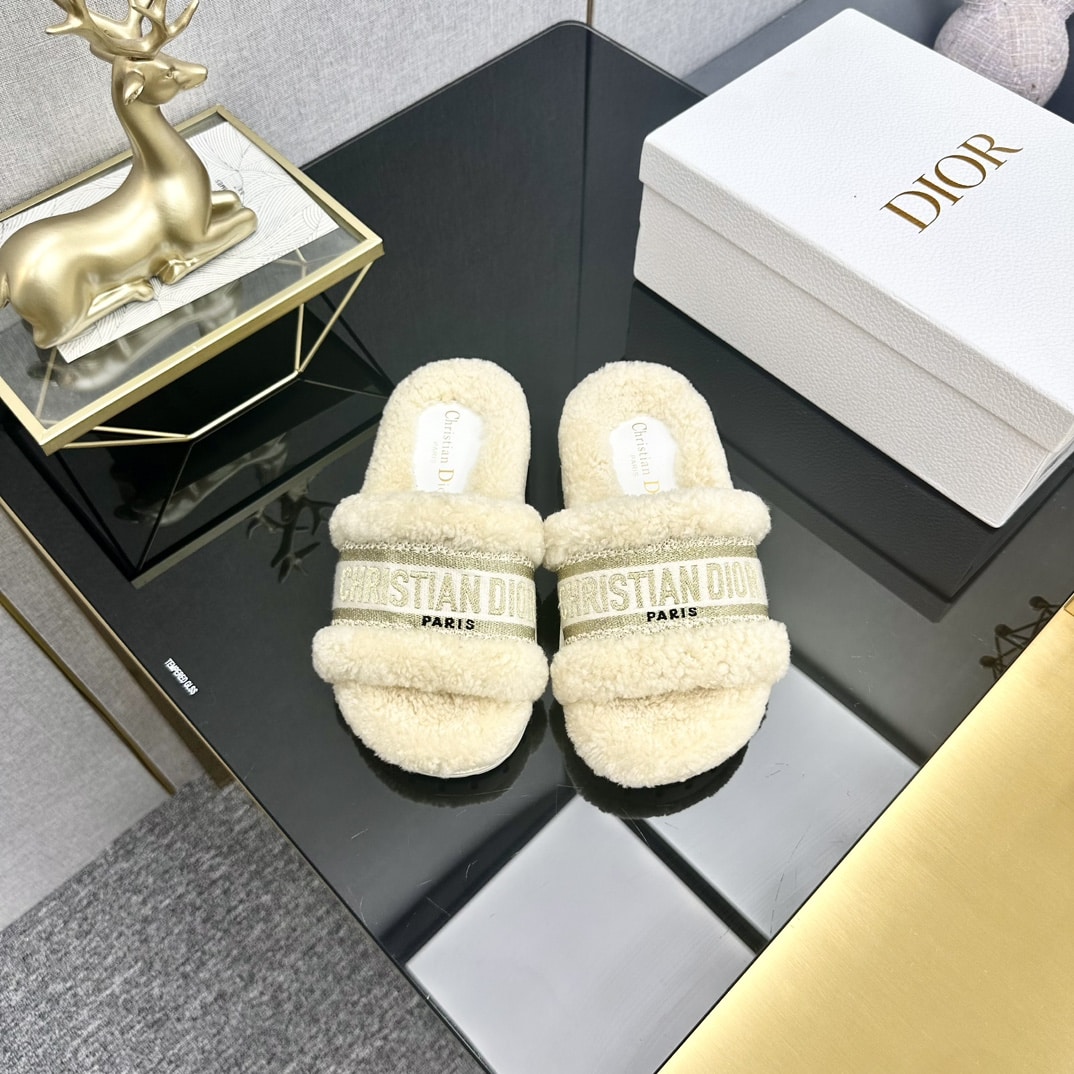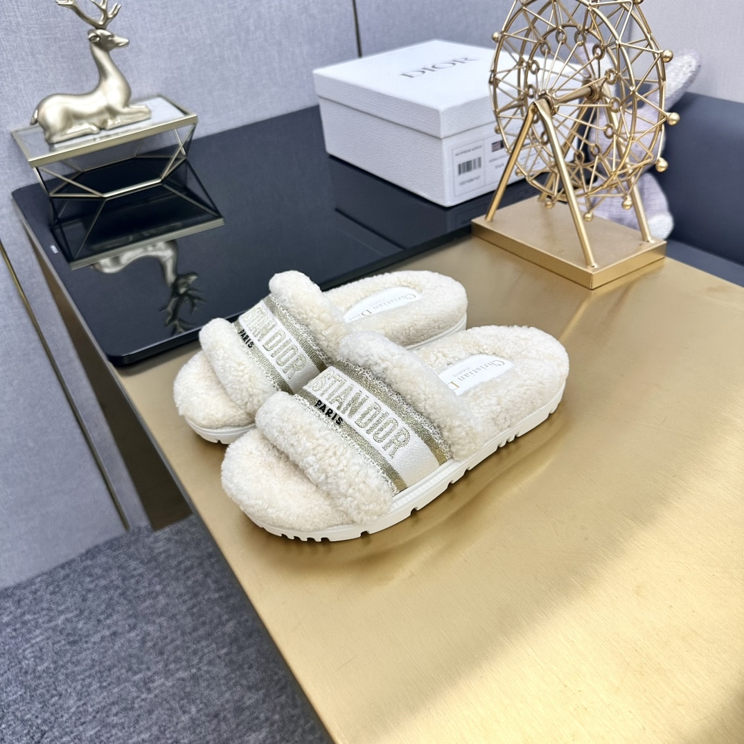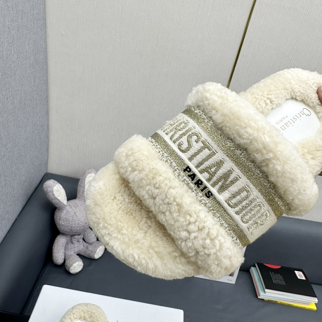 DIOR SHEARLING SLIDE NATURAL PLATINUM