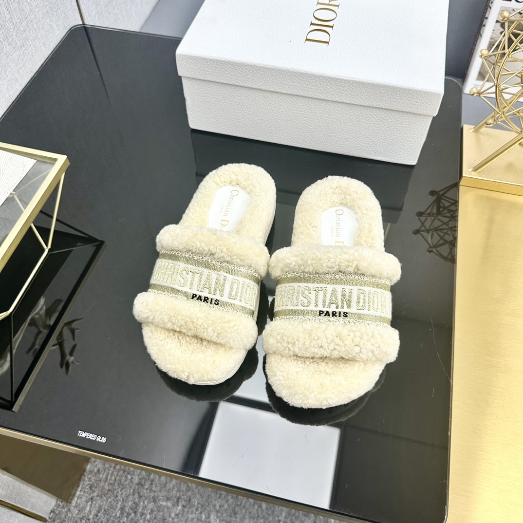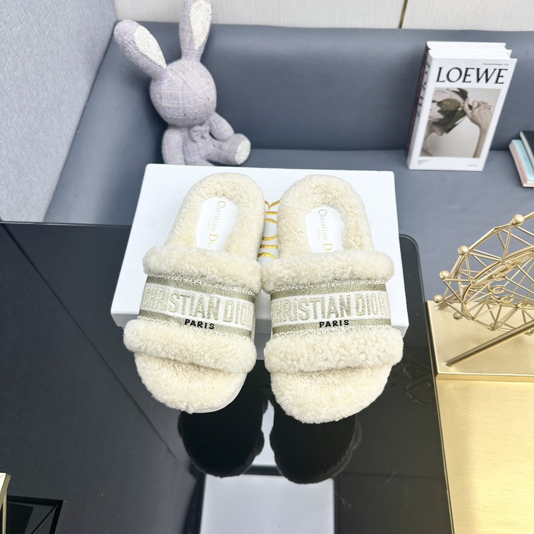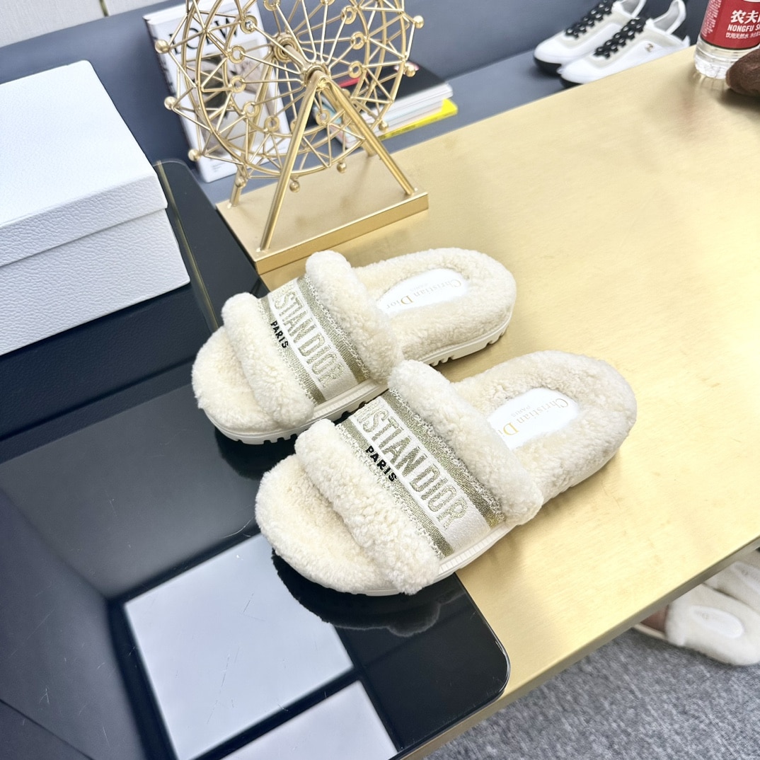 DIOR SHEARLING SLIDE NATURAL PLATINUM