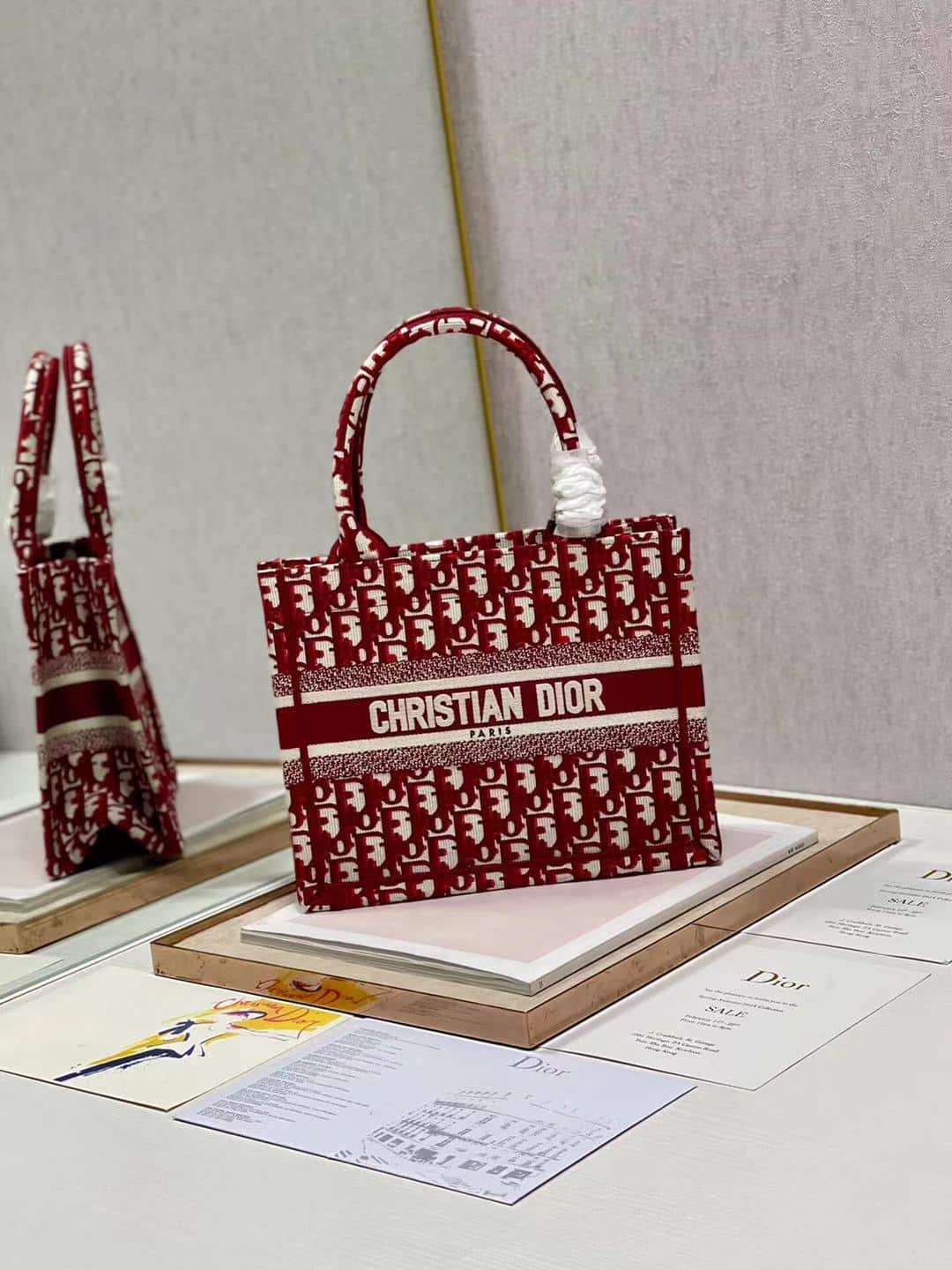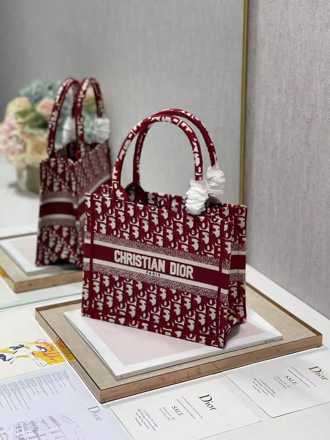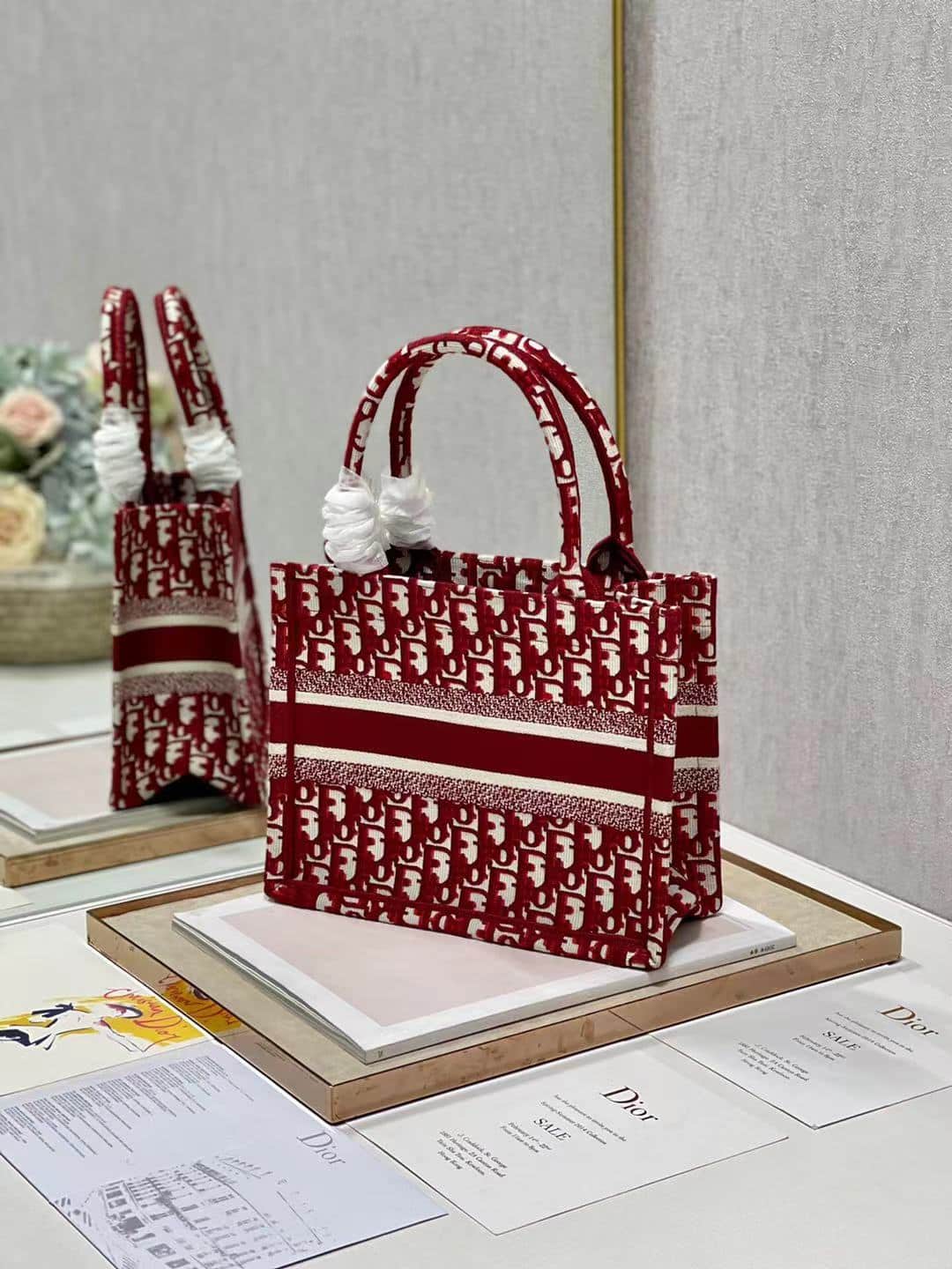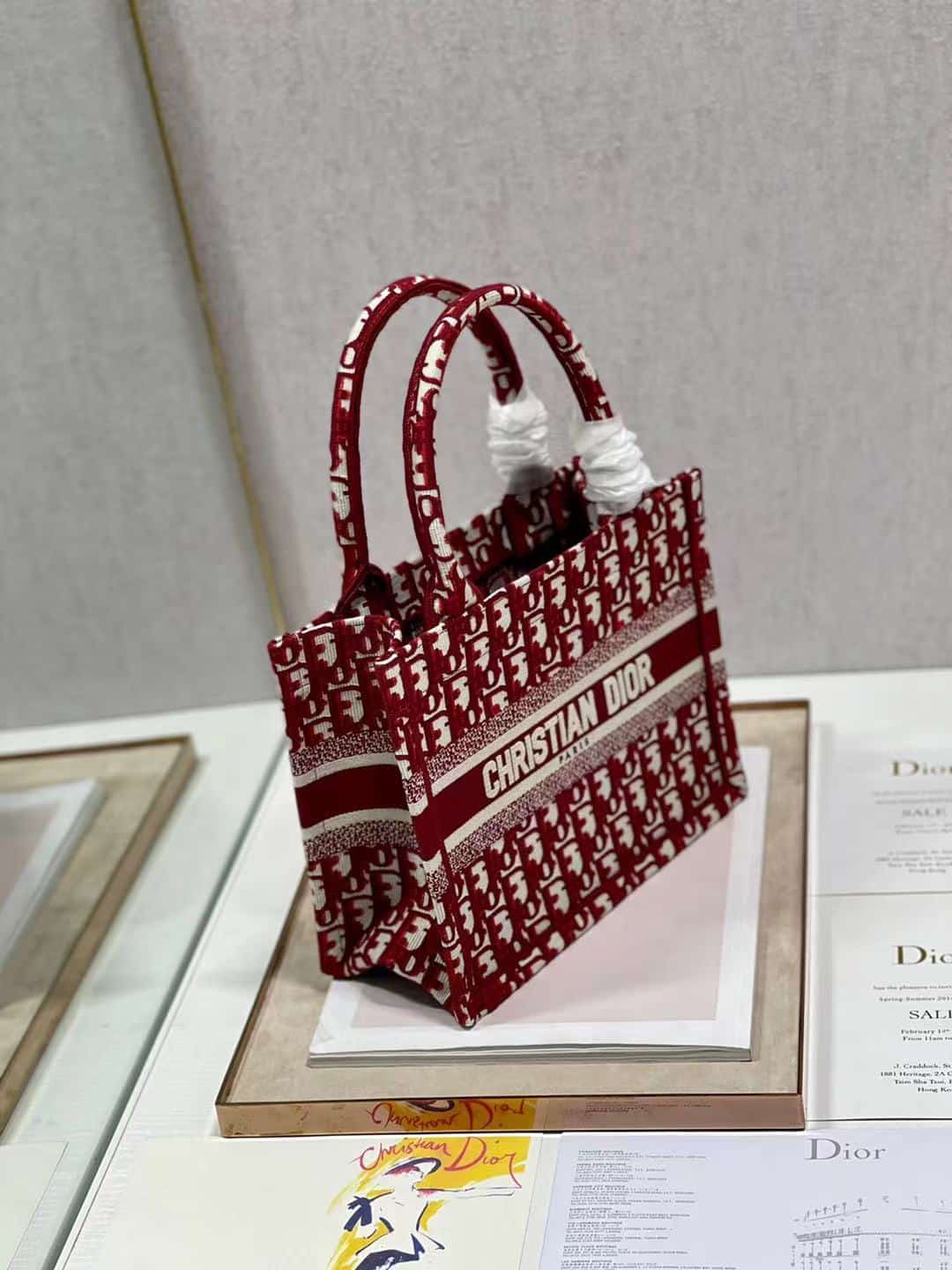 Dior Small Book Tote Burgundy Oblique Jacquard Canvas/ 26cm M1265ZRIW_M17E