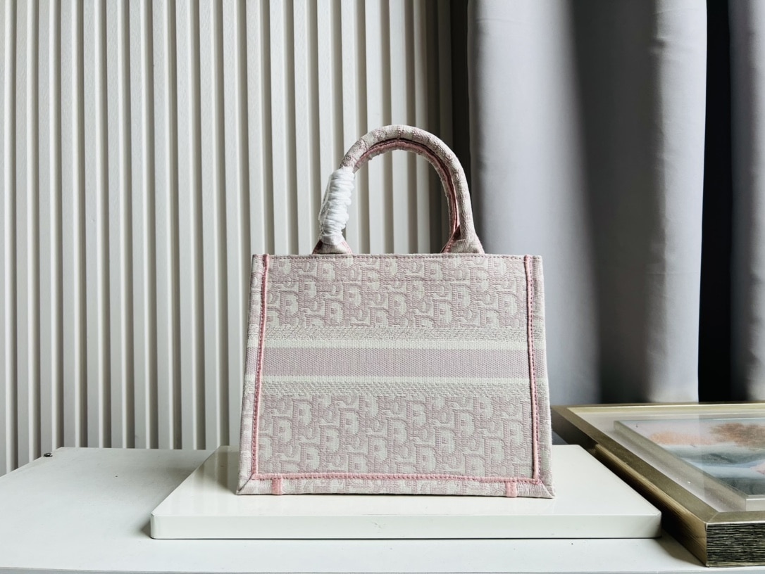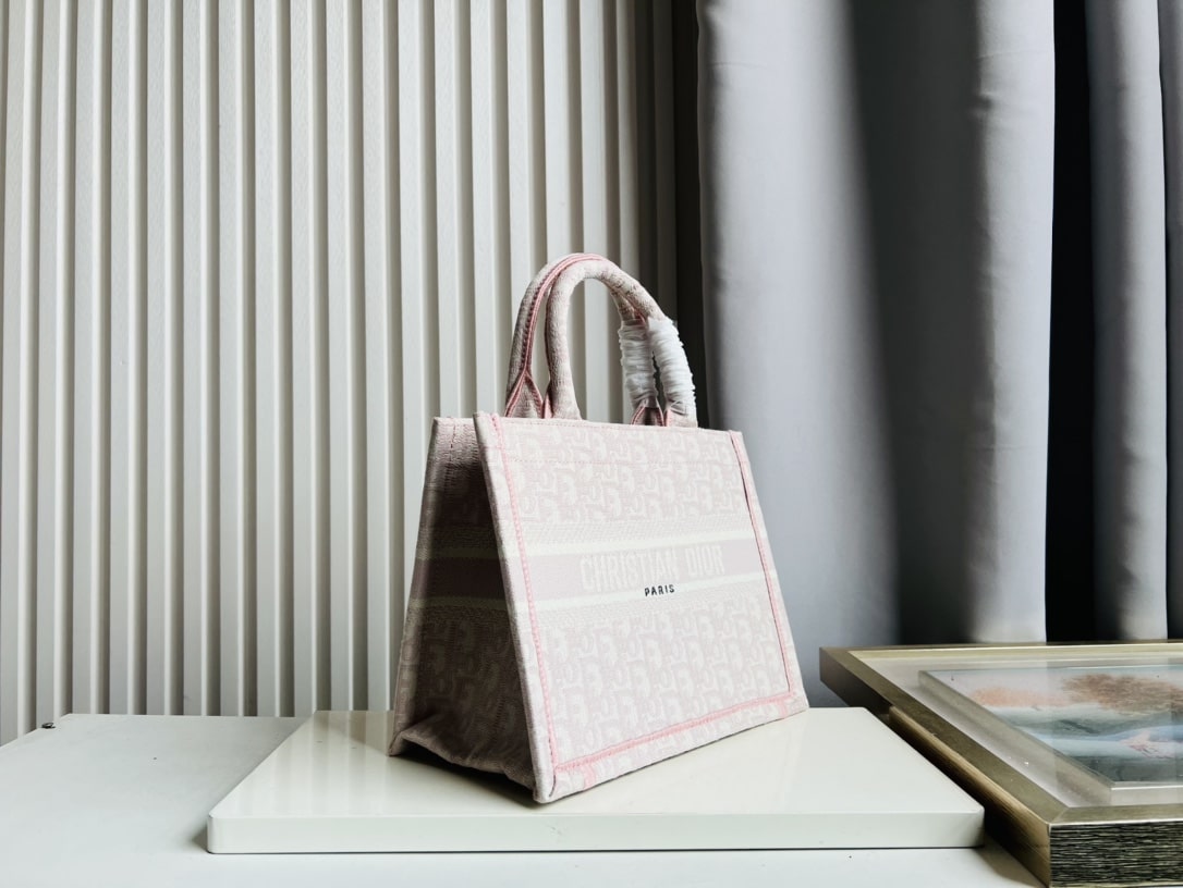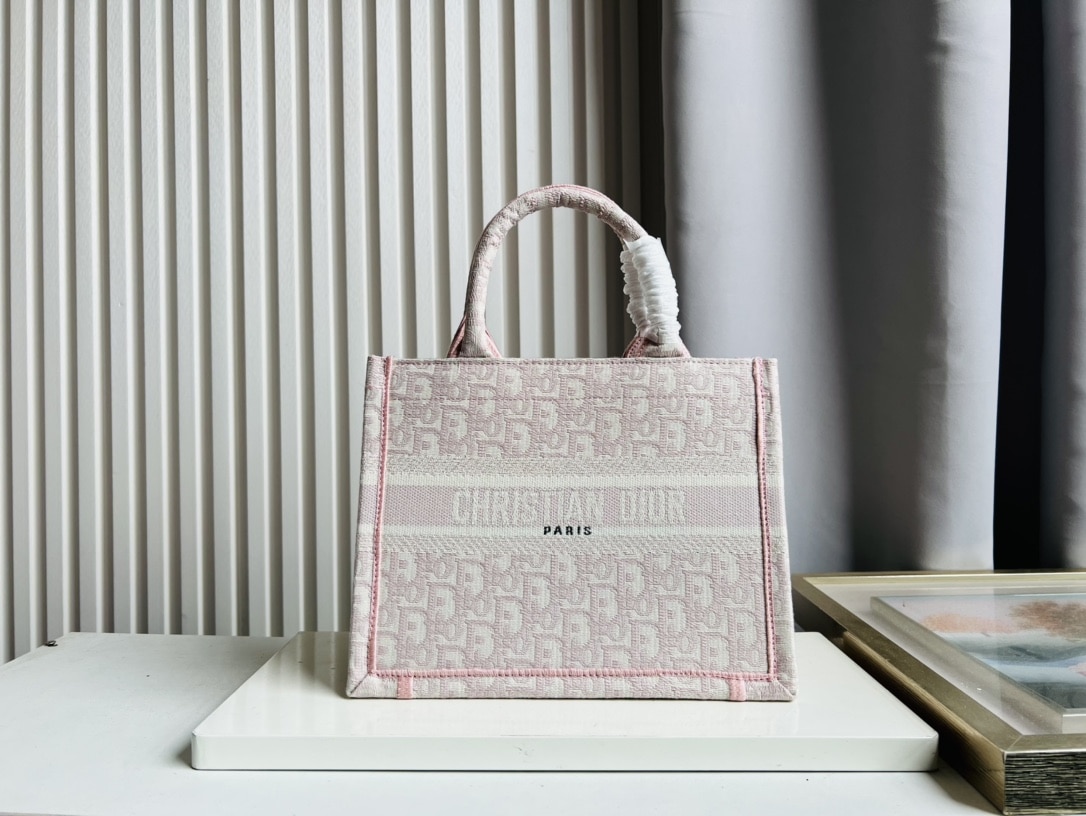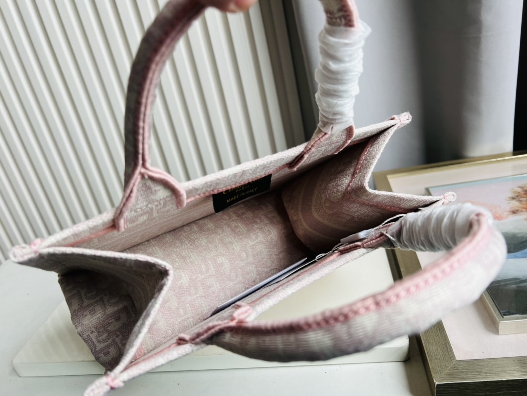 DIOR SMALL BOOK TOTE OBLIQUE EMBROIDERY LIGHT PINK 26CM