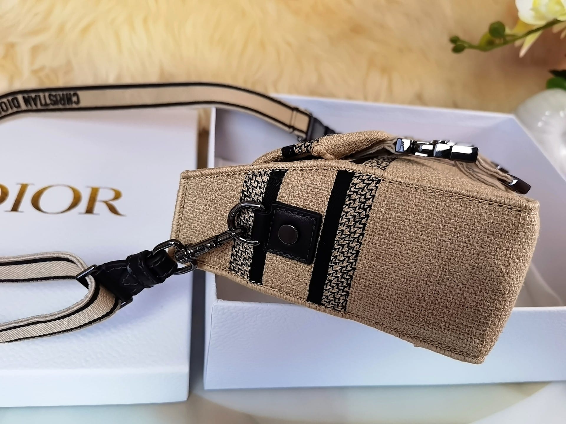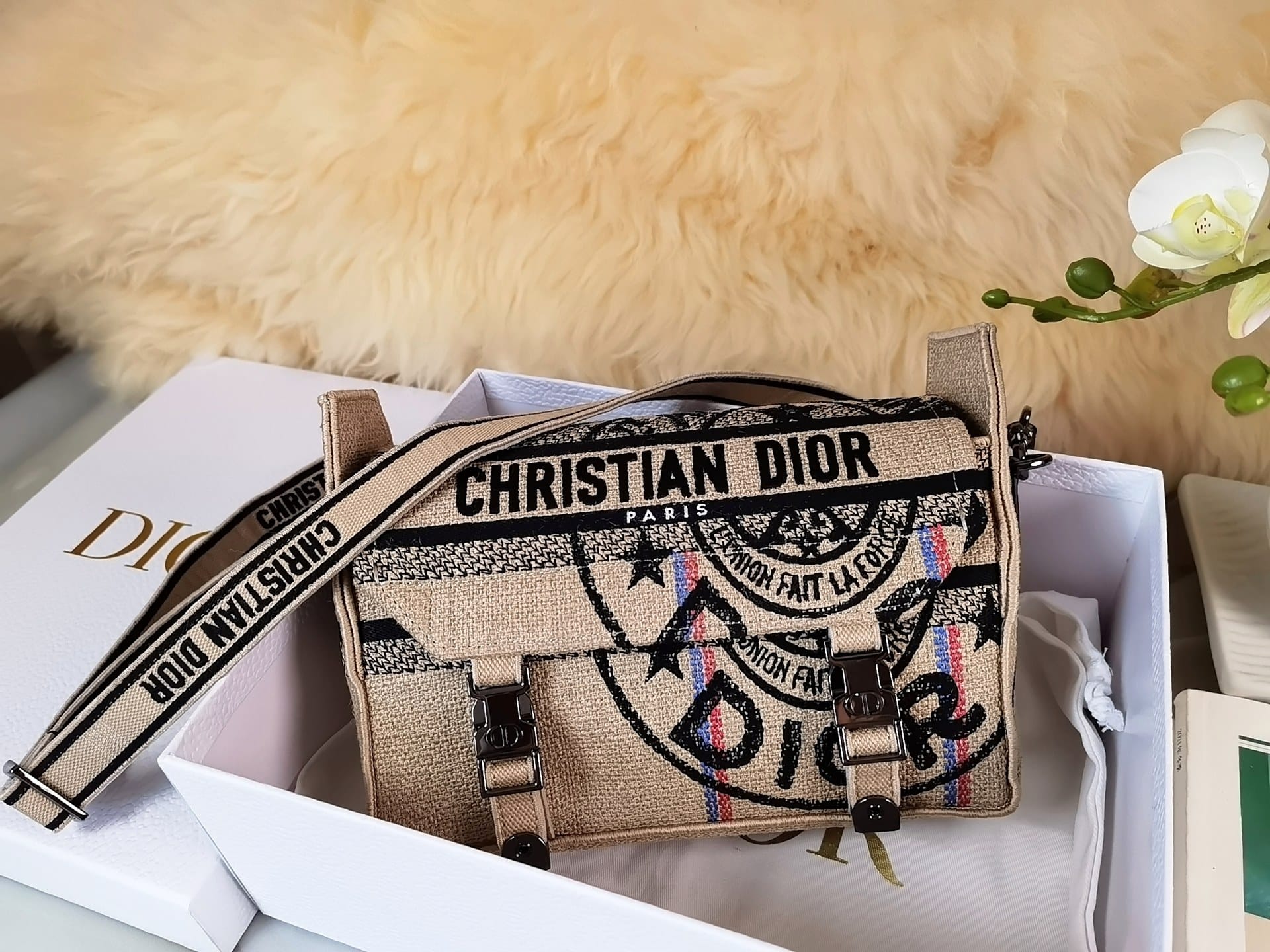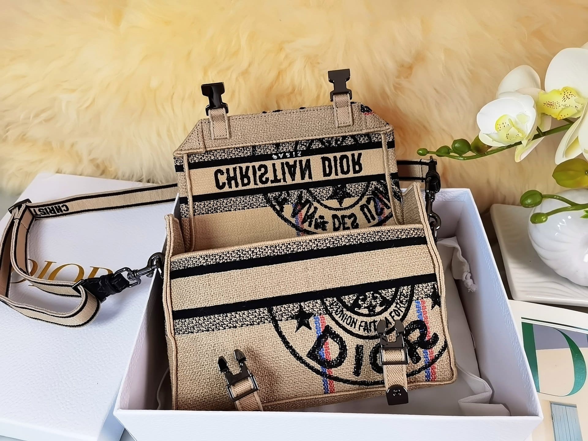 Dior Small camp beige Jute Canvas Embroidered with Dior Union Motif M1241BRUW_M918 23CM