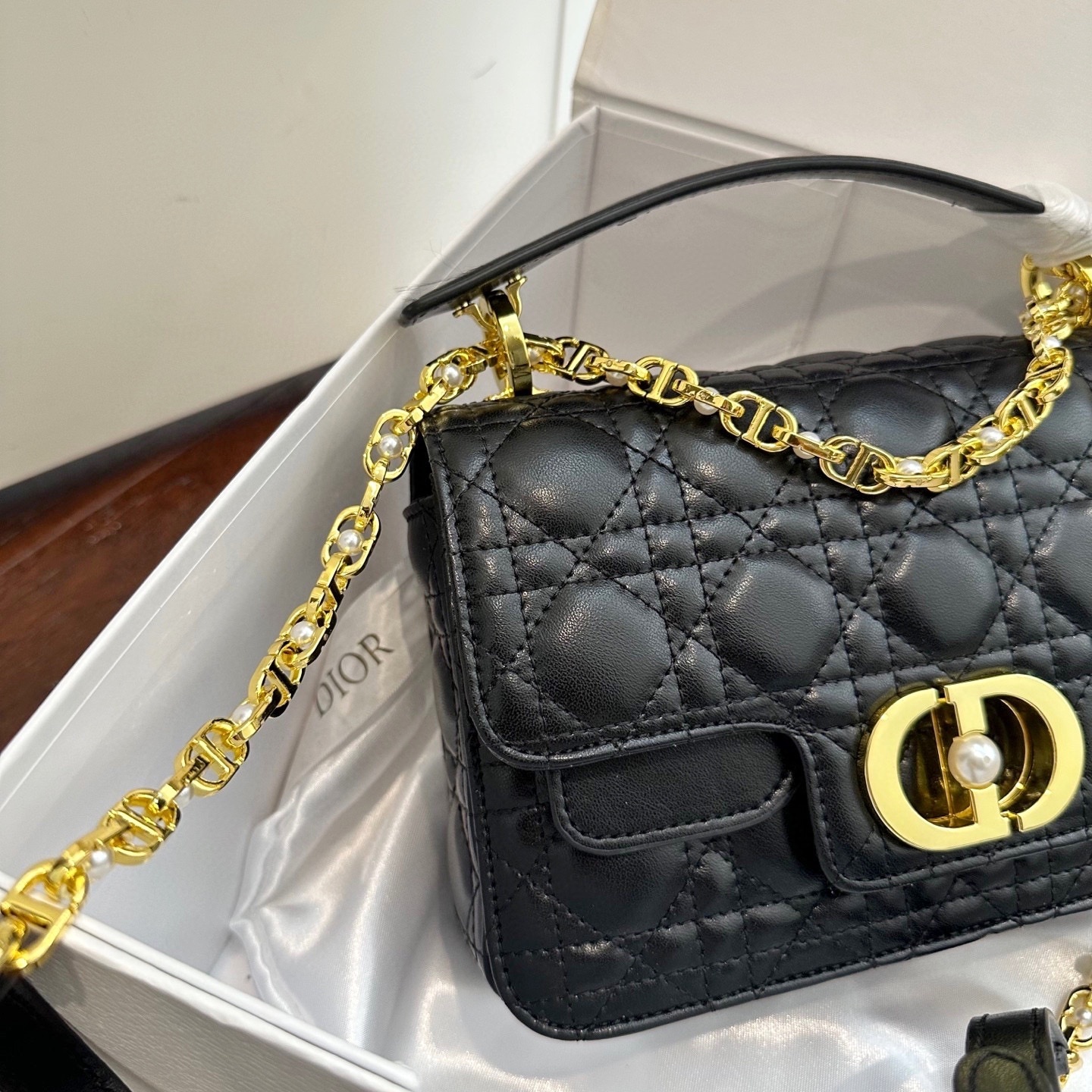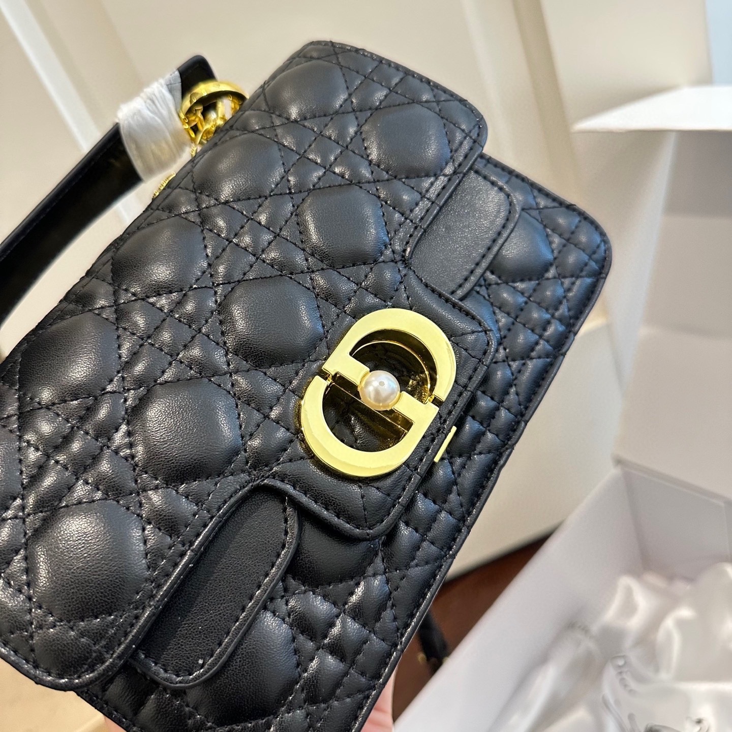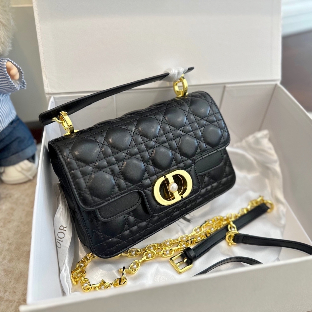 Dior Small Jolie Top Handle Bag Black / 8.7 x 5.5 inches / Gold Tone Metal / Chic Style / Daily Bags