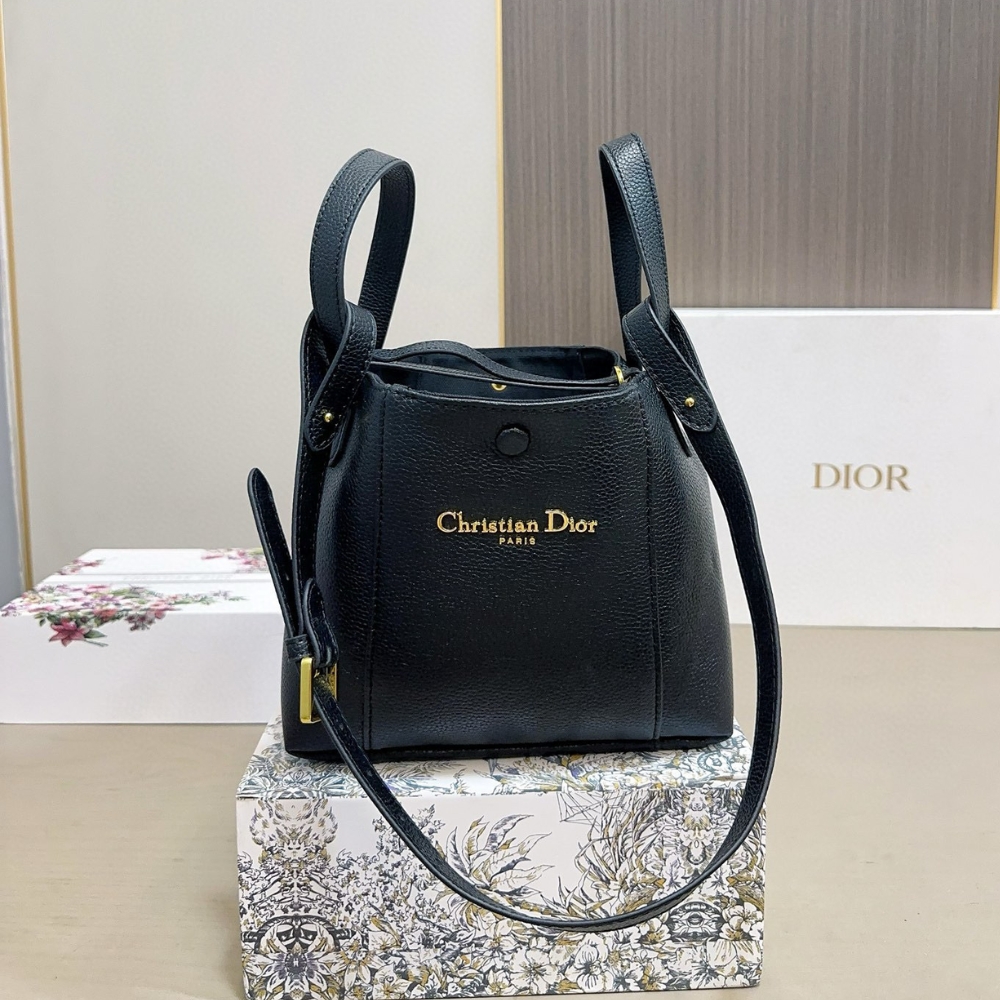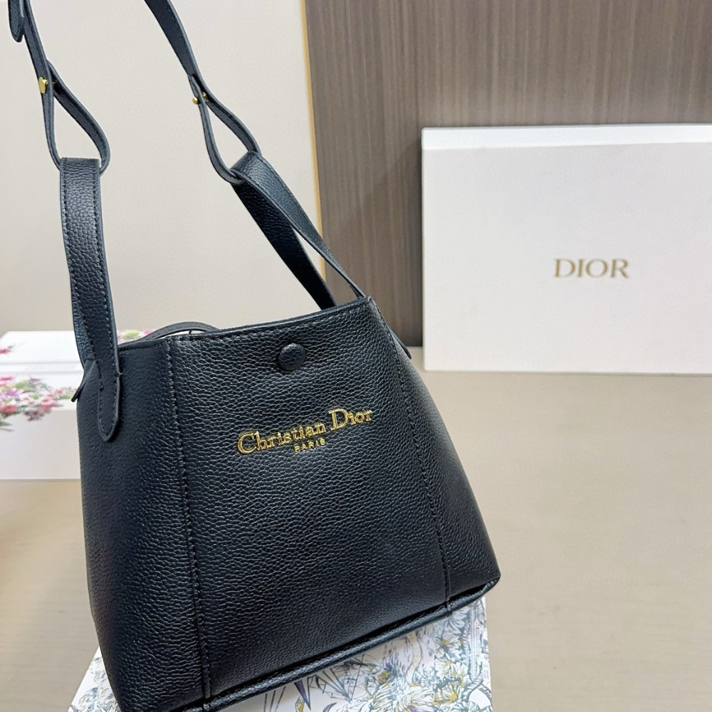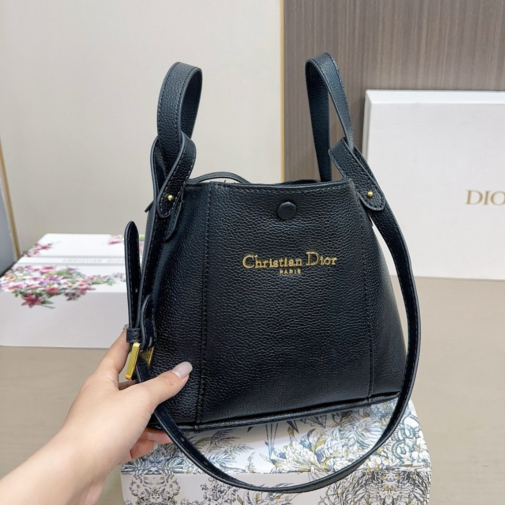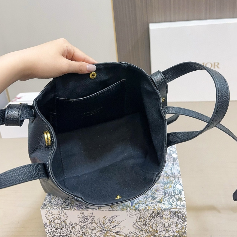 Dior Small Signature in Black / 7.9 x 7.5 inches / Bucket Bag / Gold Tone Metal / Chic Style / Daily Bags