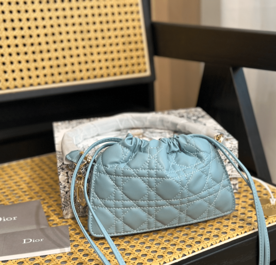 Dior Top Handle/19cm Drawstring Mini Bag Scarlet Blue Cannage S0981ONMJ M900