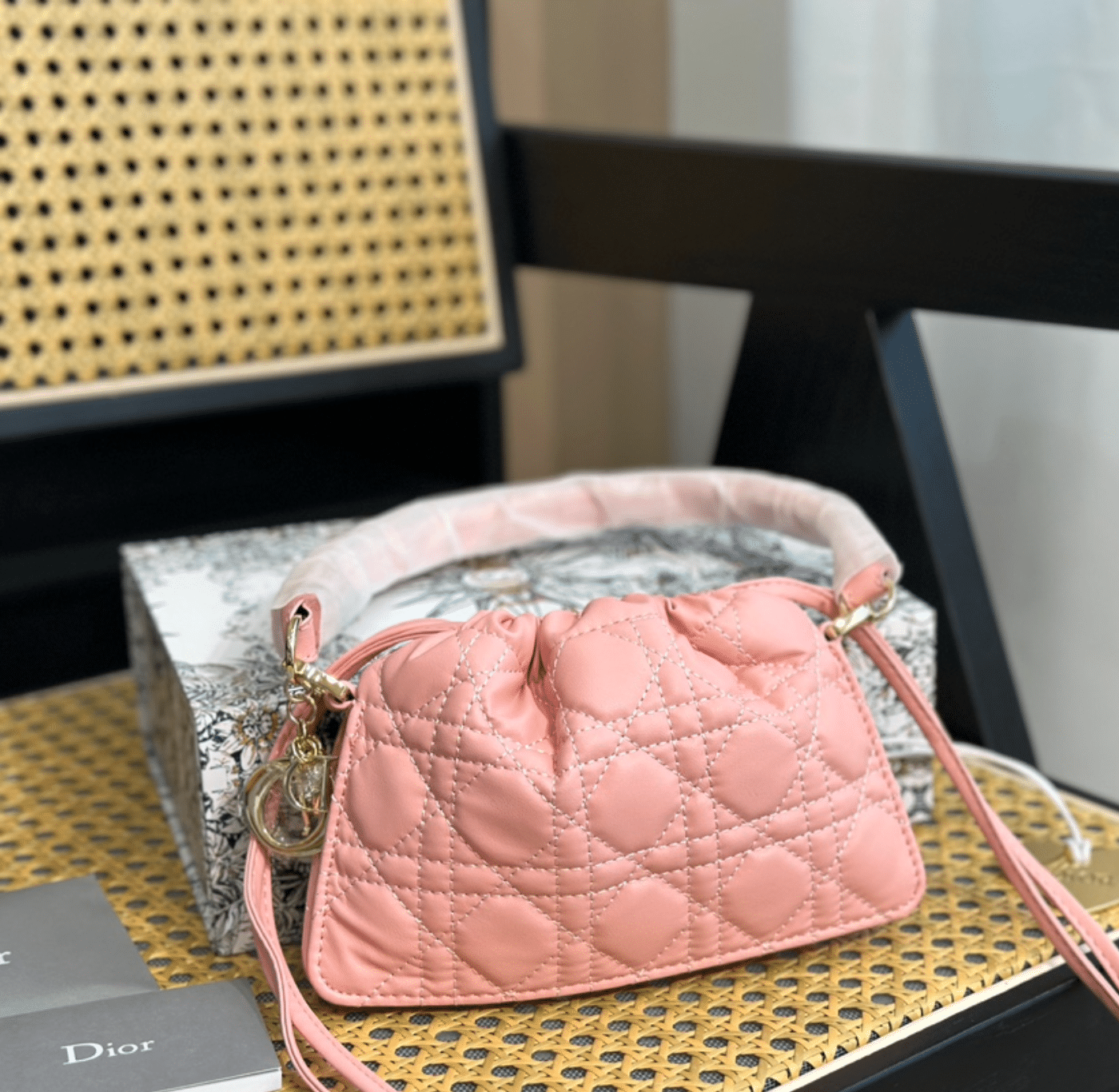 Dior Top Handle/19cm Drawstring Mini Bag Scarlet Pink Cannage S0981ONMJ M900