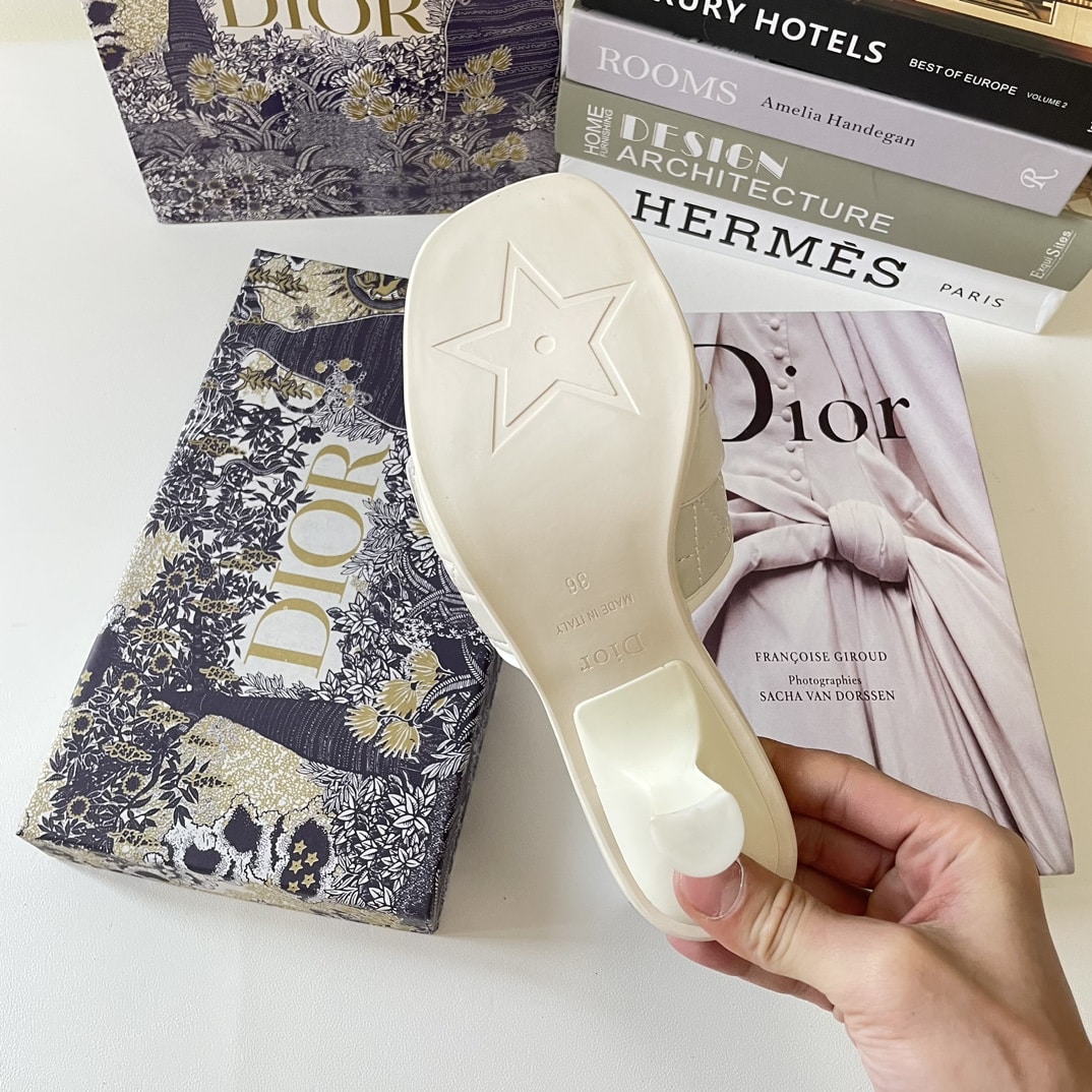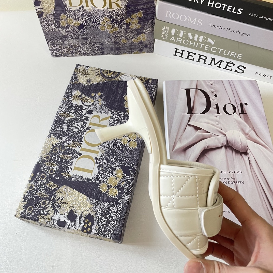 DIOR WOMEN DIO(R)EVOLUTION HEELED SLIDE QUILTED CANNAGE CALFSKIN WHITE KDQ730CQC S12U