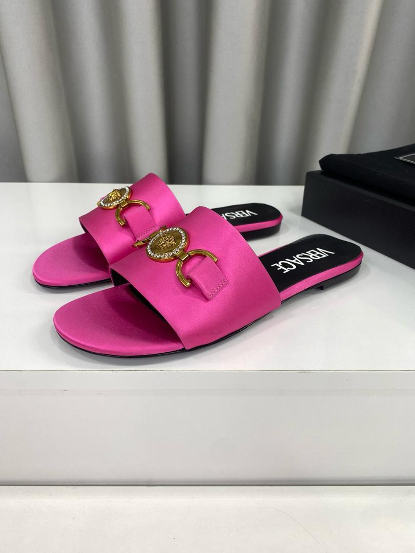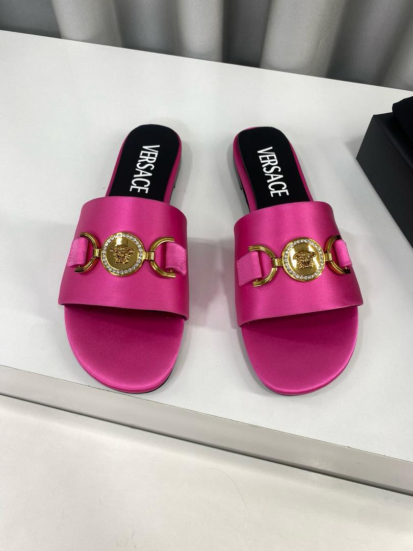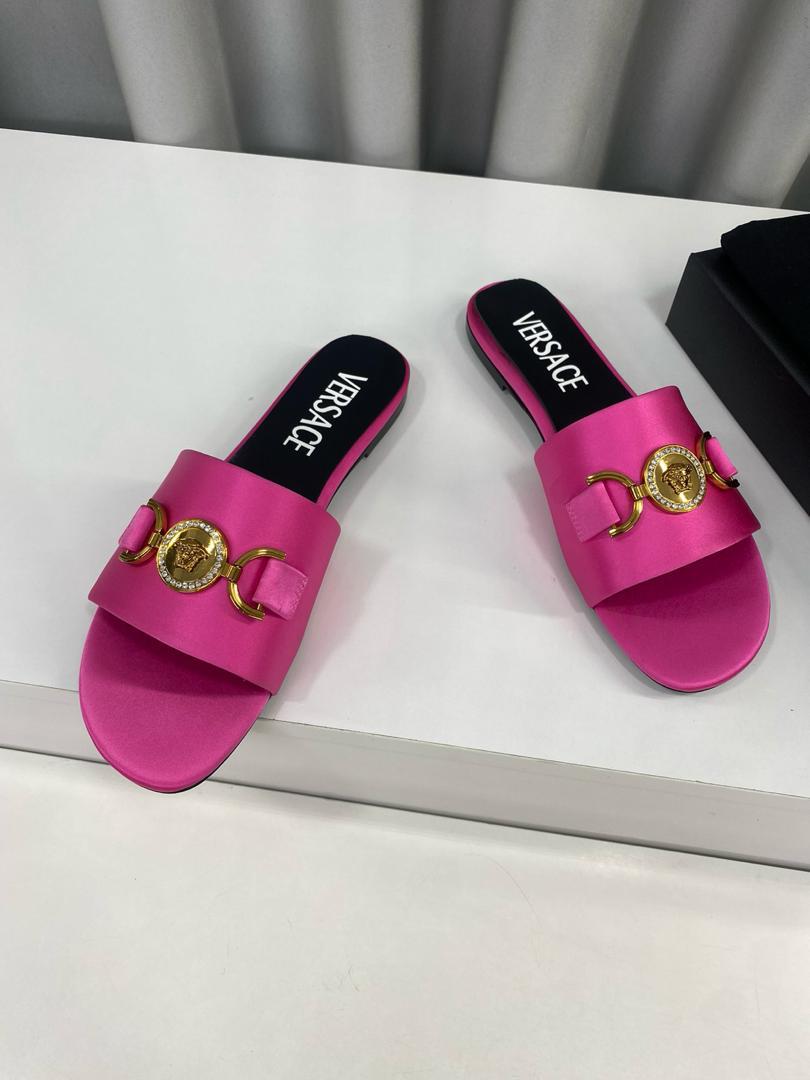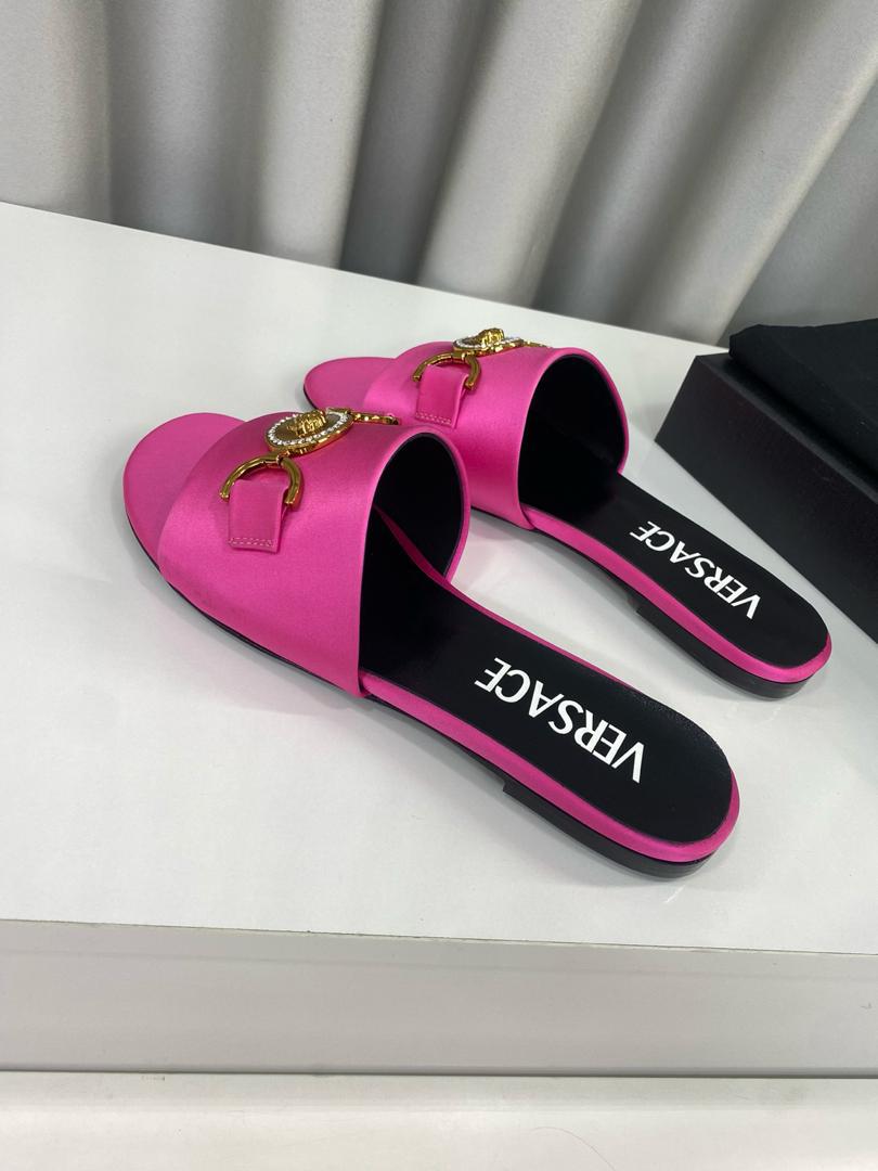 Be the first to review “VERSACE MULE FUCHSIA FLAT SANDALS PINK”